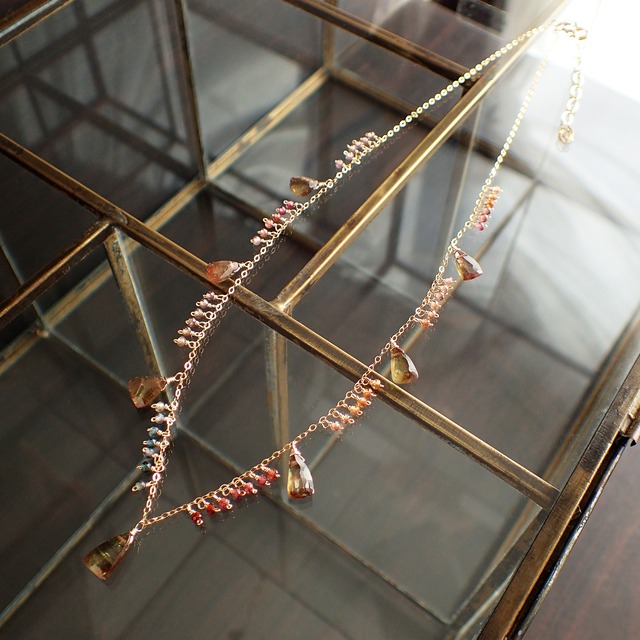 # アンダリュサイト & ツンドラサファイア シャンデリアネックレス このアンダリュサイト & ツンドラサファイアのシャンデリアネックレスは、アンダリュサイトとツンドラサファイアの美しい融合が魅力的なアクセサリーです。 ツンドラサファイアの多彩な色合いと、アンダリュサイトの深みのある輝きと角度によって見える色が違う独特な美しさが見事に調和し、胸元で華やかに揺れ動きます。 アンダリュサイトは、深い緑や柔らかいブラウン、そしてあたたかみのあるピンクブラウンが絶妙に組み合わさり、何とも言えない美しい色合いを楽しむことができます。 特別なシーンから日常のスタイルまで、幅広いコーディネートにぴったりなデザインです! ■ サイズ サイズ調整可能:40~45.5㎝ ■ 素材 アンダリュサイト・ツンドラサファイア・K14GF(パーツ・ワイヤー・チェーンすべて) ■ 全て手作りの1点ものです。写真に写っているそのものを販売しております。 素材の購入時期やカラット数により、同じデザインでも金額が異なる場合がございます。 ご不明な点がございましたらお気軽にお問い合わせください。できる限り早い対応をさせていただきますので、よろしくお願いします。 ■ お手入れ/取り扱い注意事項 お手入れは柔らかい布で優しく拭いてください。水や汗が付着した場合は、すぐに拭き取ることをお勧めします。また、高温多湿の場所を避けて保管してください。 ■ 発送・注文に関する情報や注意事項 ご注文後、通常3~5営業日以内に発送いたします。正式な受注後のキャンセルや返品はお受けできませんので、ご了承ください。 ■ その他の情報や注意事項 購入前に十分にご検討ください。サイズやデザインの確認をお願いいたします。商品の特性上、合わない場合の返品は承れませんので、ご注意ください。 ショップのお問い合わせからお気軽にご質問ください。あなたのお越しを心よりお待ちしております。