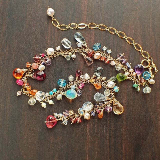 # 青空と虹のネックレス(アクアマリン&ジェムストーン) この青空と虹のネックレスは、アクアマリンやペリドット、5色のサファイア、タンザナイト、インペリアルトパーズなど、色とりどりのジェムストーンが調和した、大人の遊び心のある華やかなデザインが特長です。 約43~47.5㎝まで調整でき、首元で美しく輝く虹色が見る人の心を魅了します。 アクアマリンの爽やかな水色は穏やかな空を思わせ、イエローサファイアやオレンジサファイア、ピンクサファイア、オパールなどの鮮やかな色合いは、虹を連想させます。 そしてパールの優雅な光沢が、このネックレスにさらなる高級感を与えており、どんなシーンにもぴったり着けていただけます。 ピンクスピネルやスペサタイトガーネットの柔らかい暖色も加わることで、愛らしさと温かみを演出し、身に着けることで心に明るさをもたらしてくれるような魅力を持っています。 雨上がりに空にかかる虹を見つけた時のような幸せな気持ちになれるネックレスです。 繊細な装飾と、美しい素材の組み合わせのネックレスは、デイリーなコーディネートから特別なシーンまで幅広くお使いいただけるアイテムです。 なお、こちらのアクアマリンにはインクルージョンが含まれております。 温かみのある質感を楽しんで頂けましたら嬉しいです。 自分へのご褒美として特別な楽しさを感じていただけることでしょう! ■ サイズ 全長:約43~47.5㎝ ■ 素材 アクアマリン(横幅1.3㎝)・淡水パール・グリーンサファイア・ペリドット・オパール・スペサタイトガーネット・オレンジサファイア・ピンクスピネル・パープルスピネル・アメジスト・タンザナイト・ブルージェード・ブルーサファイア・ブルートルマリン・アマゾナイト・トルコ石・ロンドンブルートパーズ・ピンクサファイア・ヘソナイト・インペリアルトパーズ・レモンクウォーツ・イエローサファイア・クロムダイプサイト・グリーントルマリン・ブルームーンストーン・K14GF (ワイヤー・チェーン・パーツ全て) ■ 全て手作りの1点ものです。写真に写っているそのものを販売しております。 素材は買い付けの時期やカラット数により価格が変わりますので、同じデザインでも金額が異なる場合がございます。 ご不明な点がございましたらお気軽にお問い合わせください。できる限り早い対応をさせていただきますので、よろしくお願いします。 ■ お手入れ/取り扱い注意事項 お手入れは柔らかい布で優しく拭いてください。水や汗が付着した場合は、すぐに拭き取ることをおすすめします。また、高温多湿の場所を避けて保管してください。 ■ 発送・注文に関する情報や注意事項 ご注文後、通常3~5営業日以内に発送いたします。正式な受注後のキャンセルや返品はお受けできませんので、ご了承ください。 ■ その他の情報や注意事項 購入前に十分にご検討ください。サイズやデザインの確認をお願いいたします。万が一サイズが合わない場合の返品は承れませんので、ご注意ください。 ショップのお問い合わせからお気軽にご質問ください。あなたのお越しを心よりお待ちしております。