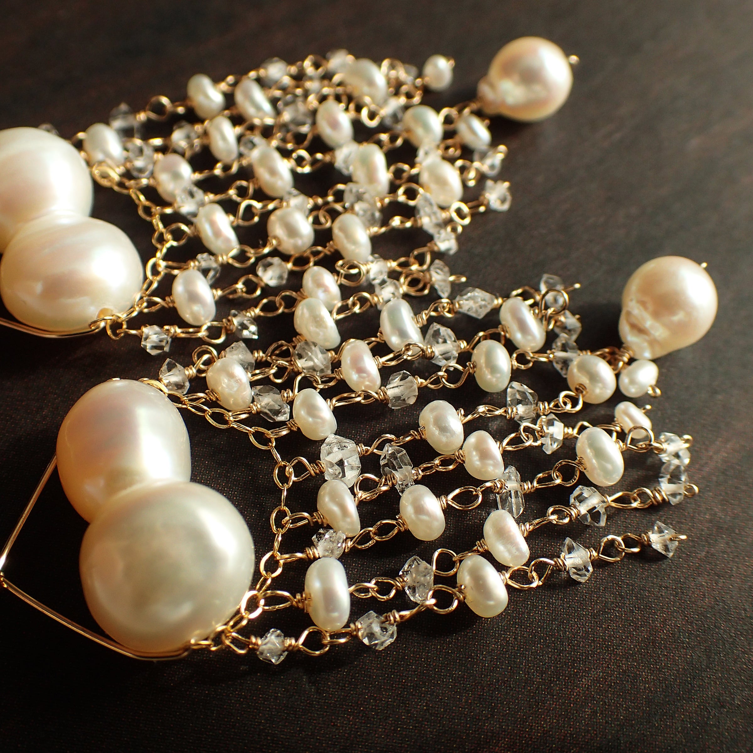 Cloud & Snow chandelier earrings( Twins Pearl & Herkimer diamond)
