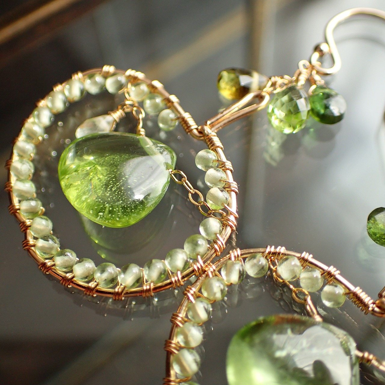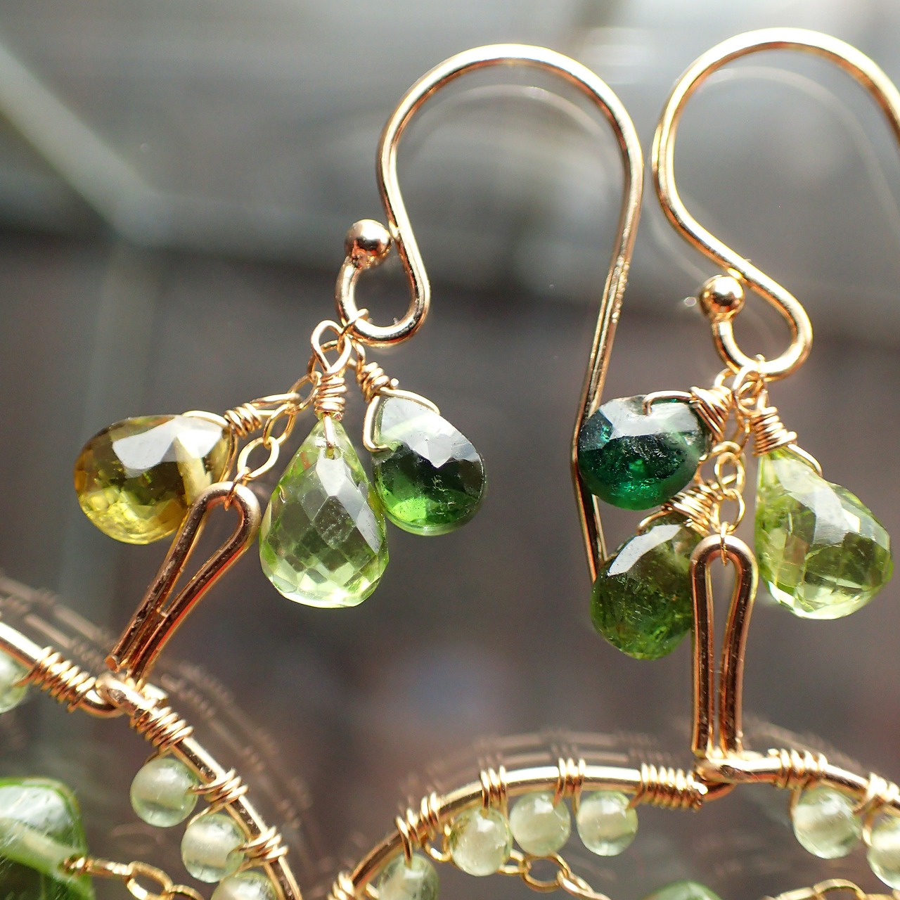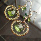 このブラムリーアップルピアスは、鮮やかな色合いのペリドット、グリーントルマリン、イエローサファイアを使用した、果実のような愛らしいデザインが特長です。