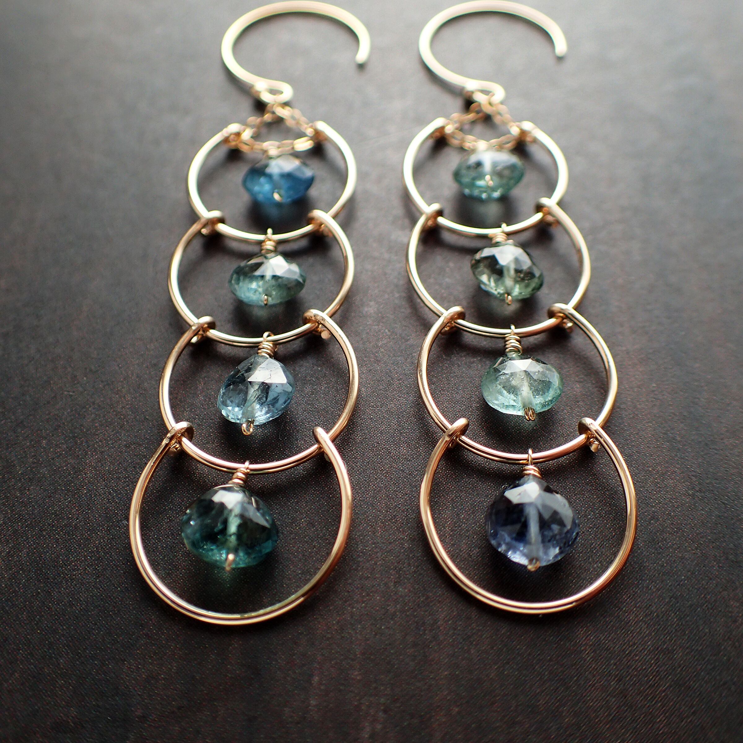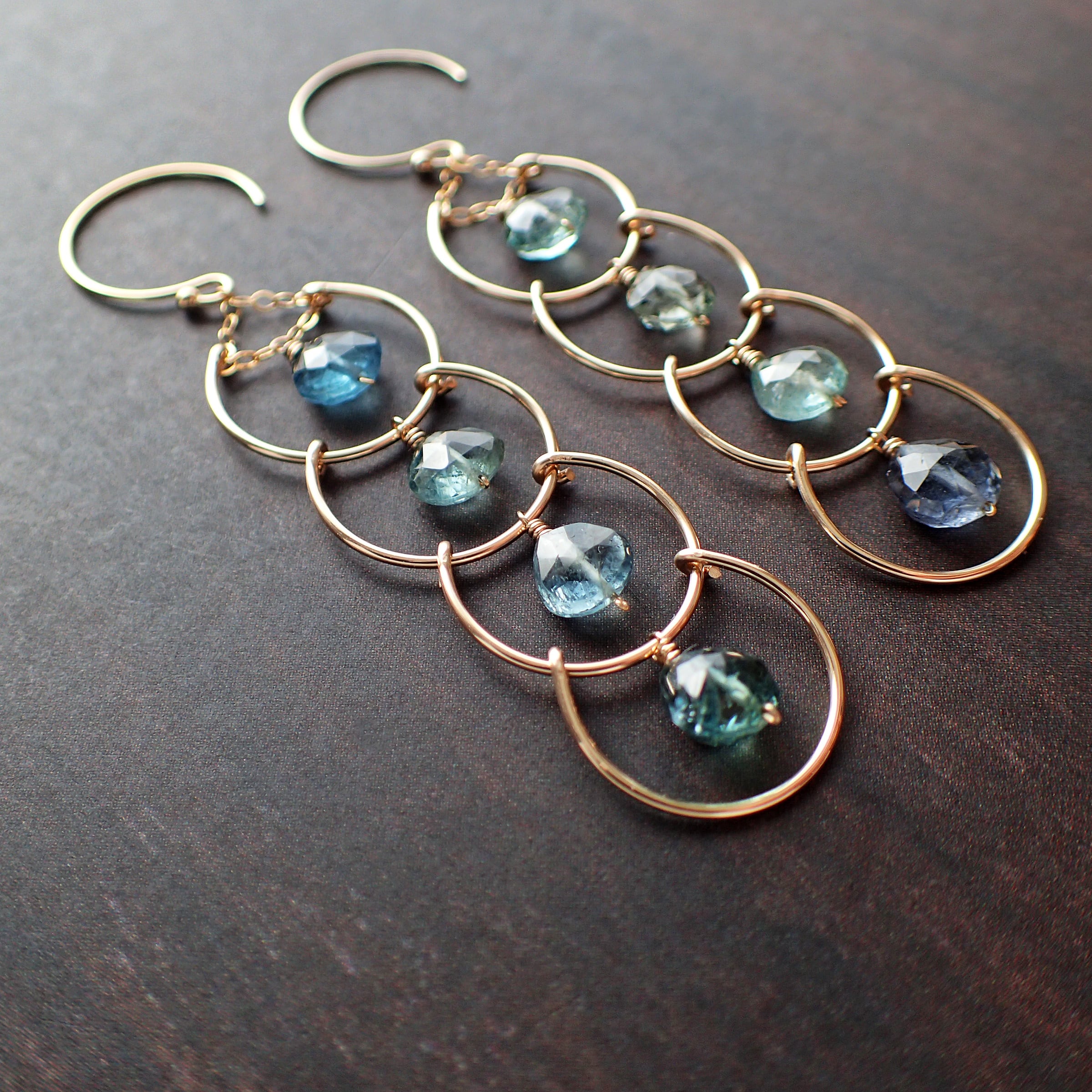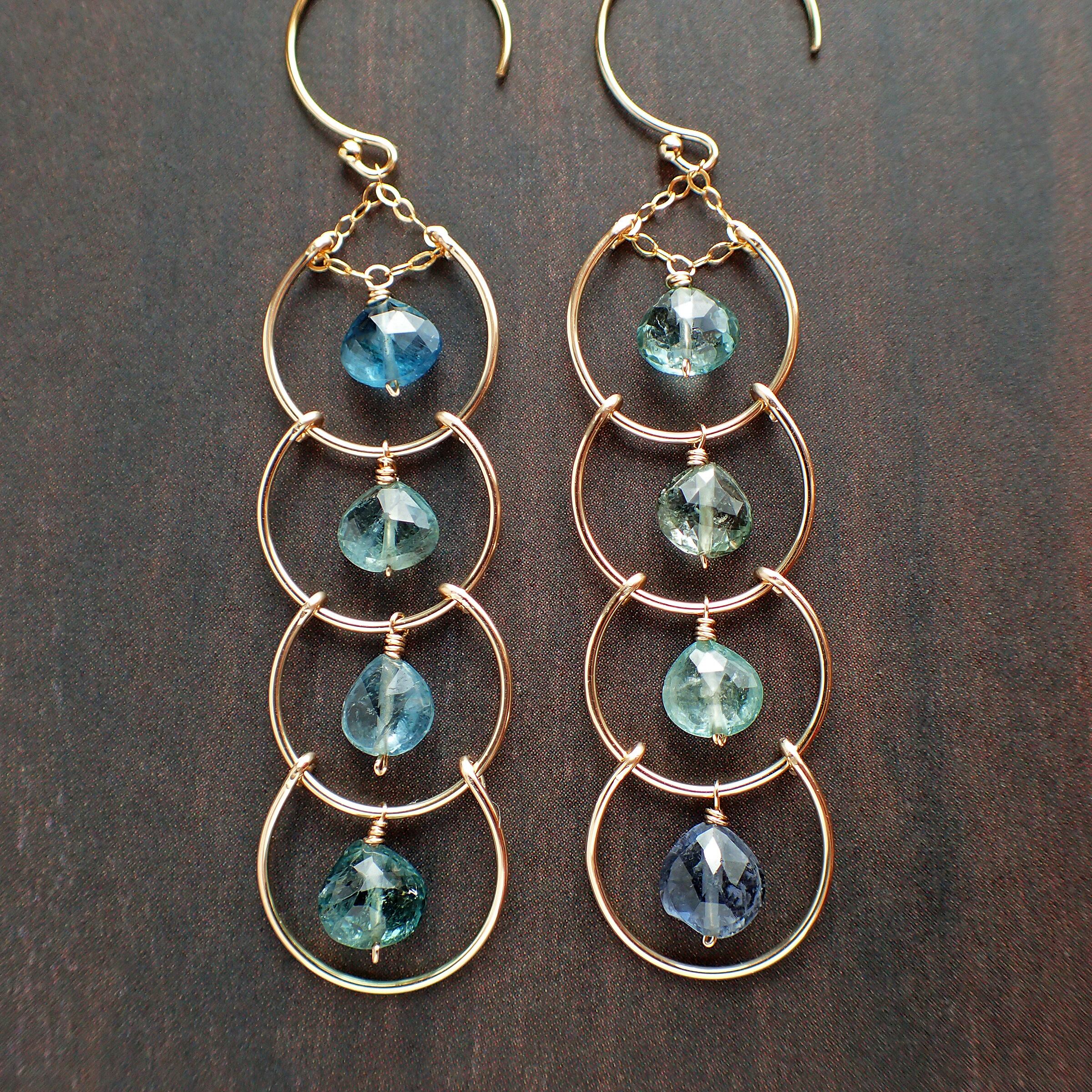 このピアスは、様々なトーンのグリーントルマリンを使用し、まるで涼やかな森林の中を散歩するかのような美しいデザインが特長です。