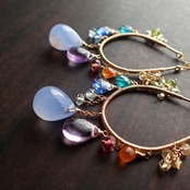このピアスは、上品なブルーレースを中心に、美しいアメジスト、カヤナイト、ピンクトルマリンなどを使用し、まるで初夏の空に広がる虹のような華やかさが特長です。