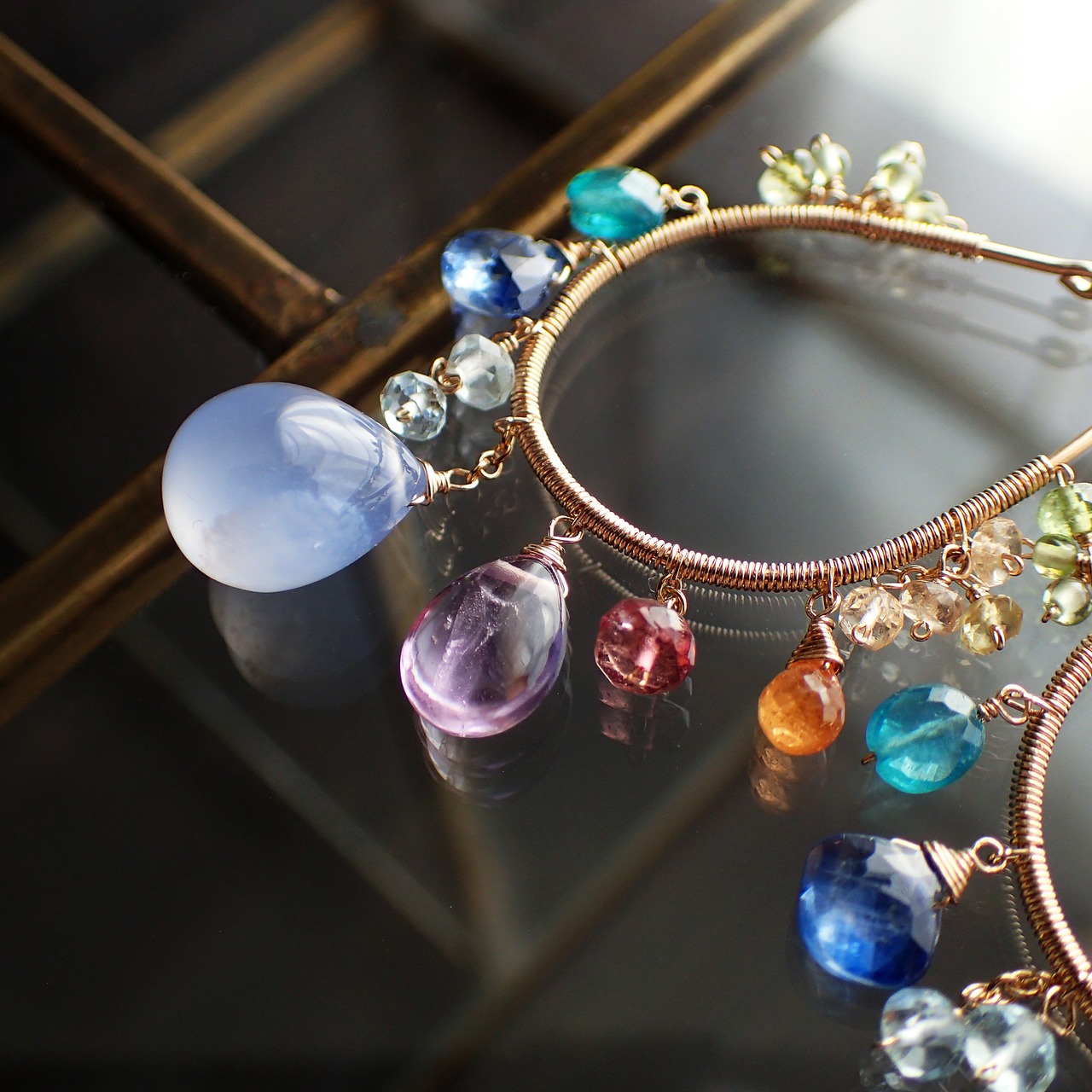 ブルーレース、アメジスト、カヤナイト、ピンクトルマリン、アパタイト、グリーントルマリン、ペリドット、インペリアルトパーズ、イエロートルマリン、スペサタイトガーネット、アクアマリン、K14GF