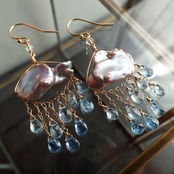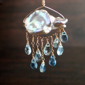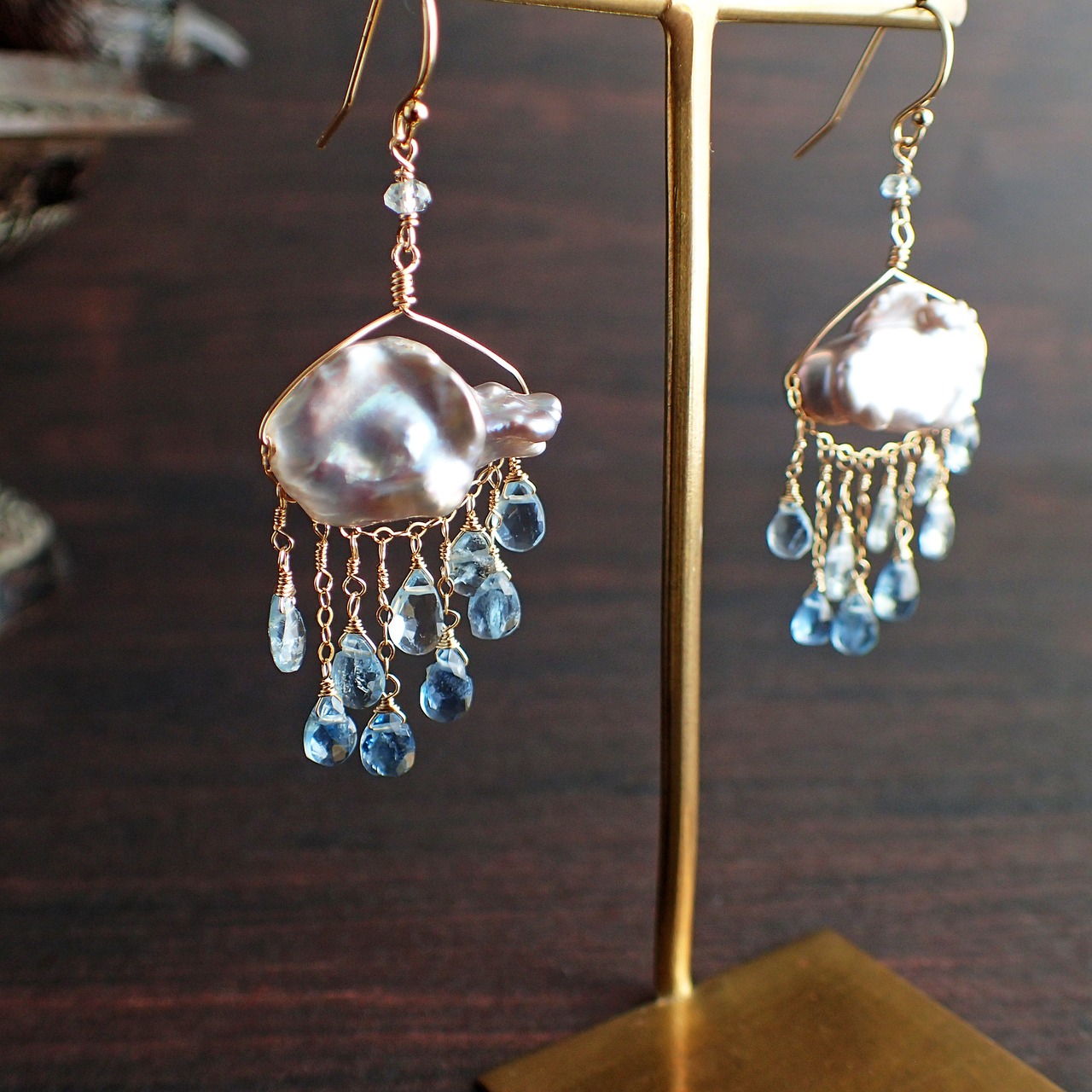 このピアスは、約5.5㎝の エレガントなデザインに淡水パールとアクアマリンを使用し、まるで春の雷鳴のような力強さと美しさが特長です。