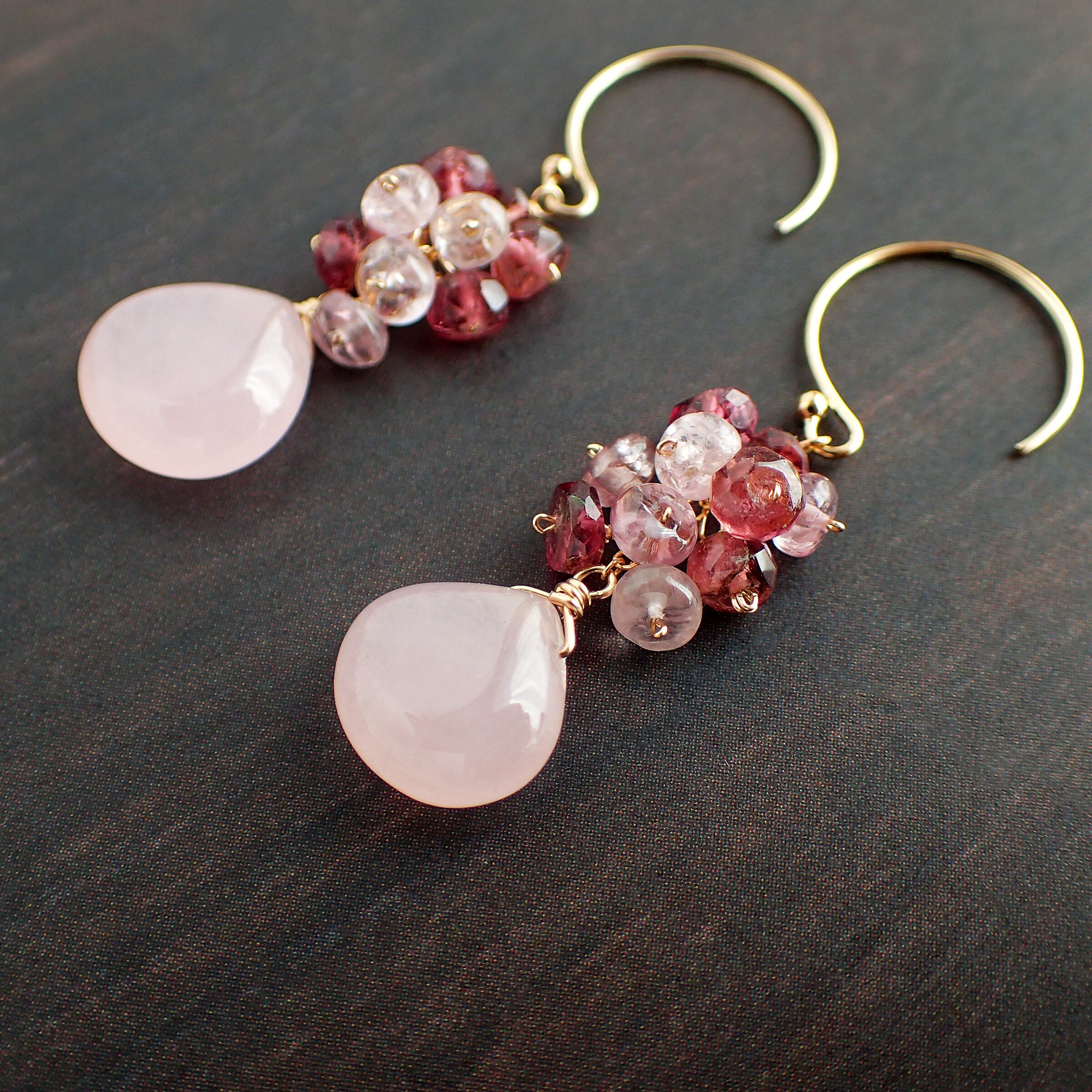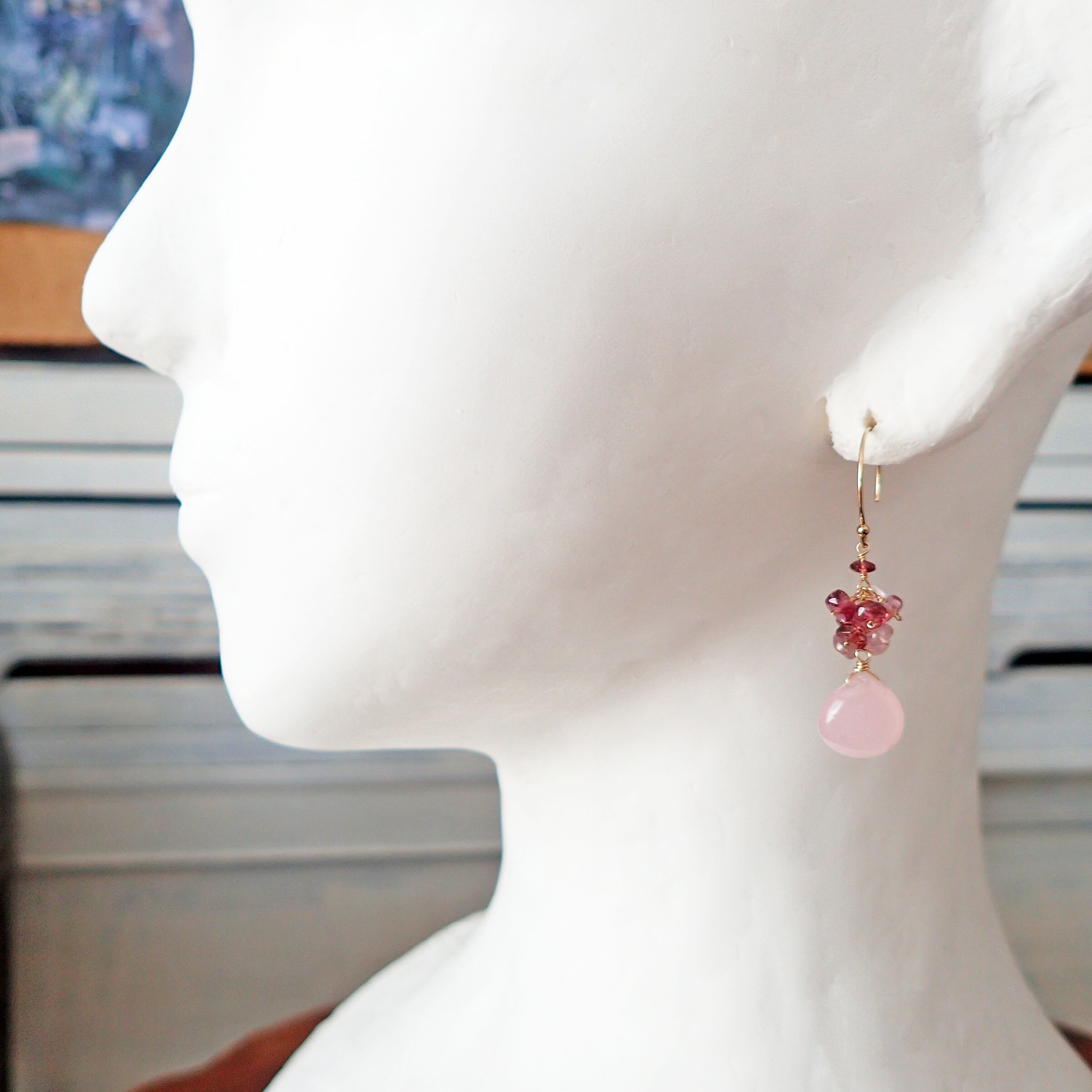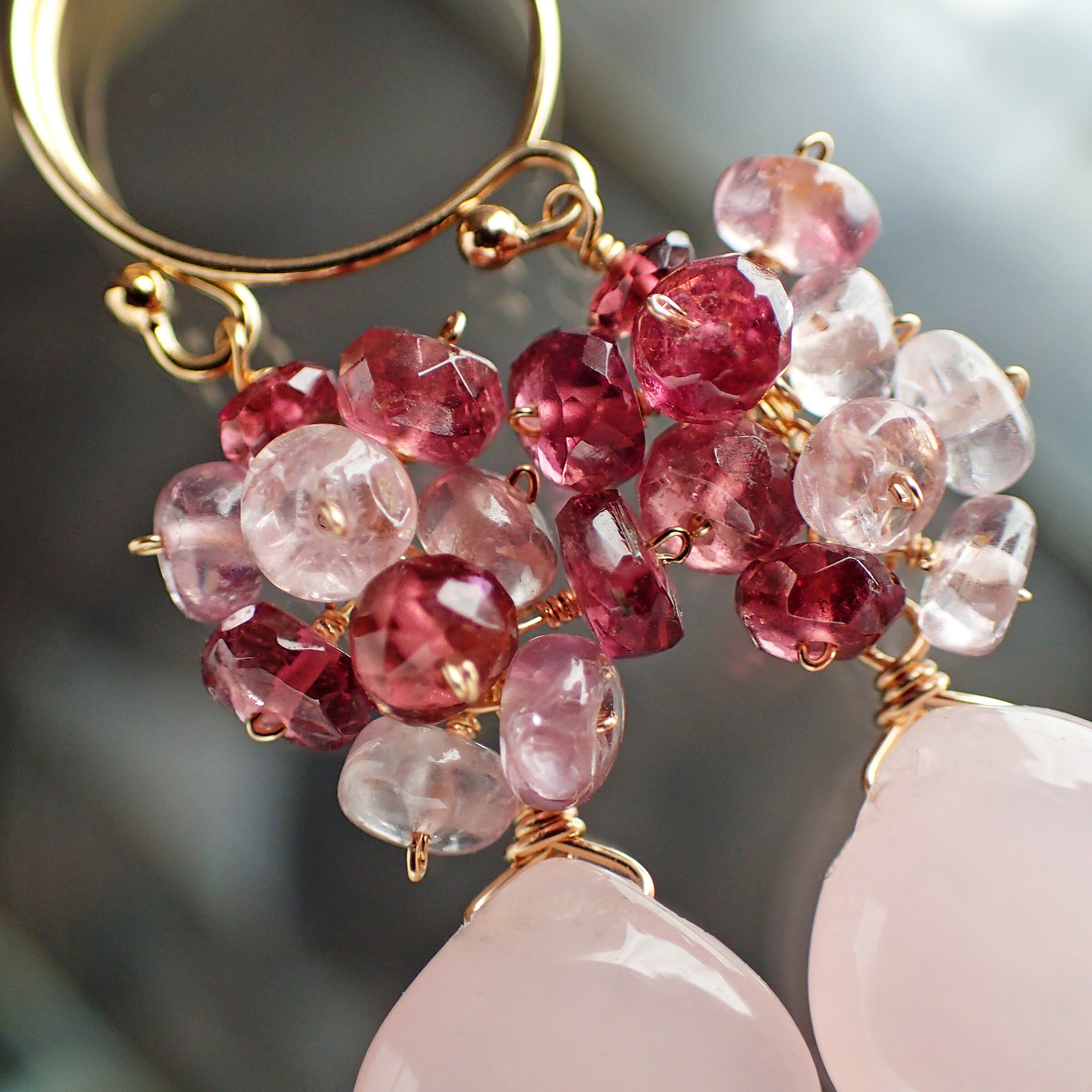 このピアスは、可愛らしいピンクジェード、柔らかなピンクトルマリン、鮮やかなピンクスピネルを使用し、まるで春の花束のような愛らしさが特長です。約4㎝のコンパクトなデザインは、耳元で軽やかに揺れ、あなたの魅力を引き立てます。