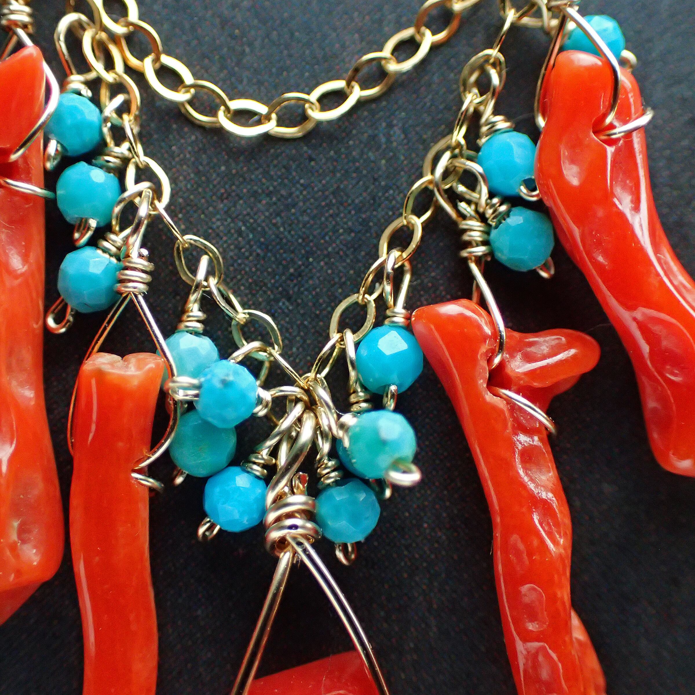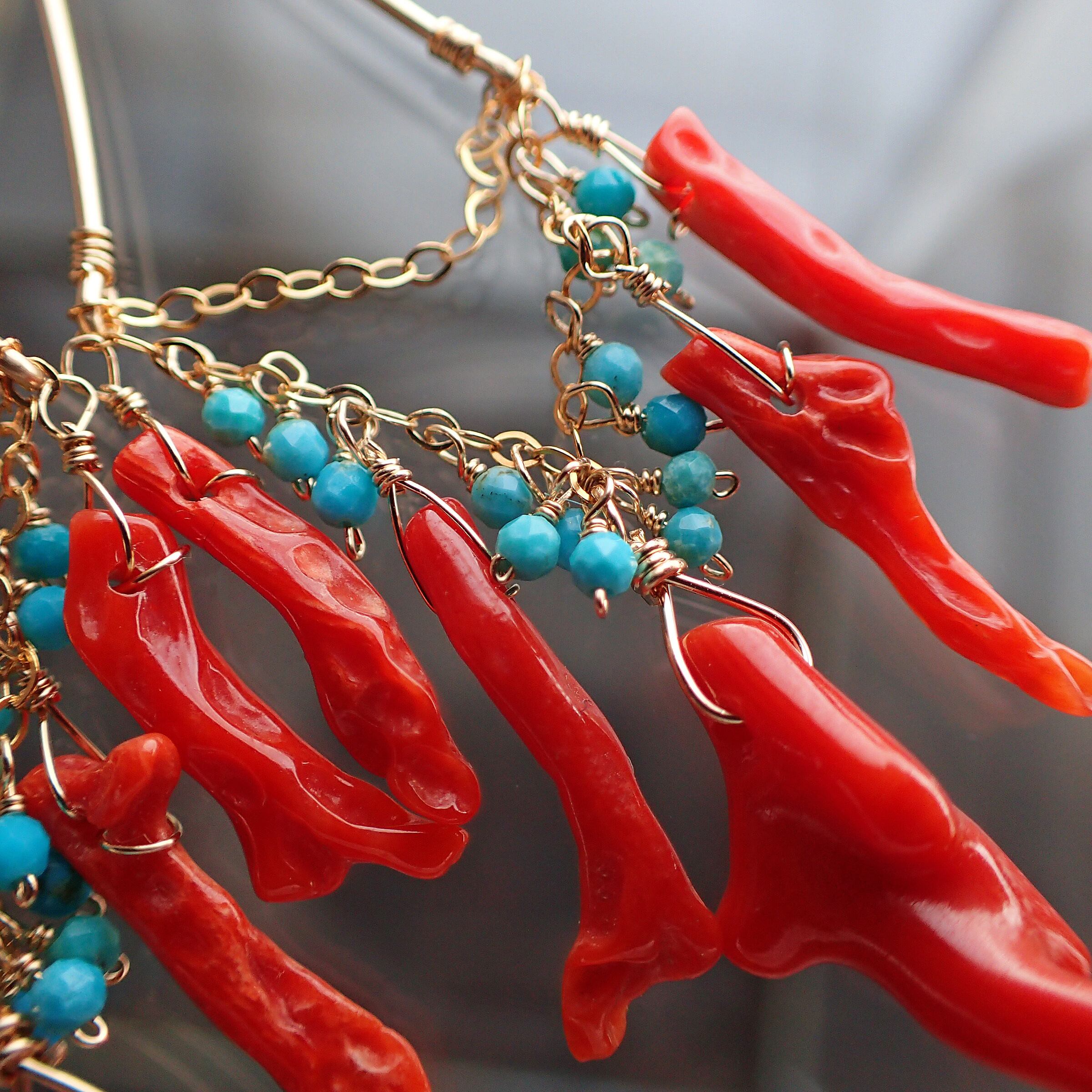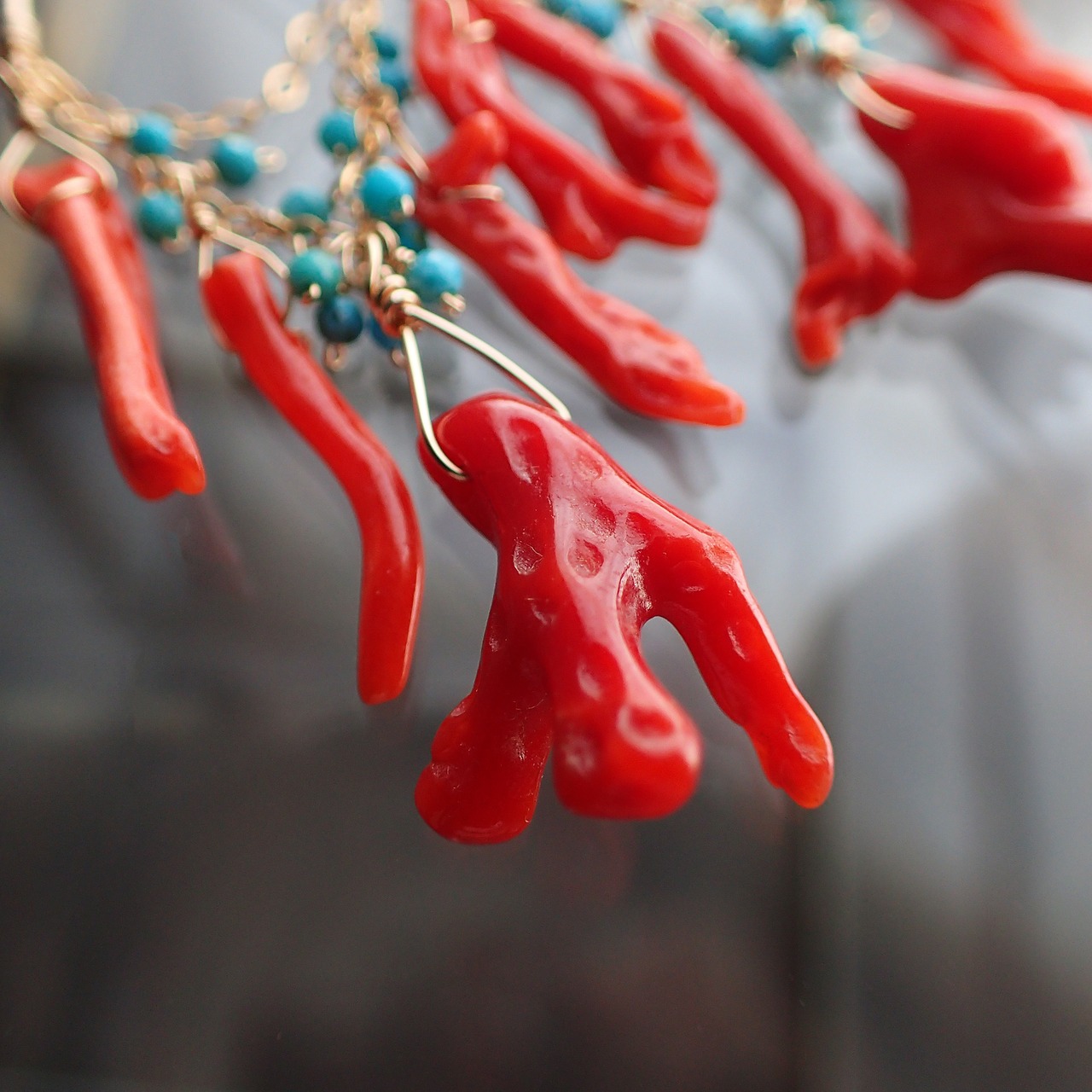 血色枝珊瑚、トルコ石 、K14GF(チェーン・ワイヤー・パーツ全て)