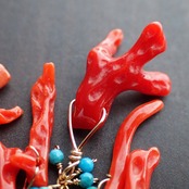 血色枝珊瑚の温かみのある色合いとトルコ石の鮮やかなブルーは、まるで海の波間に揺れる宝石のような美しさを演出する素晴らしいアイテムです。