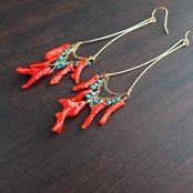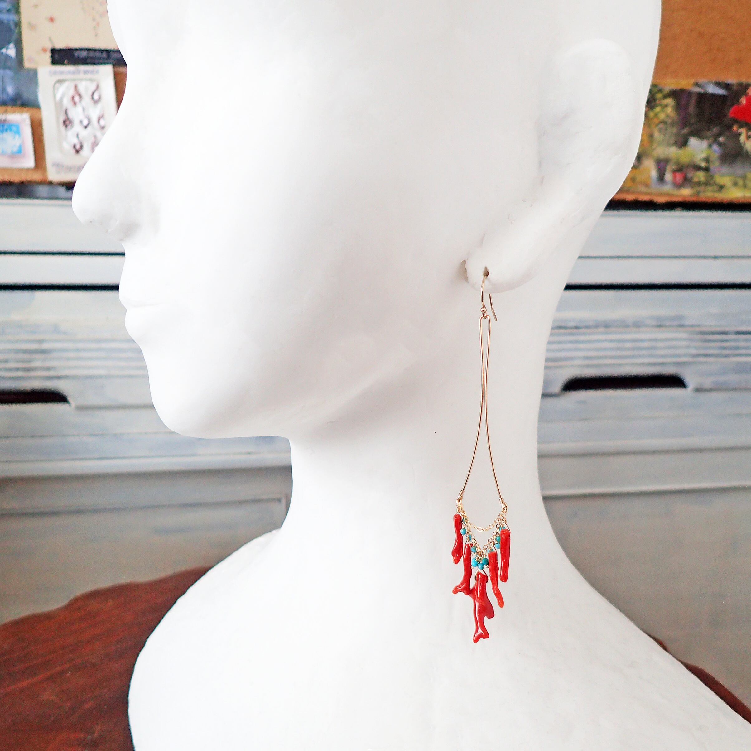 # 血色枝珊瑚&トルコ石の超ロングシャンデリアピアス