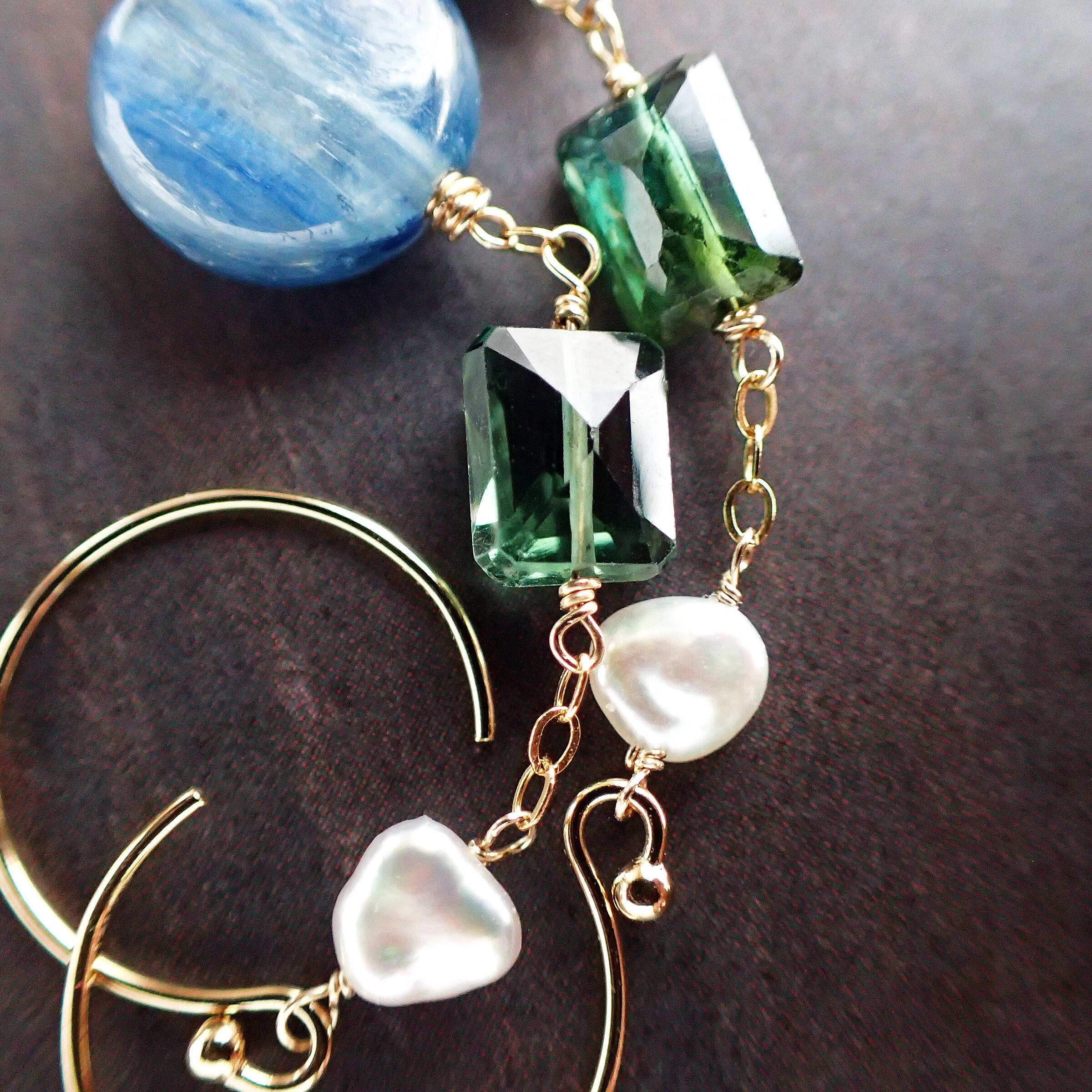グリーントルマリン、カヤナイト、あこやケシパール、K14GF(チェーン・ワイヤー・パーツ全て)