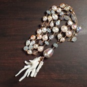 # 白枝珊瑚&あこやバロックパール フリンジロングネックレス(&アクアマリン)