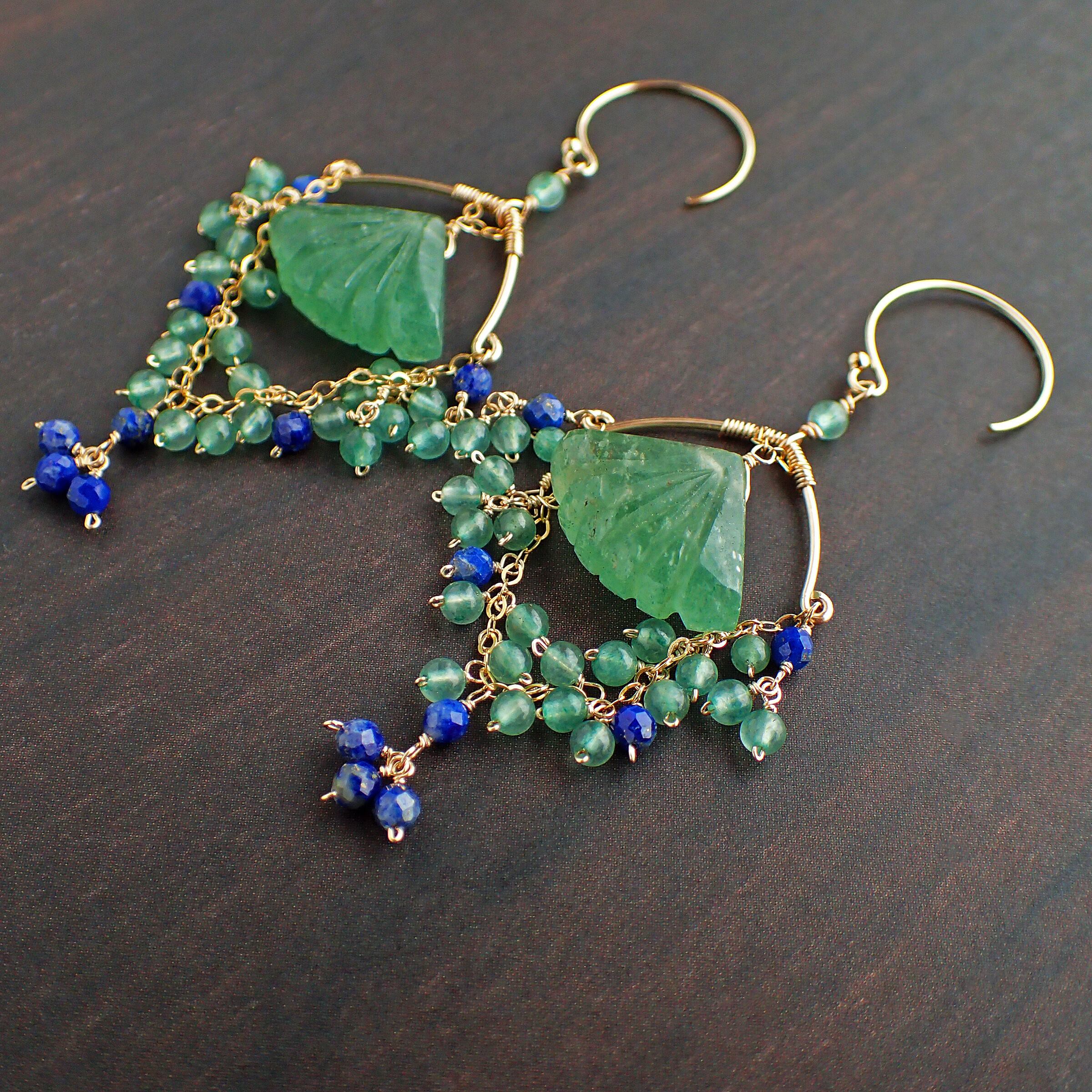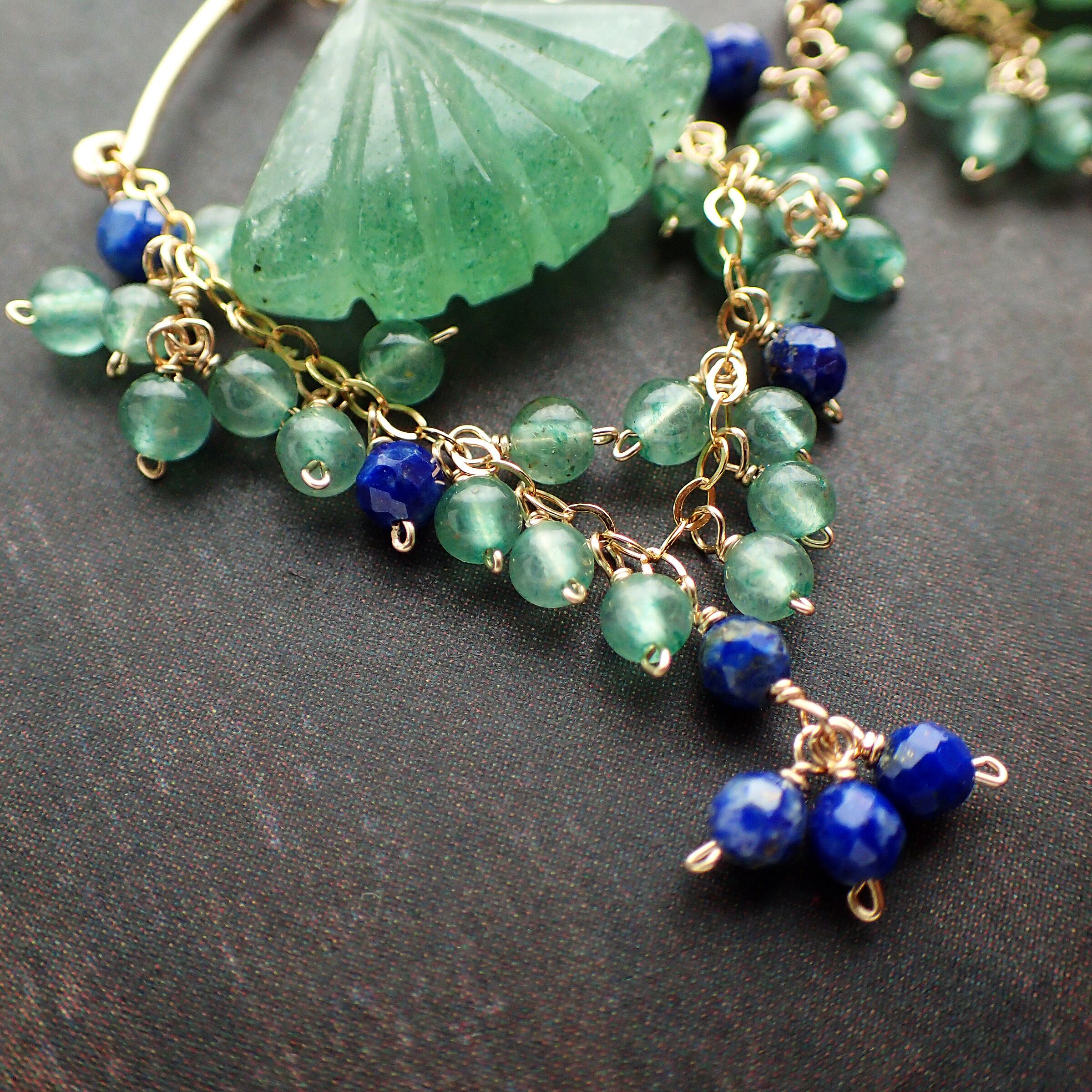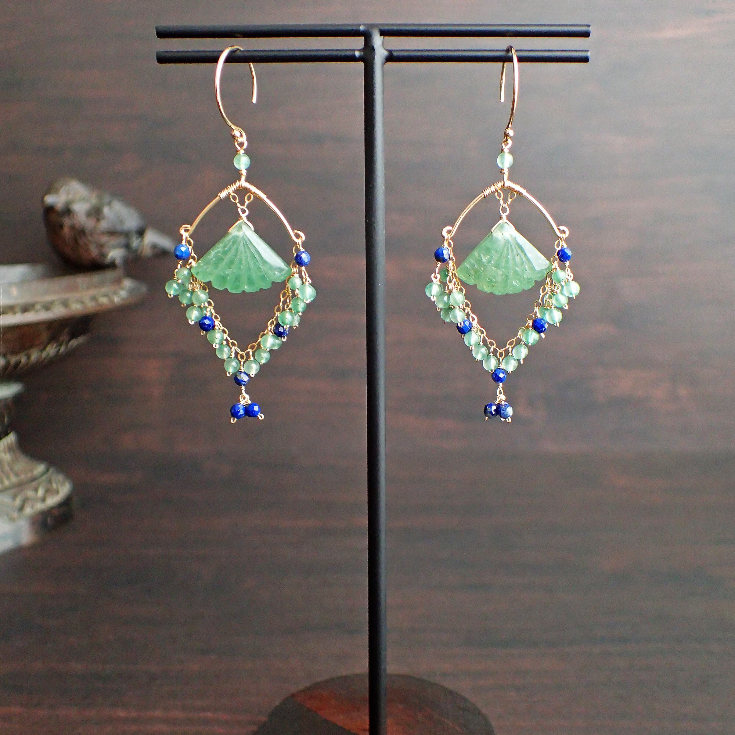 # 異国の地に想いをはせるシャンデリアピアス(グリーンアベチュリン&ラピスラズリ)