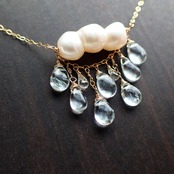 Cloud & Rain drops necklace( Triplets Pearl & Aquamarine +White Sapphire)