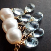 淡水パール(三つ子パール横幅18.5㎝)、アクアマリン、ホワイトサファイア、K14GF(ワイヤー・チェーン・パーツ全て)