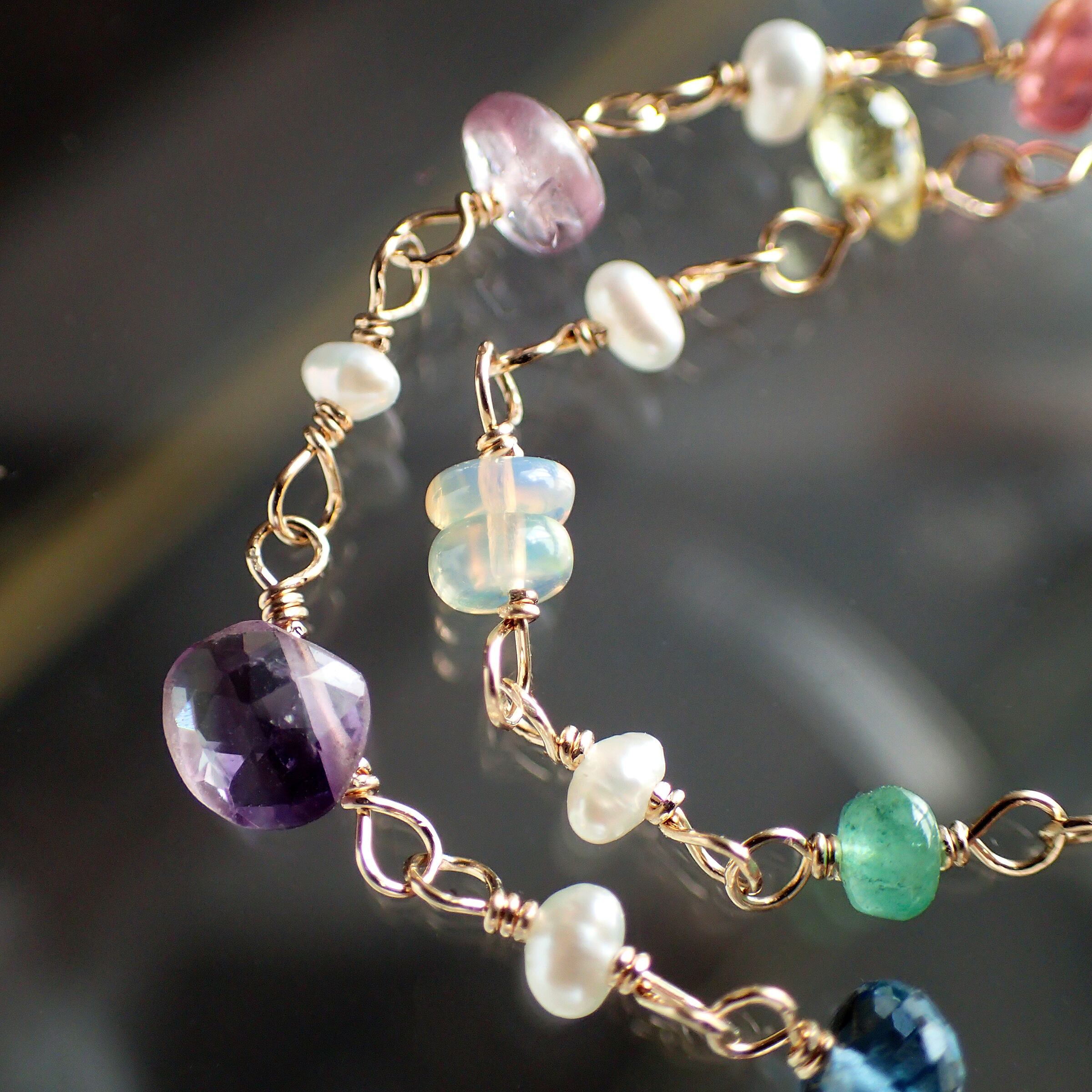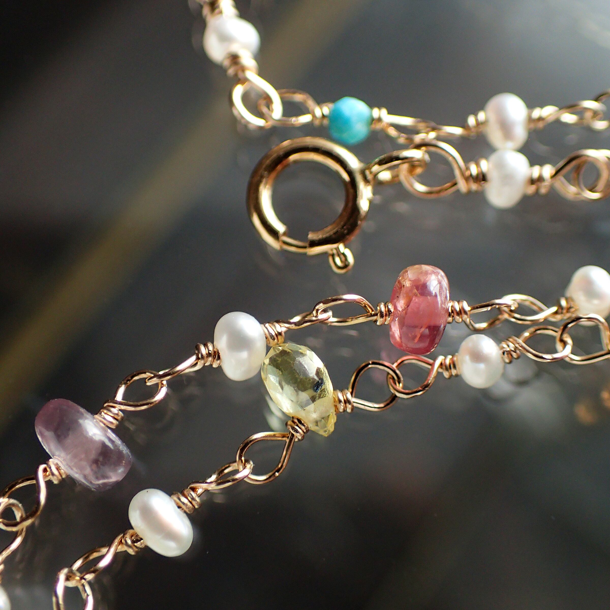 アクアマリン・エメラルド・イエローサファイア・オレンジサファイア・ピンクサファイア・ブルーサファイア・タンザナイト・スイスブルートパーズ・グリーントルマリン・オパール・アパタイト・アマゾナイト・ブルージェード・淡水パール・トルコ石・ロンドンブルートパーズ・アメジスト・スペサタイトガーネット・レッドスピネル・パープルスピネル・ピンクスピネル・ピンクトルマリン・K14GF (ワイヤー・チェーン・パーツ全て)