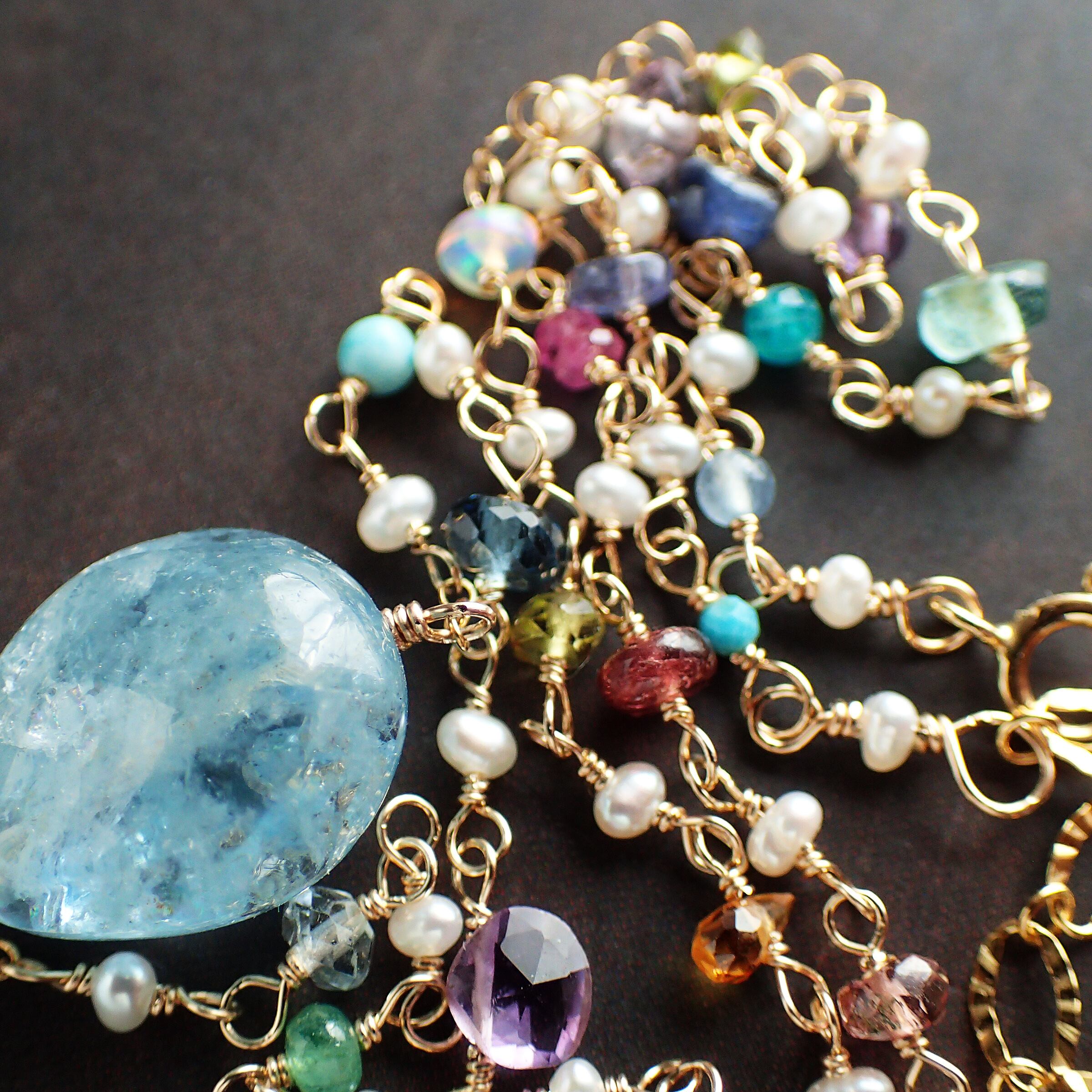 # 青空と虹のネックレス(アクアマリン&ジェムストーン)