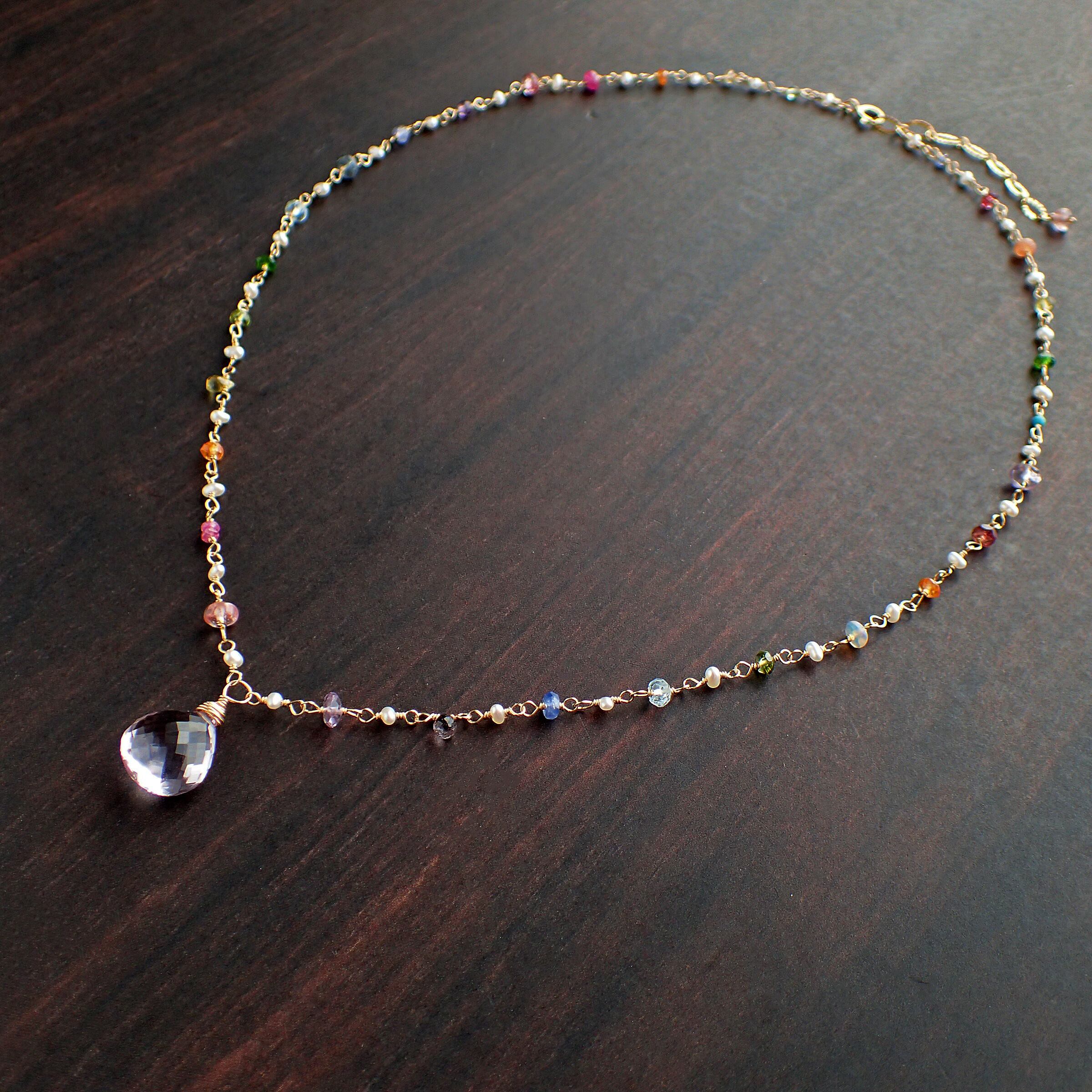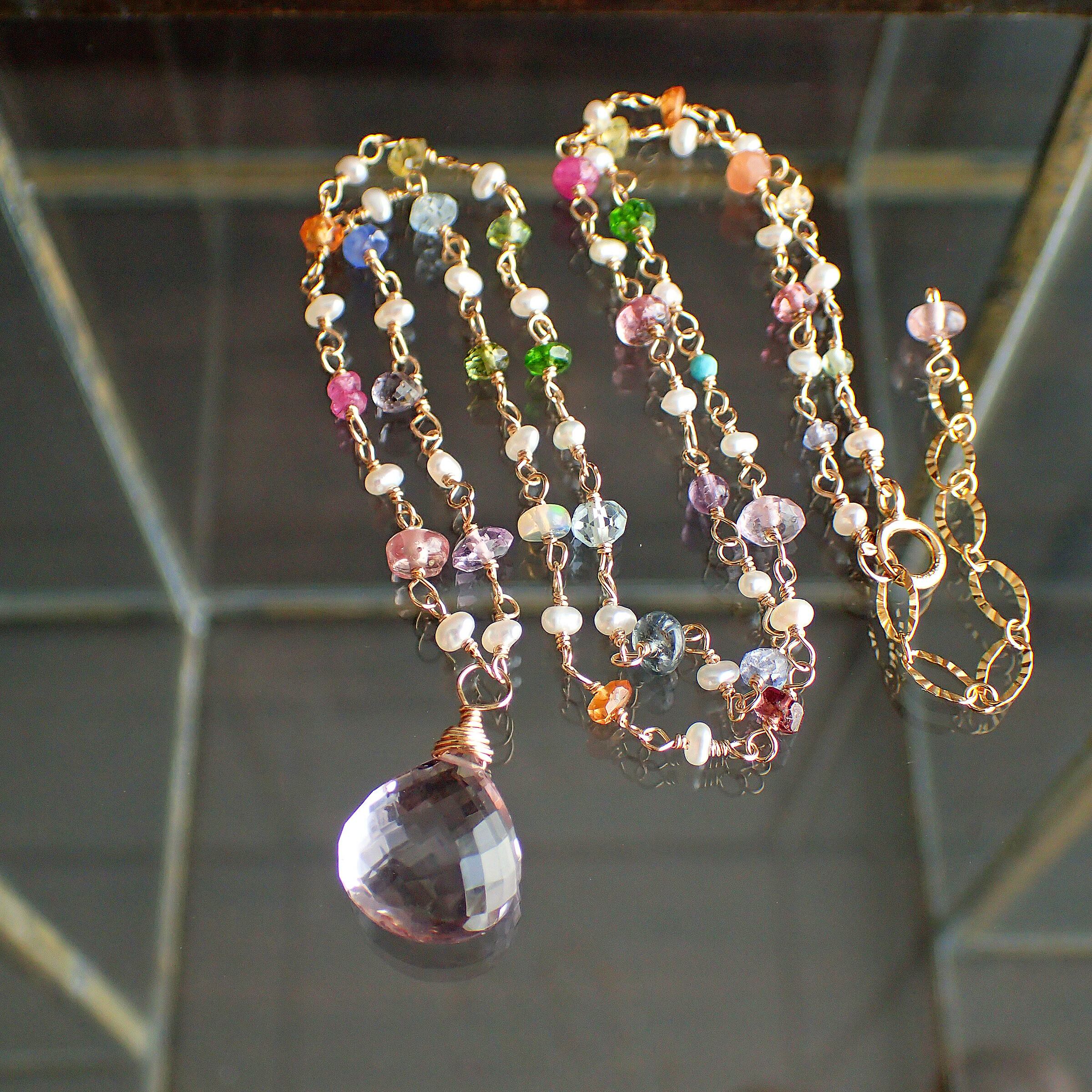 # 魅惑の虹色のネックレス(ピンクアメジスト&ジェムストーン)