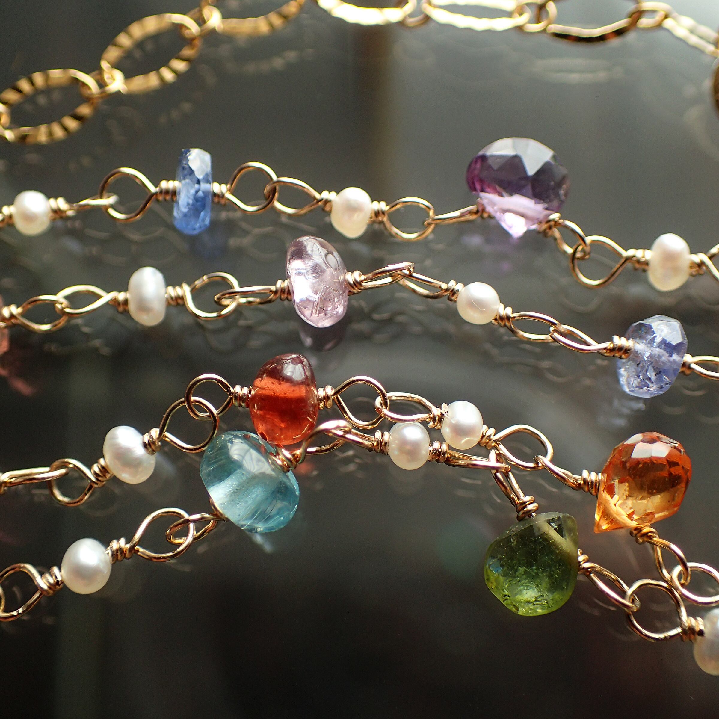 イエロートルマリン・オパール・グリーントルマリン・アパタイト・トルコ石・アクアマリン・ブルーサファイア・アメジスト・パープルスピネル・ピンクサファイア・ルビー・スペサタイトガーネット・レモンクウォーツ・レッドスピネル・ピンクトルマリン・タンザナイト・キャッツアイ・アマゾナイト・淡水パール・K14GF(チェーン、ワイヤー、パーツ全て)
