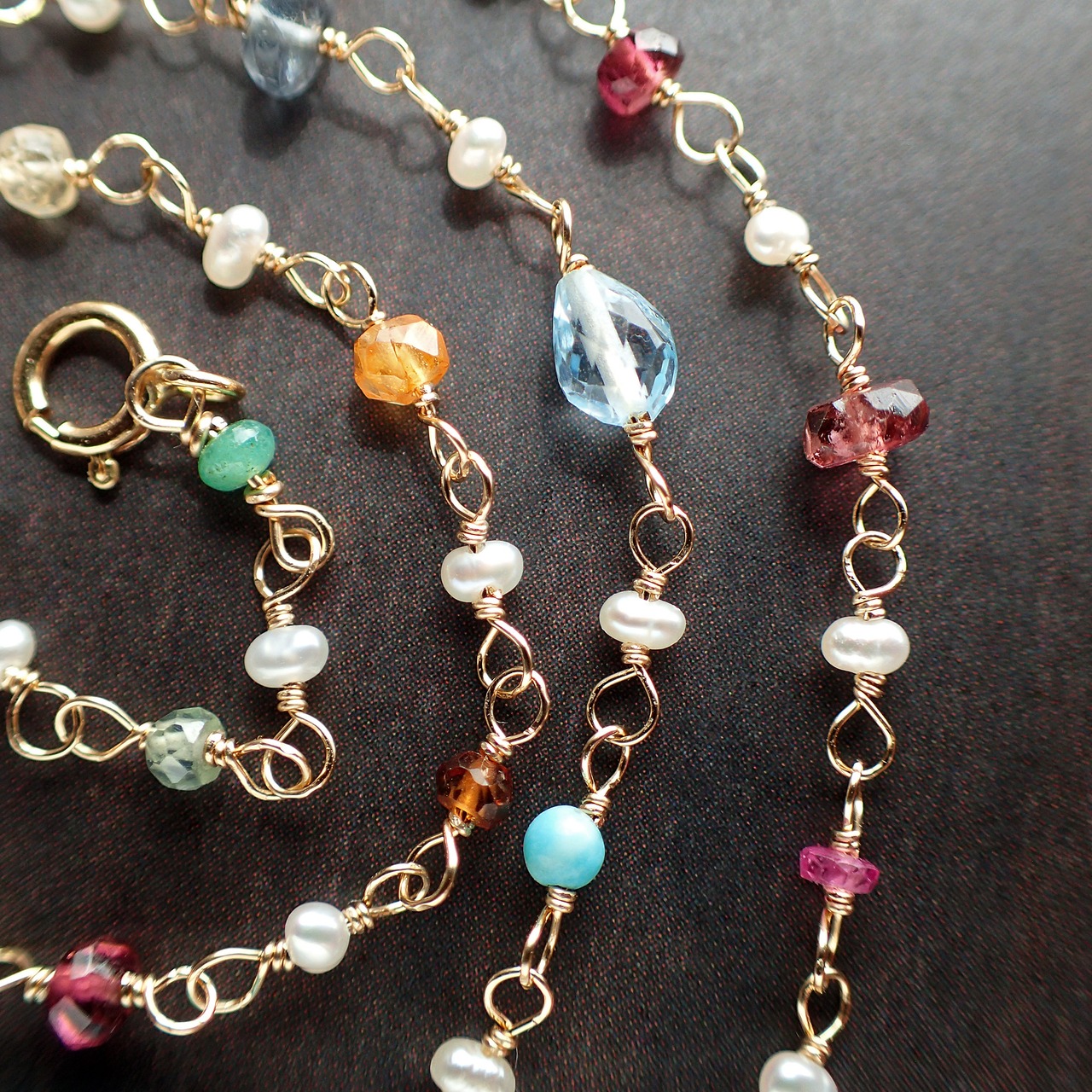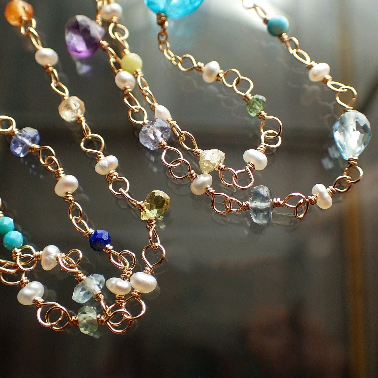 アパタイト・イエローサファイア・ラフダイヤモンド・エメラルド・ルビー・淡水パール・トルコ石・スイスブルートパーズ・インディゴスピネル・タンザナイト・アメジスト・ピンクトルマリン・ヘソナイトガーネット・スペサタイトガーネット・インペリアルトパーズ・グリーンサファイア・アクアマリン・ラピスラズリ・ピンクサファイア・レモンクウォーツ・K14GF(ワイヤー、チェーン、パーツ全て)