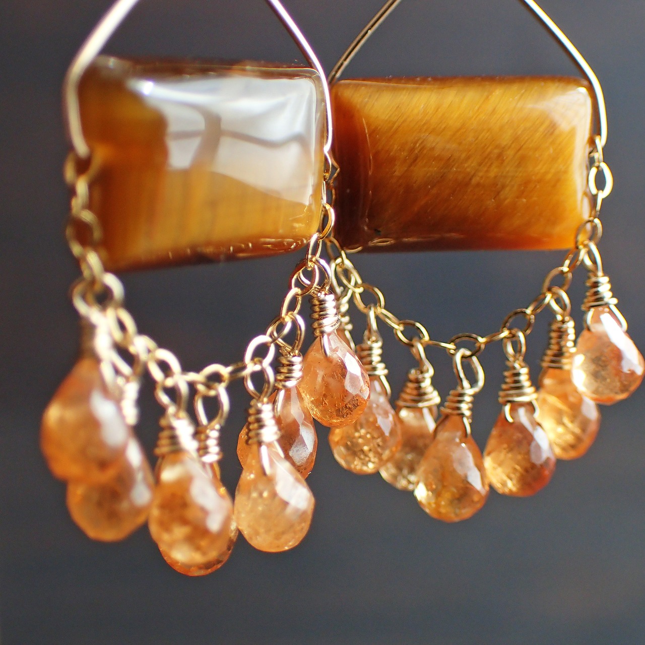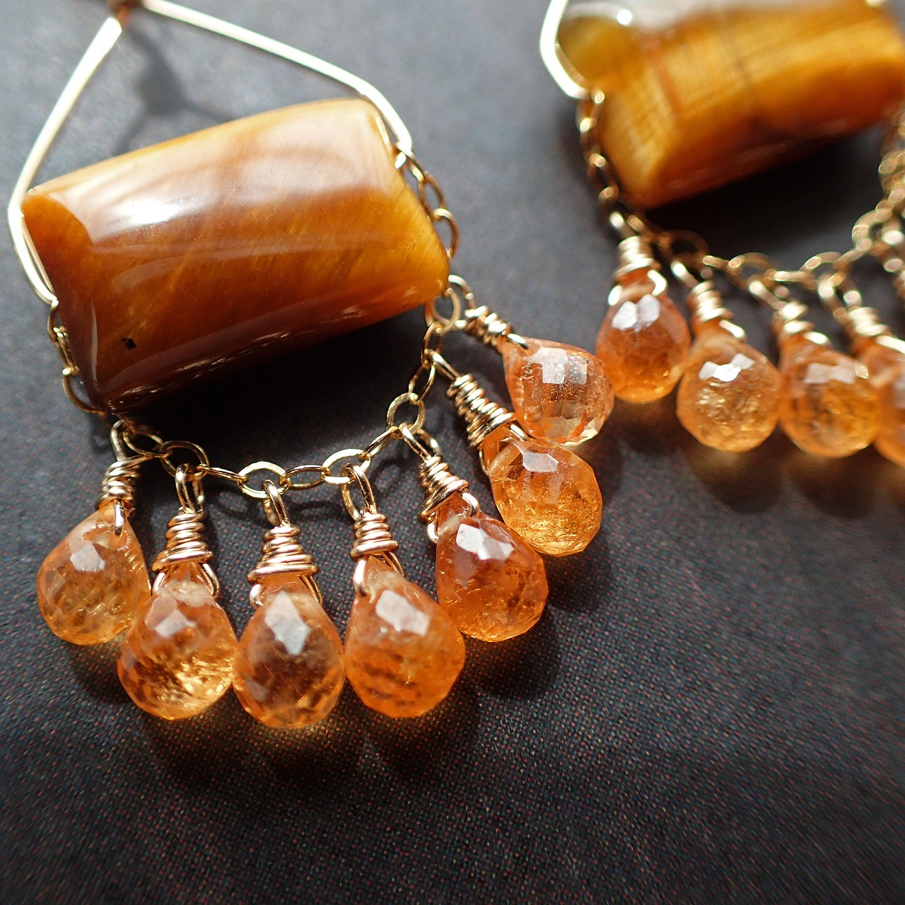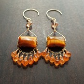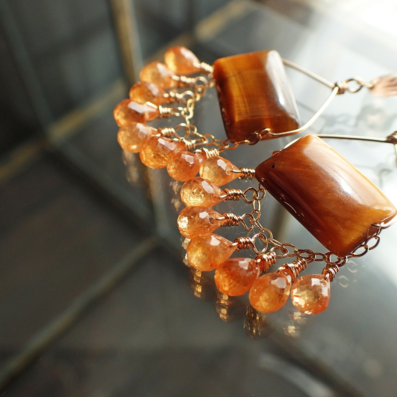 Autumn leaves mini chandelier earrings (Tiger's-eye &Spessartine Garnet )
