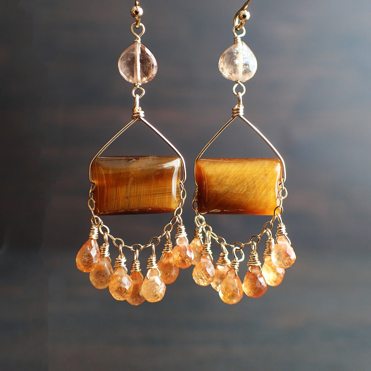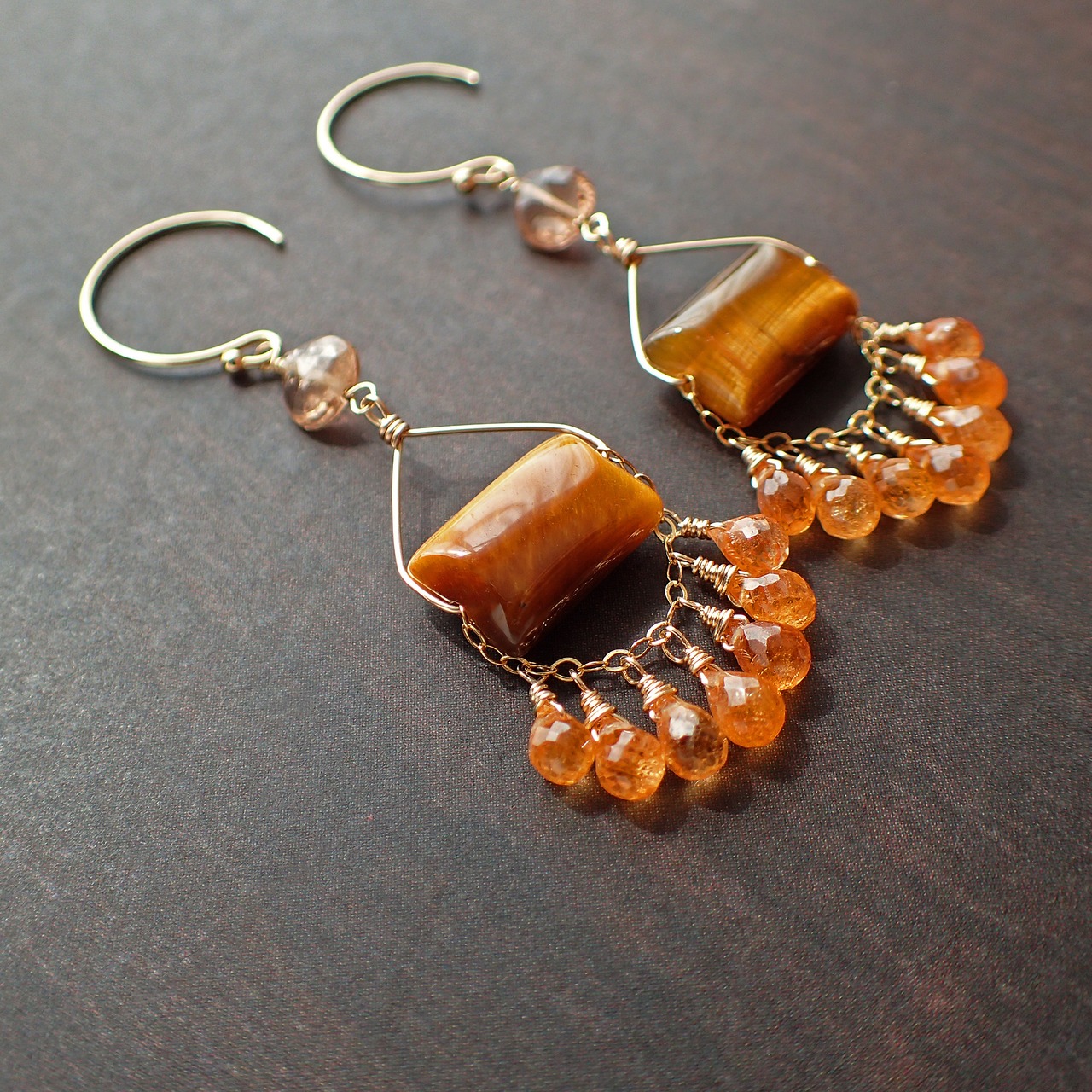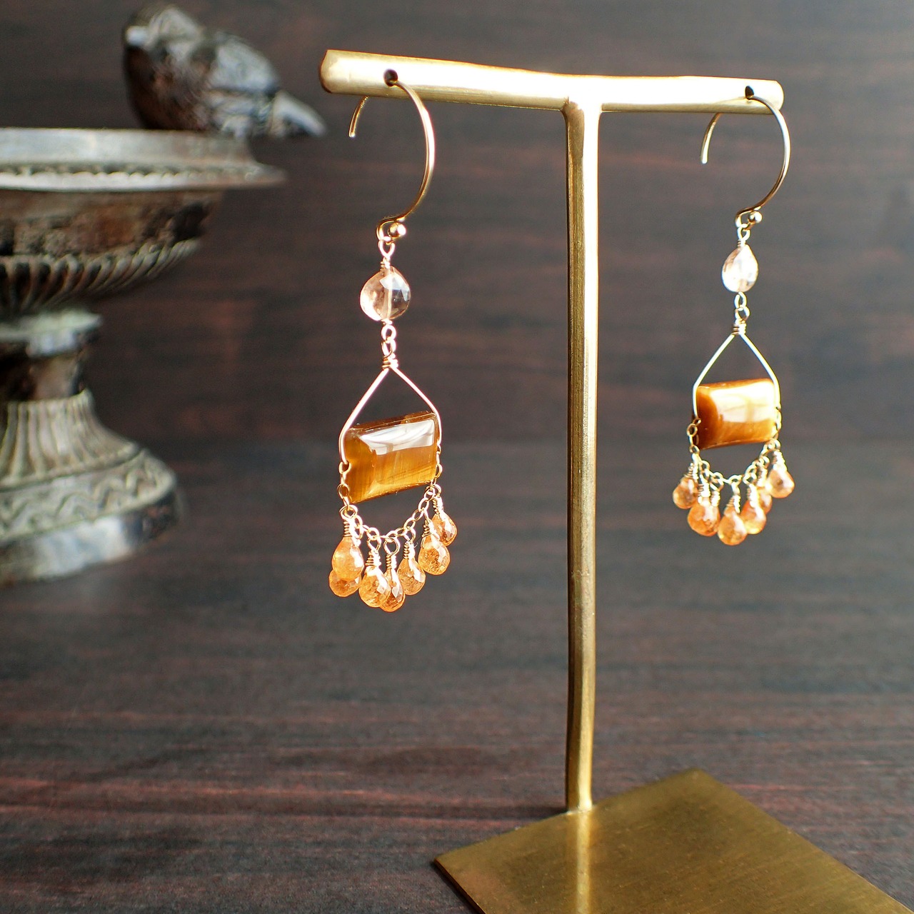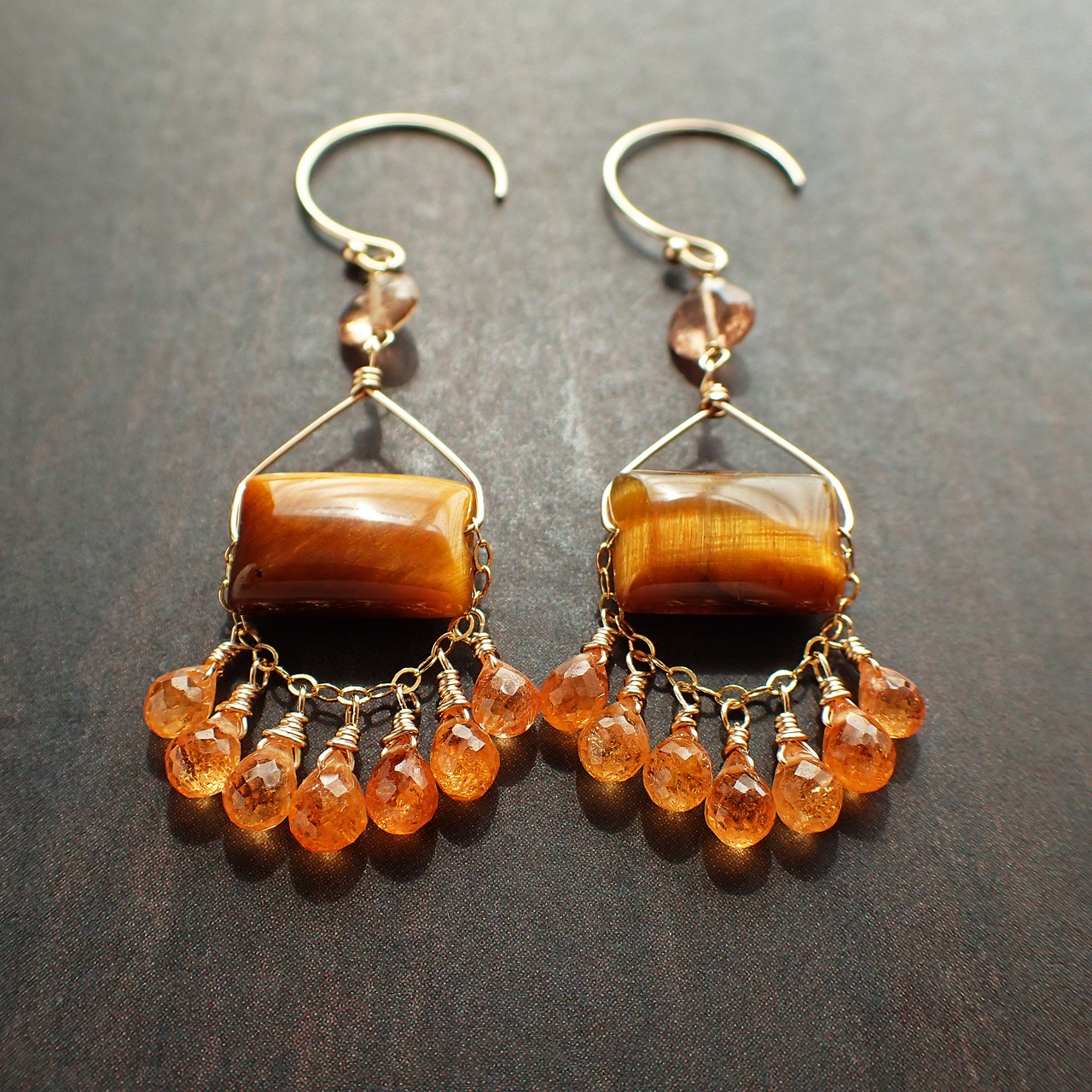 Autumn leaves mini chandelier earrings (Tiger's-eye &Spessartine Garnet )