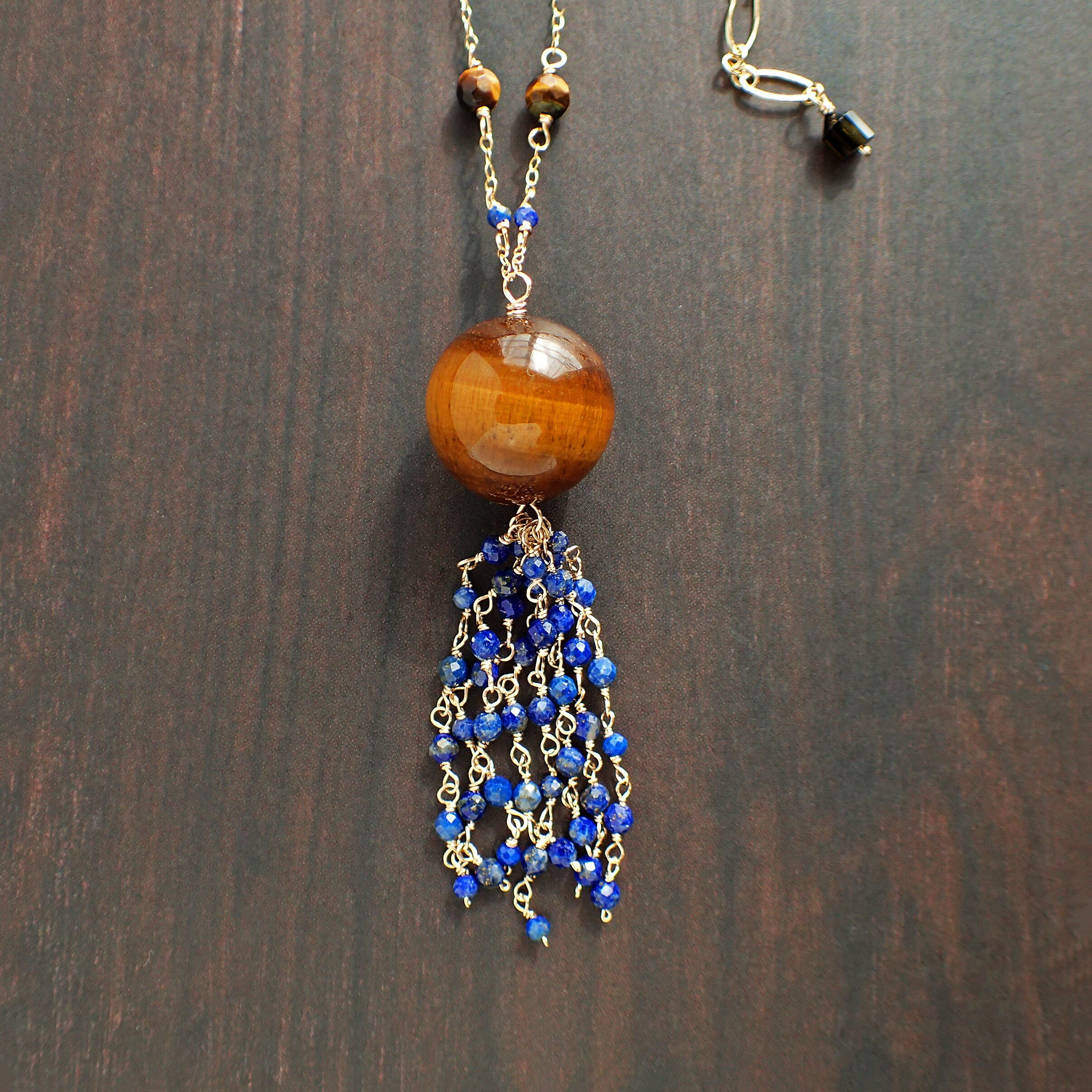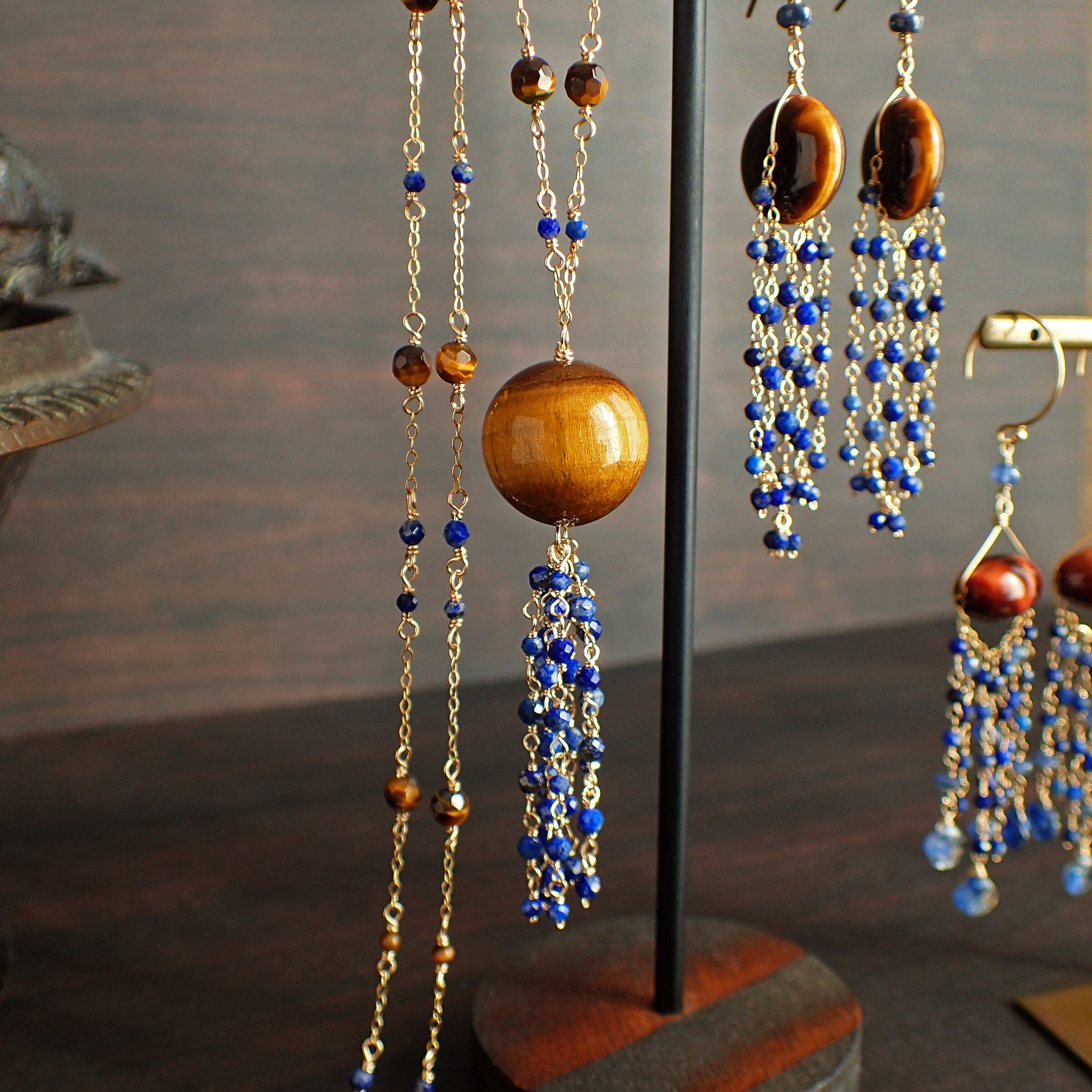 # タイガーアイ&ラピスラズリ シャンデリアロングネックレス(&サファイア)