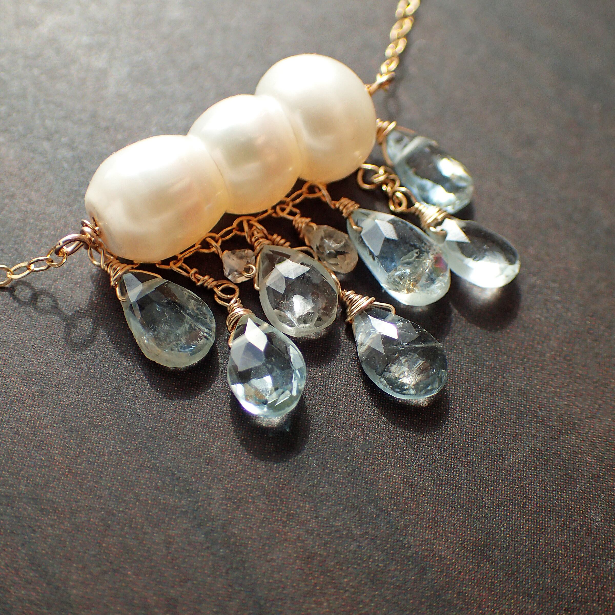 Cloud & hail necklace( Triplets Pearl & Aquamarine)