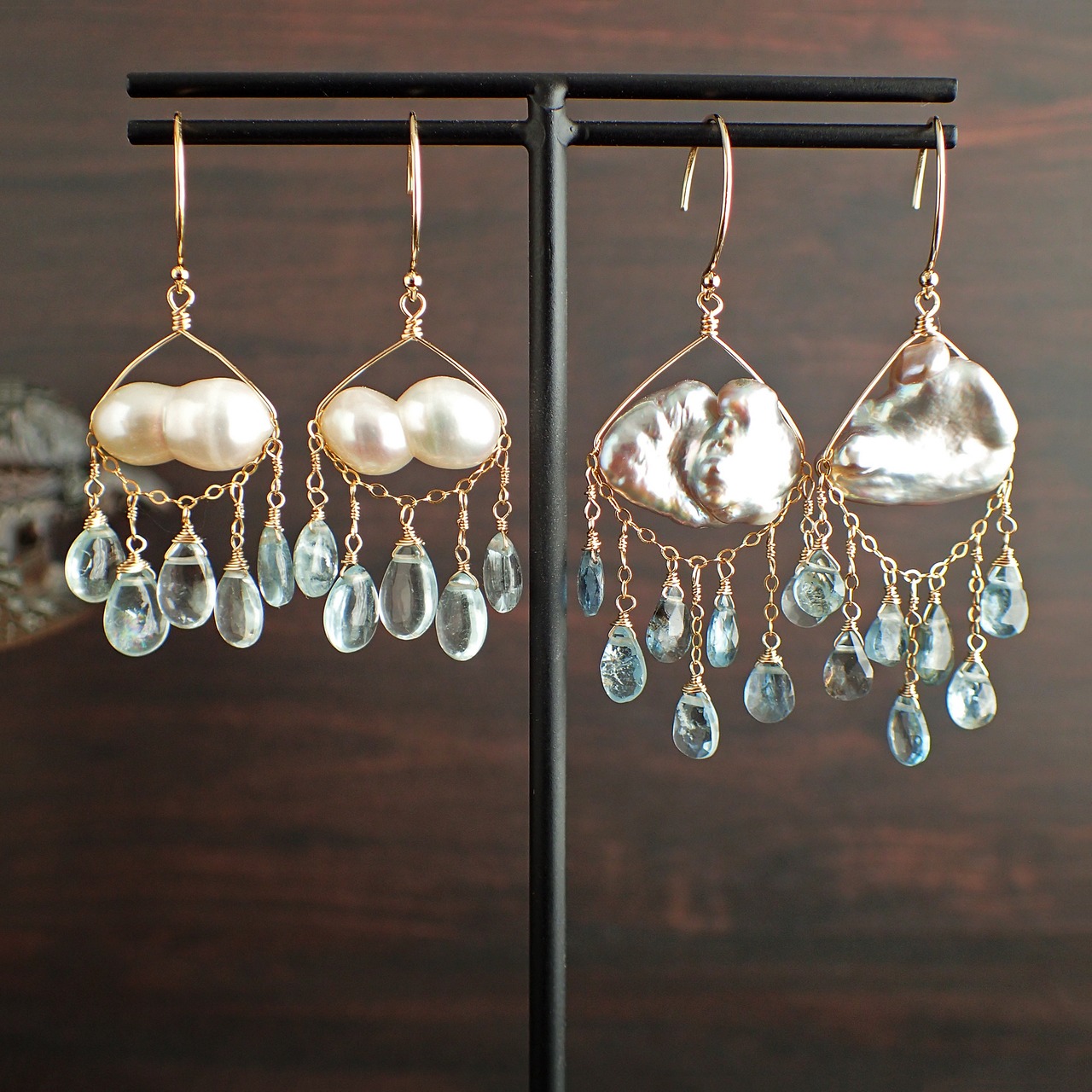# 雲と雨のピアス(アクアマリン)