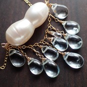淡水パール(双子パール:横幅2.1㎝)・アクアマリン・ホワイトサファイア・ローズクウォーツ・K14GF(チェーン、ワイヤー、パーツすべて)