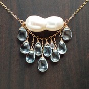 Cloud & Rain drops necklace( Aquamarine &White Sapphire)