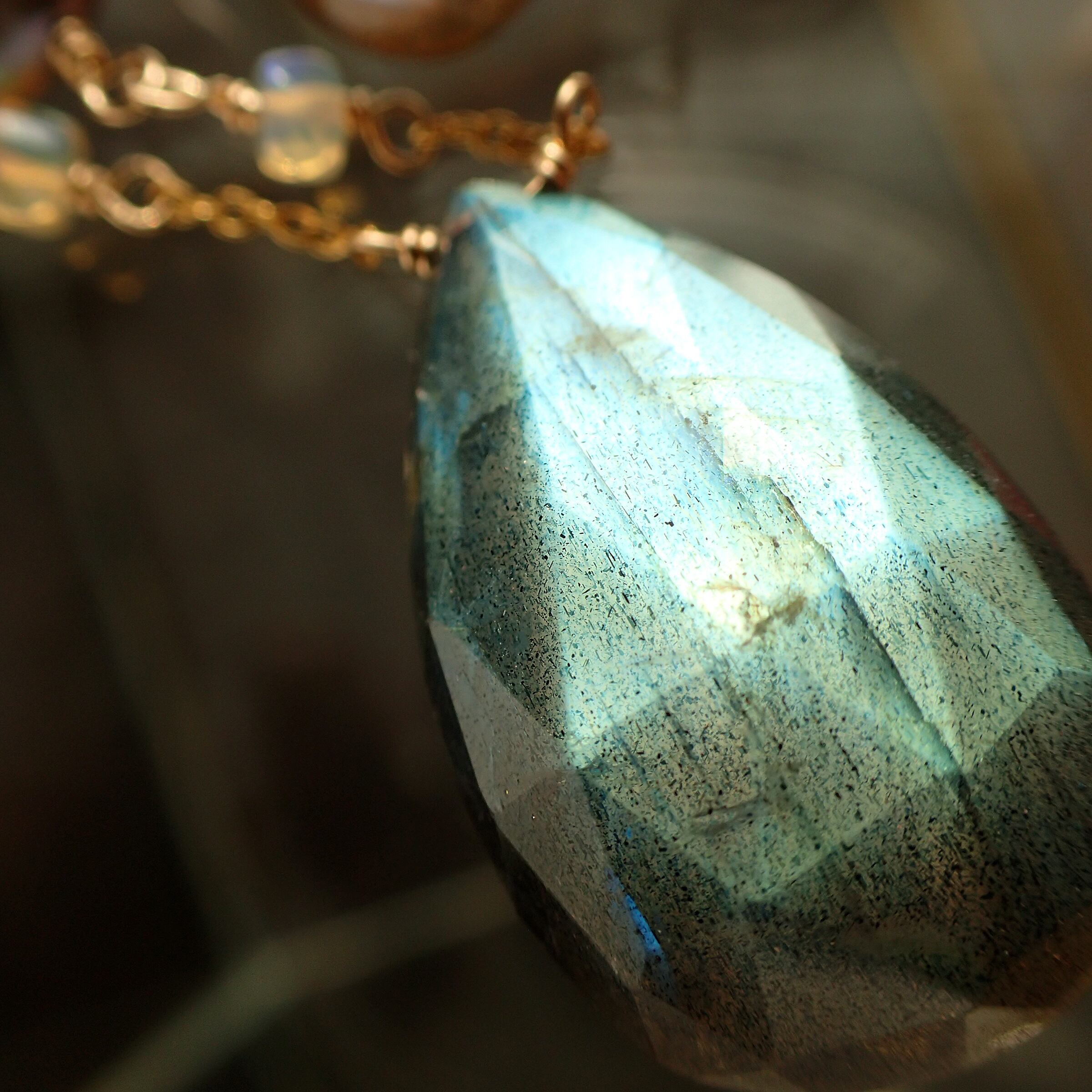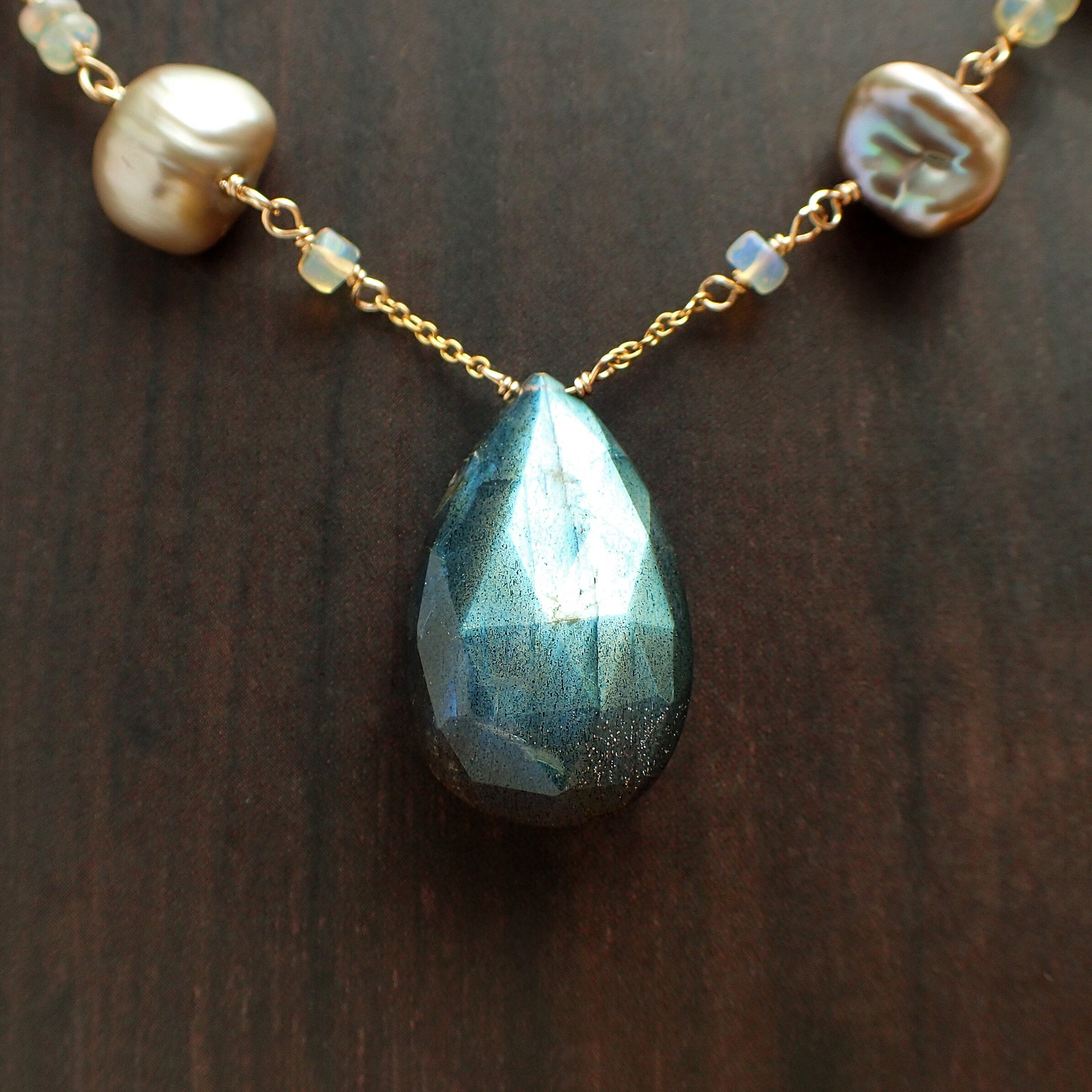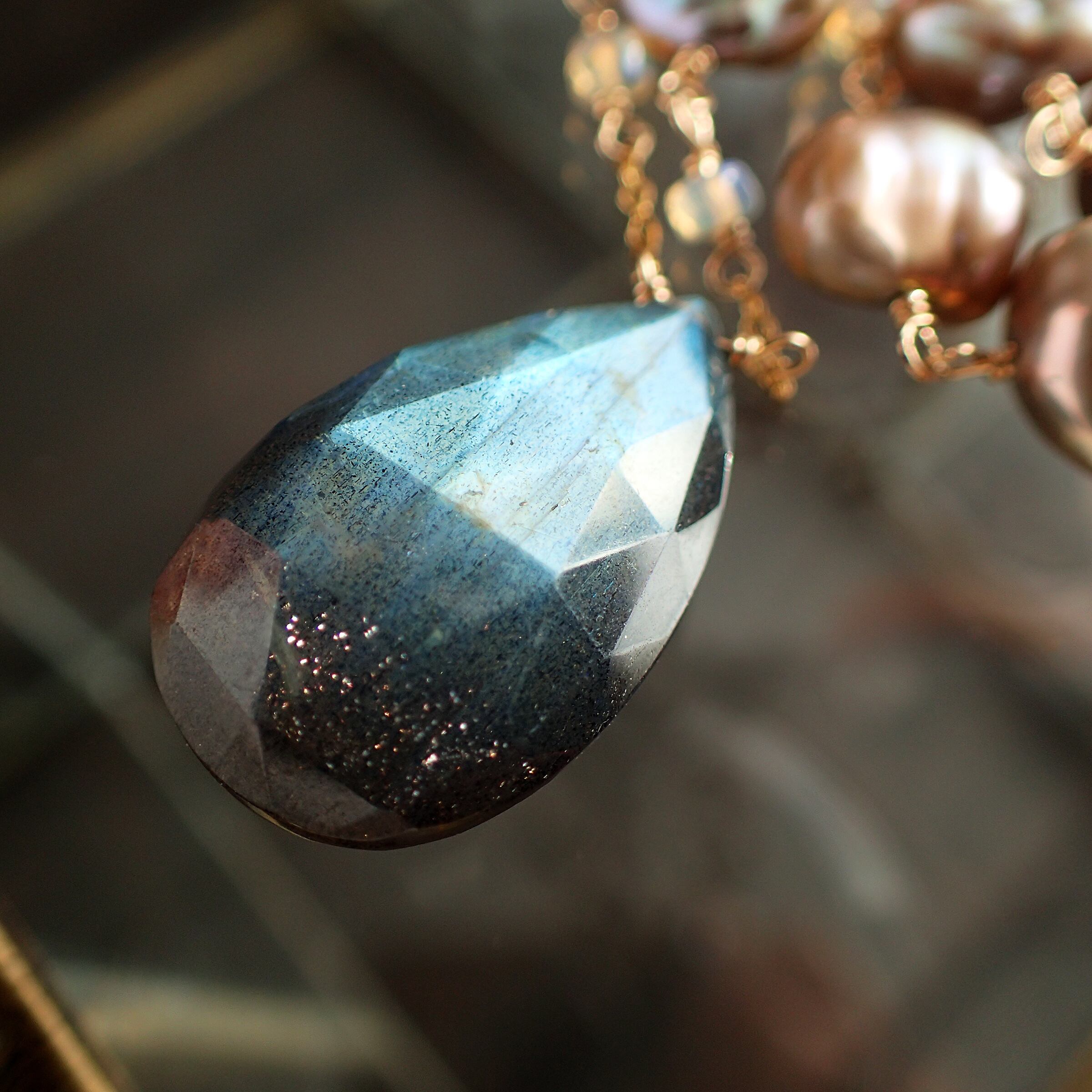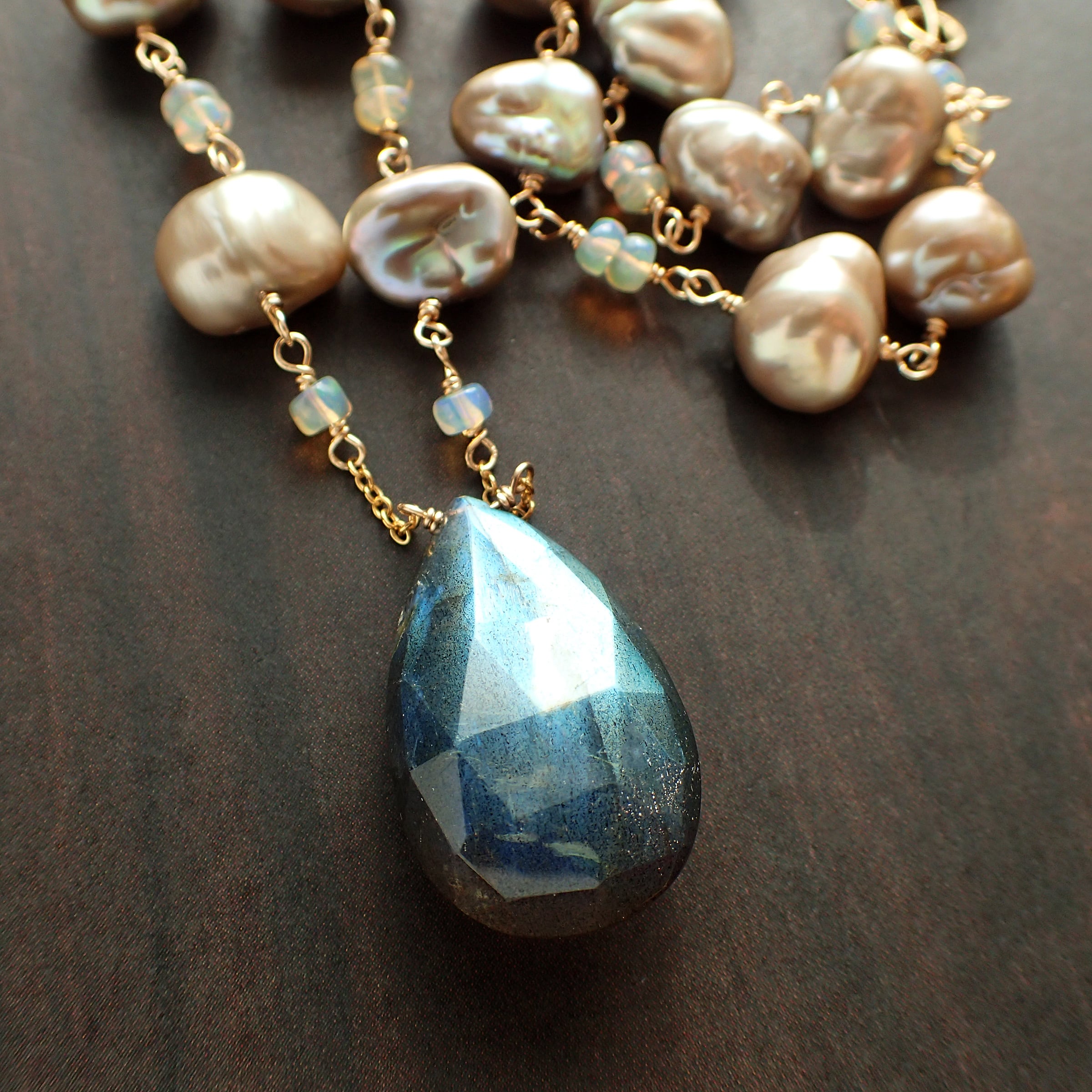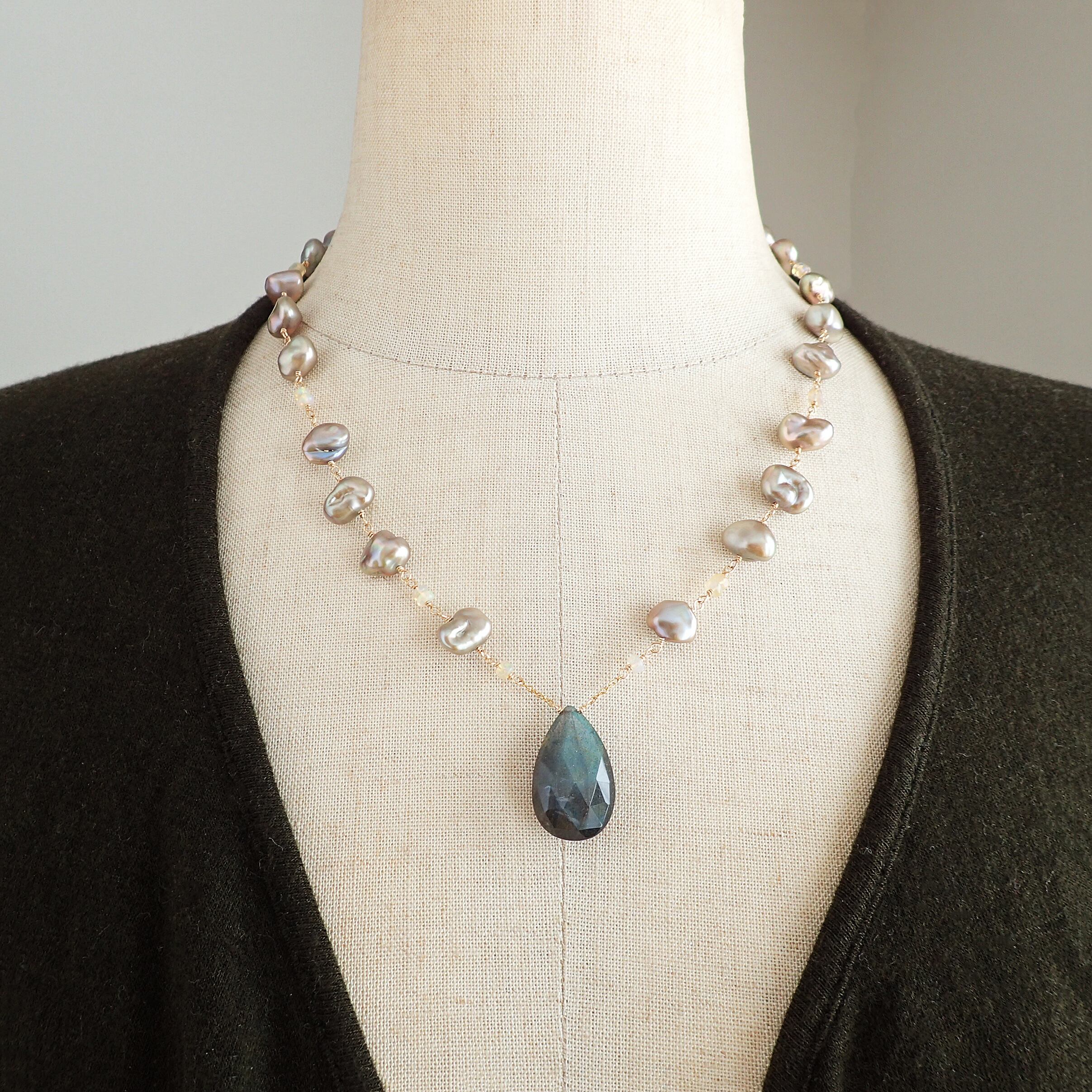 淡水パールの柔らかな輝き、ラブラドライトの幻想的なシラー、オパールの多彩な色合いが絶妙に調和し、あなたの個性を引き立てること間違いなしです。