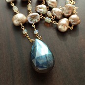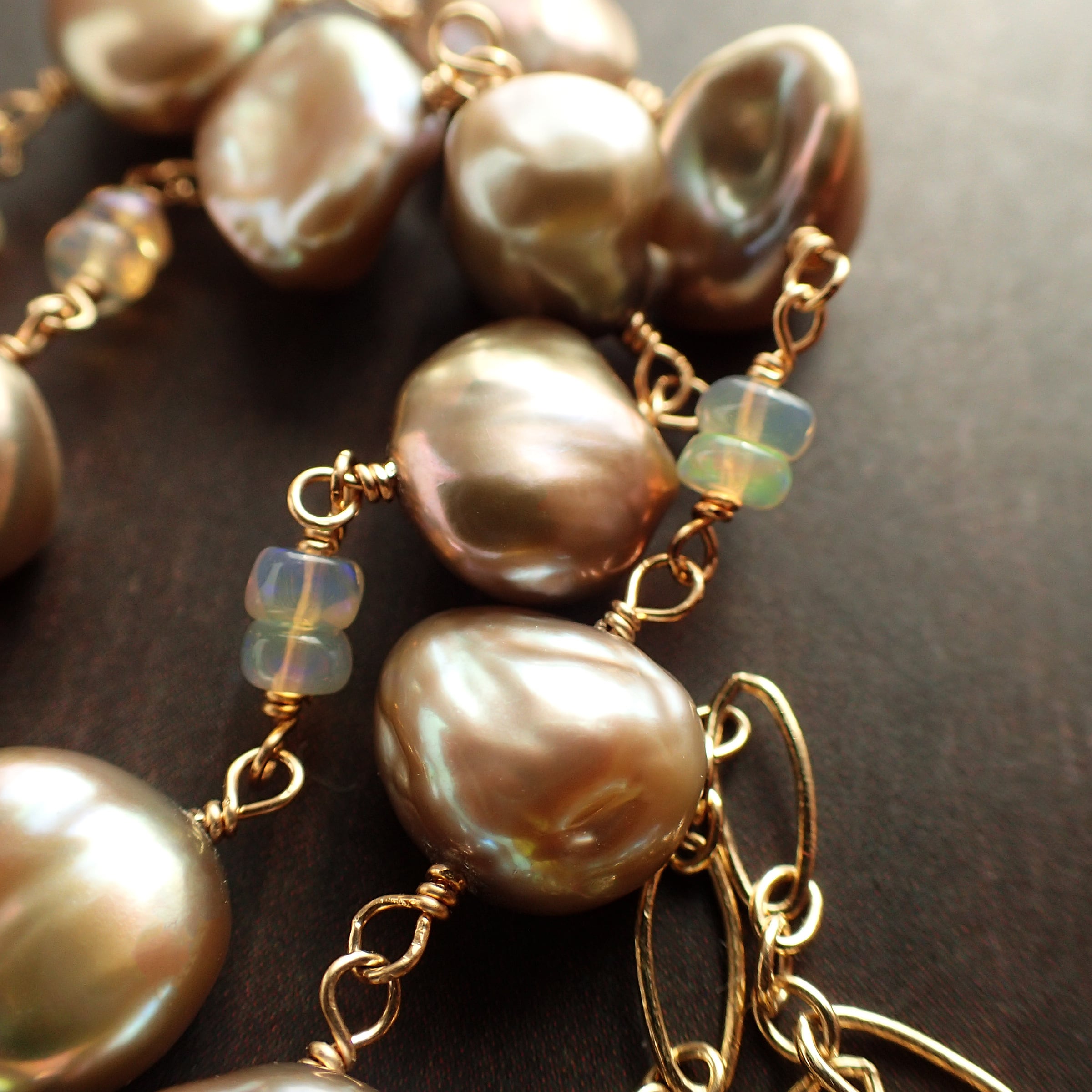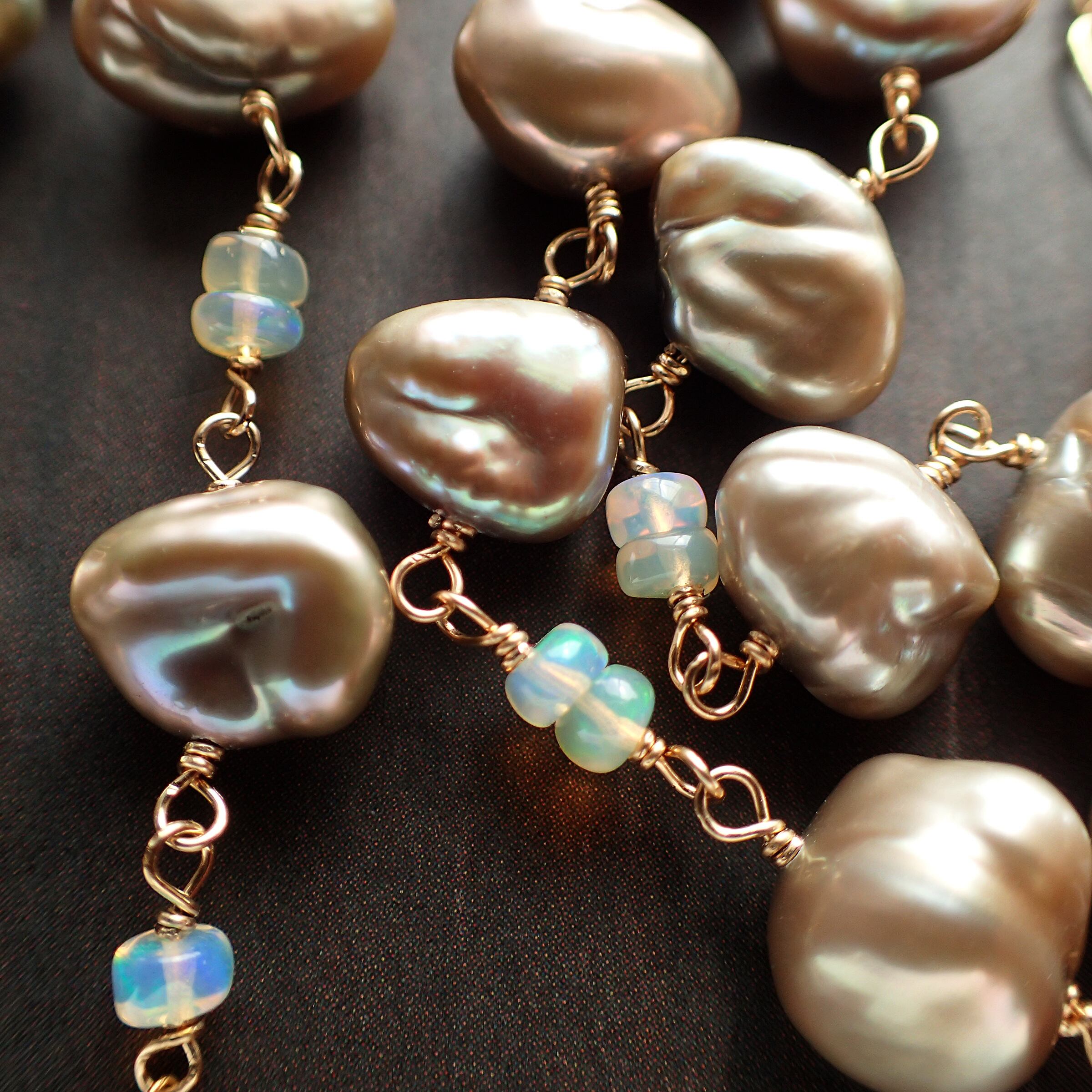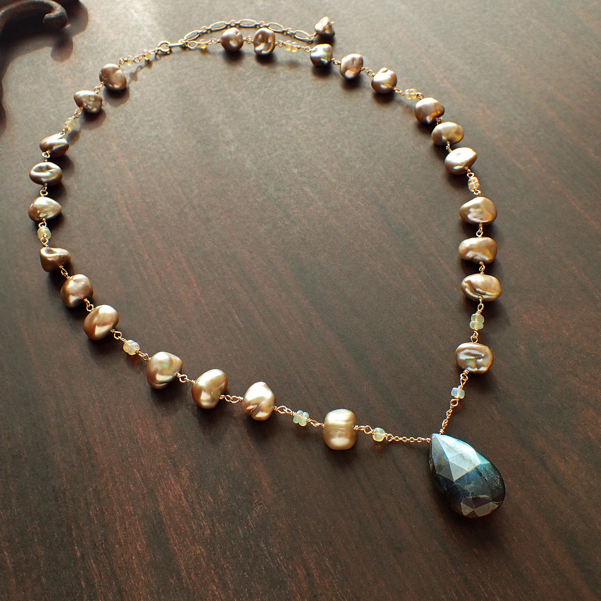 淡水パール、ラブラドライト、オパール、K14GF(パーツ、ワイヤー、チェーン全て)
