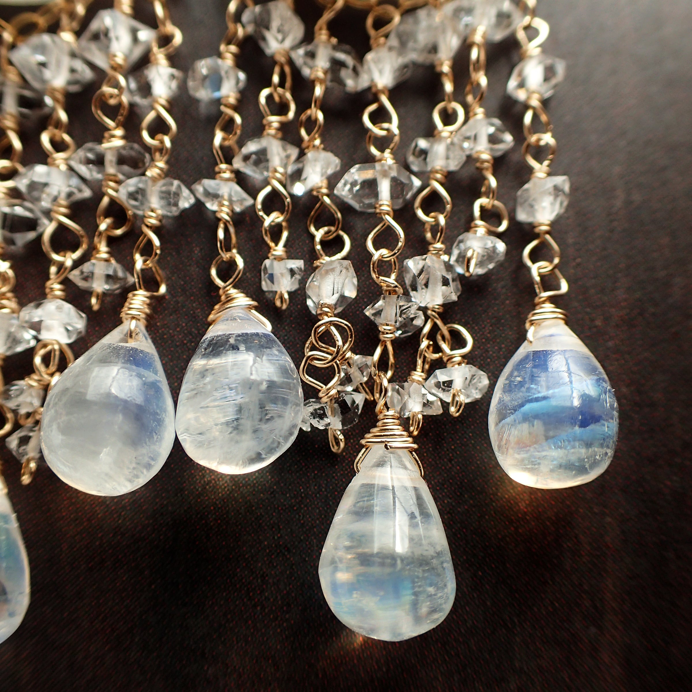 ドゥルージークウォーツ、ハーキマーダイヤモンド、レインボームーンストーン、K14GF(パーツ、ワイヤー全て)