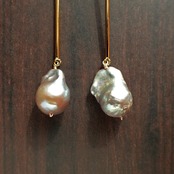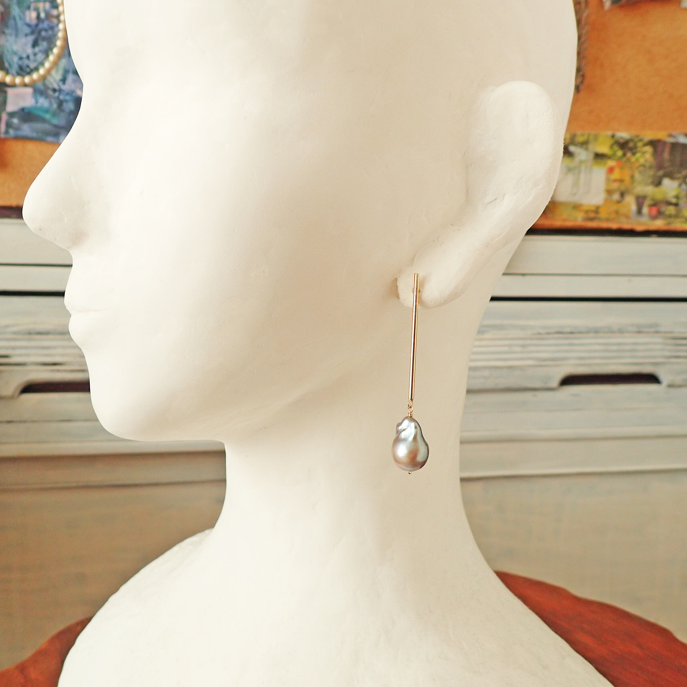 # 大粒バロックパールのロングスティックピアス(シルバーカラー)