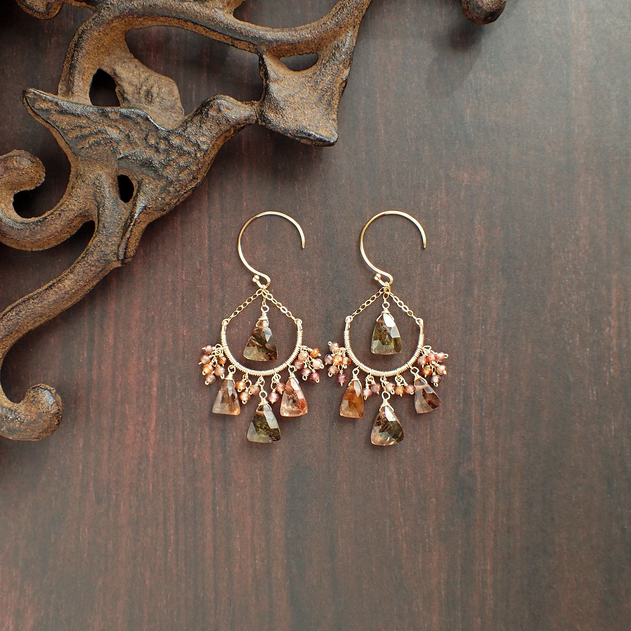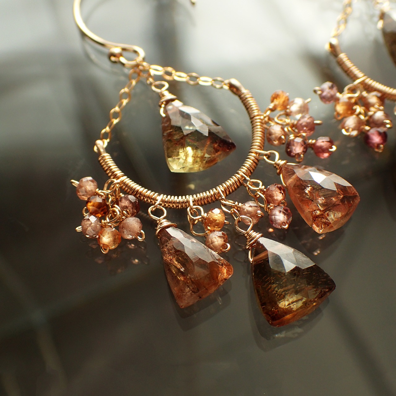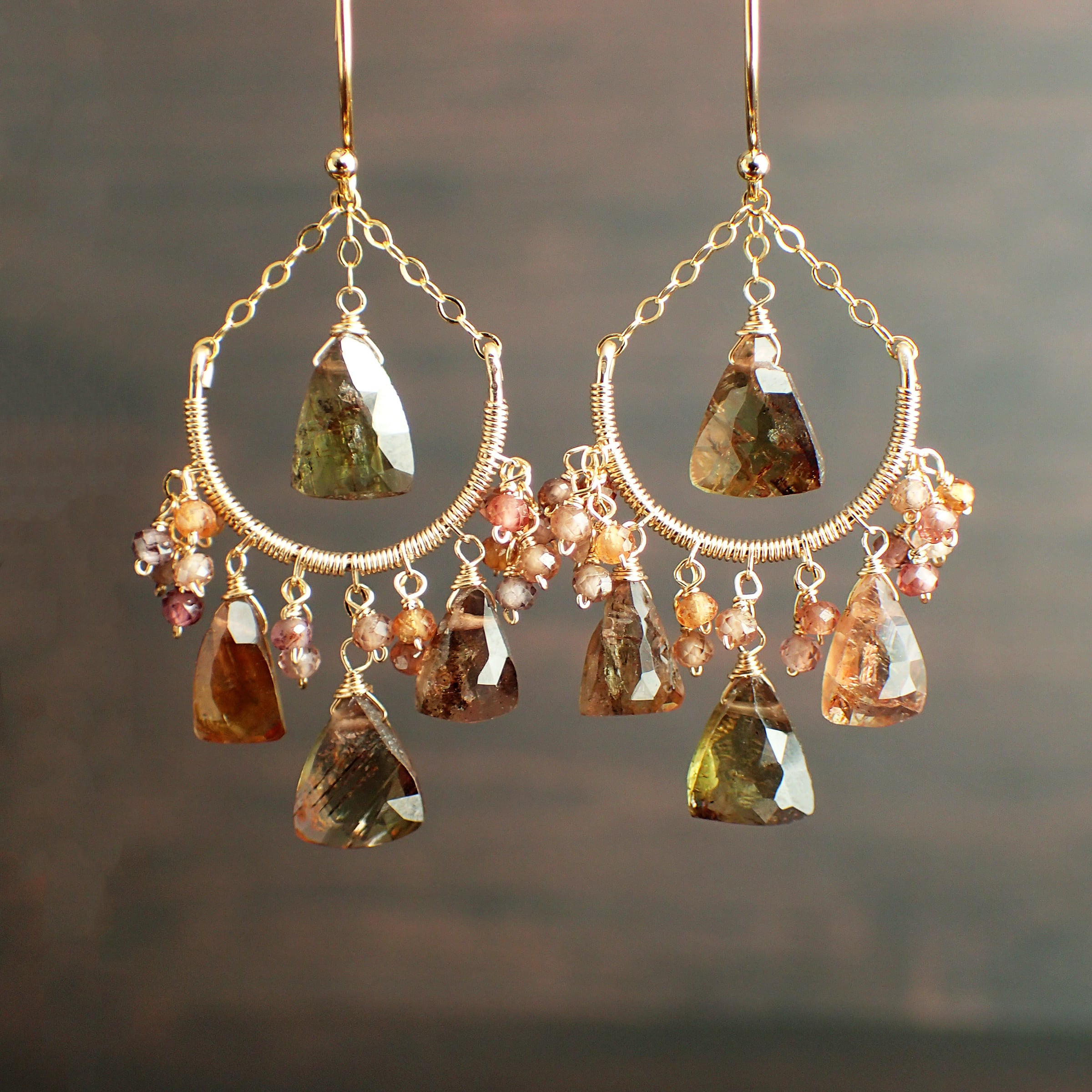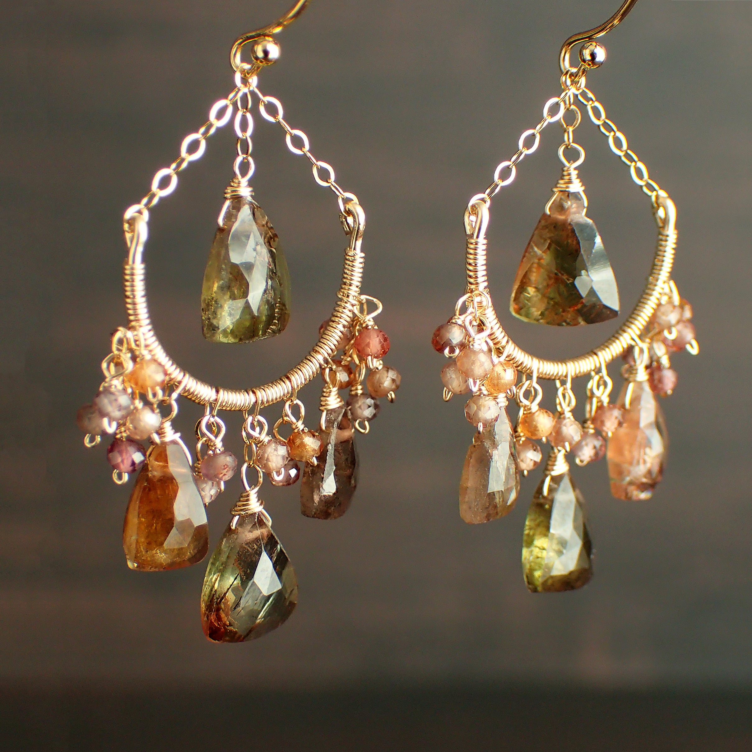 このアンダリュサイト & ツンドラサファイアのシャンデリアピアスは、アンダリュサイトとツンドラサファイアの美しい色合いが特徴のアクセサリーです。