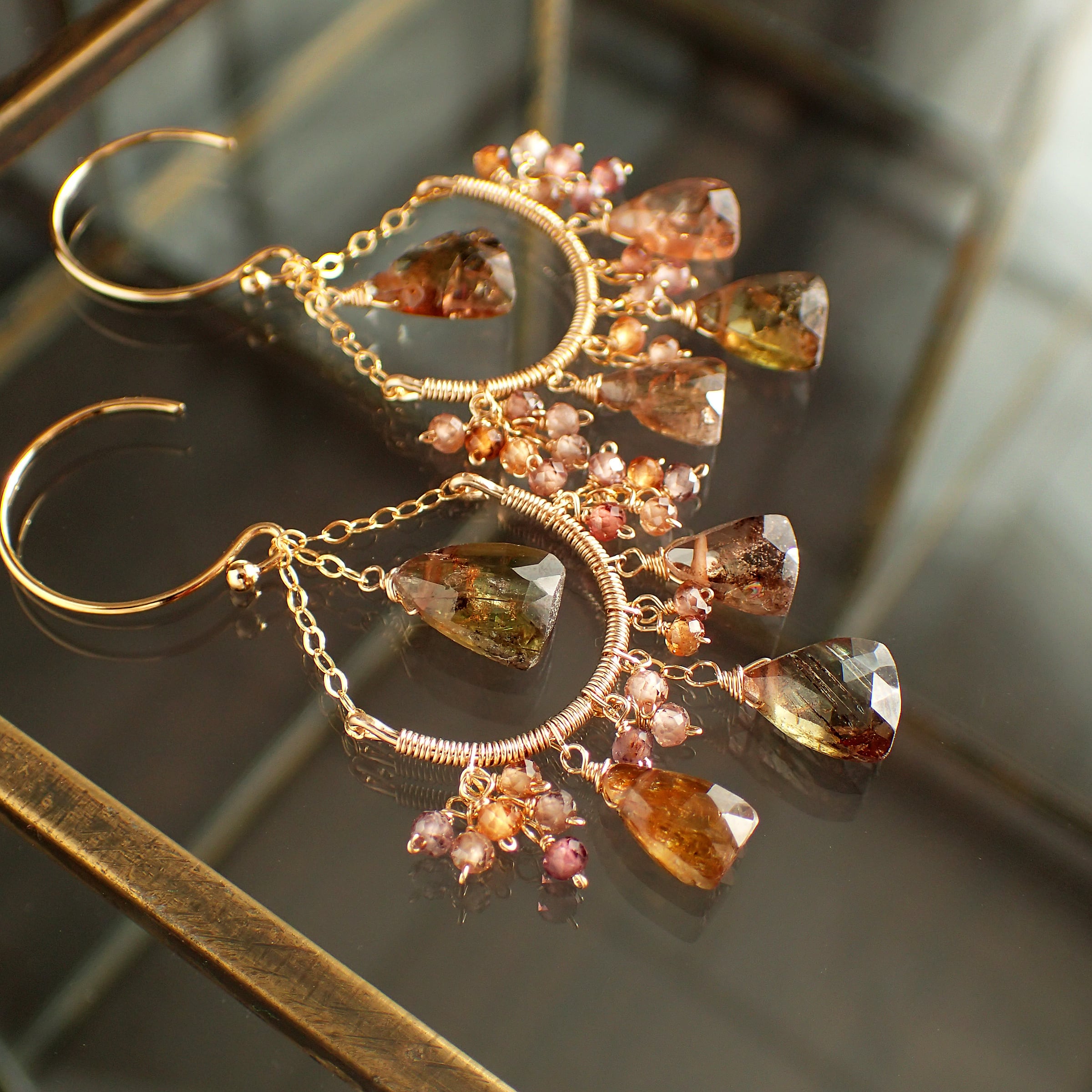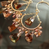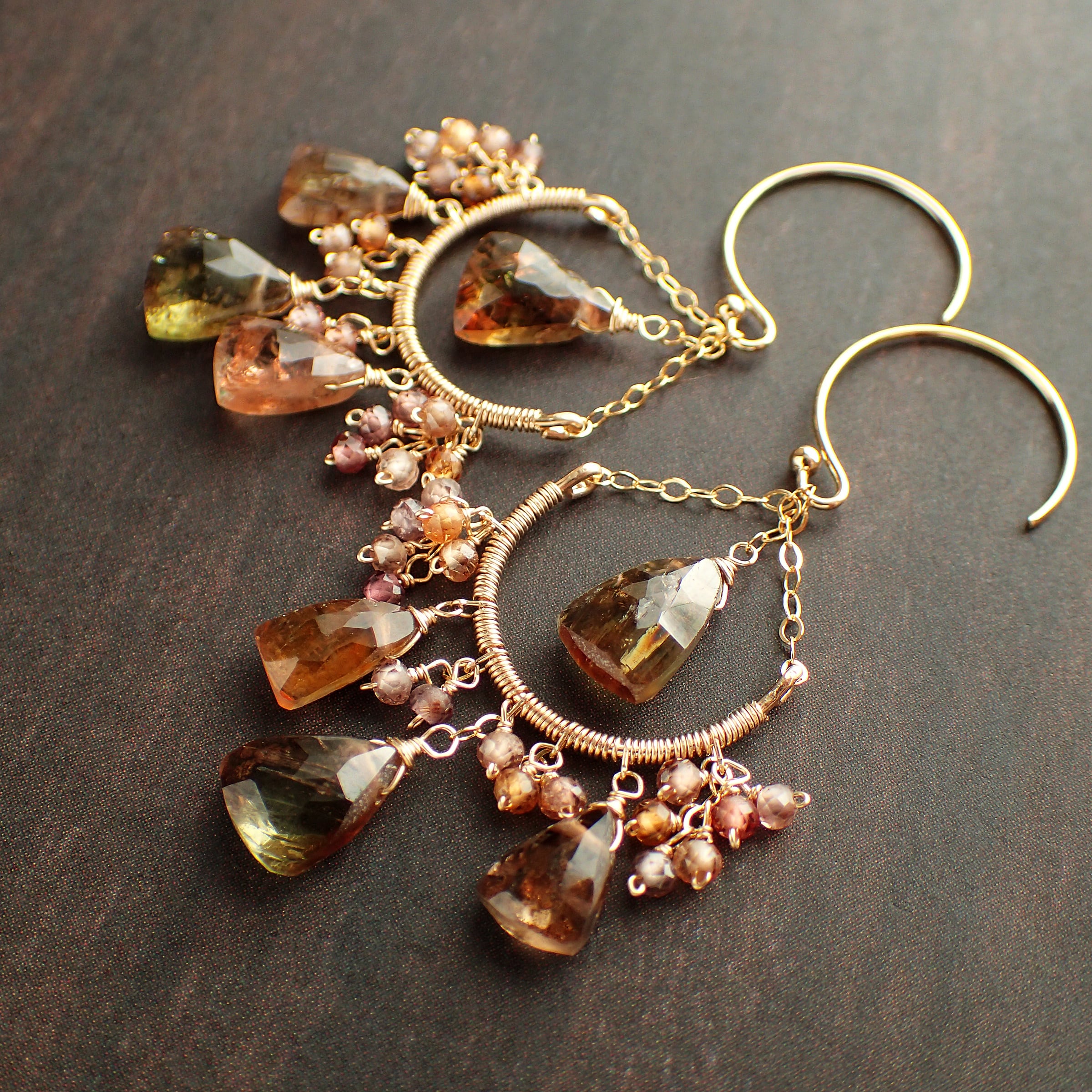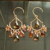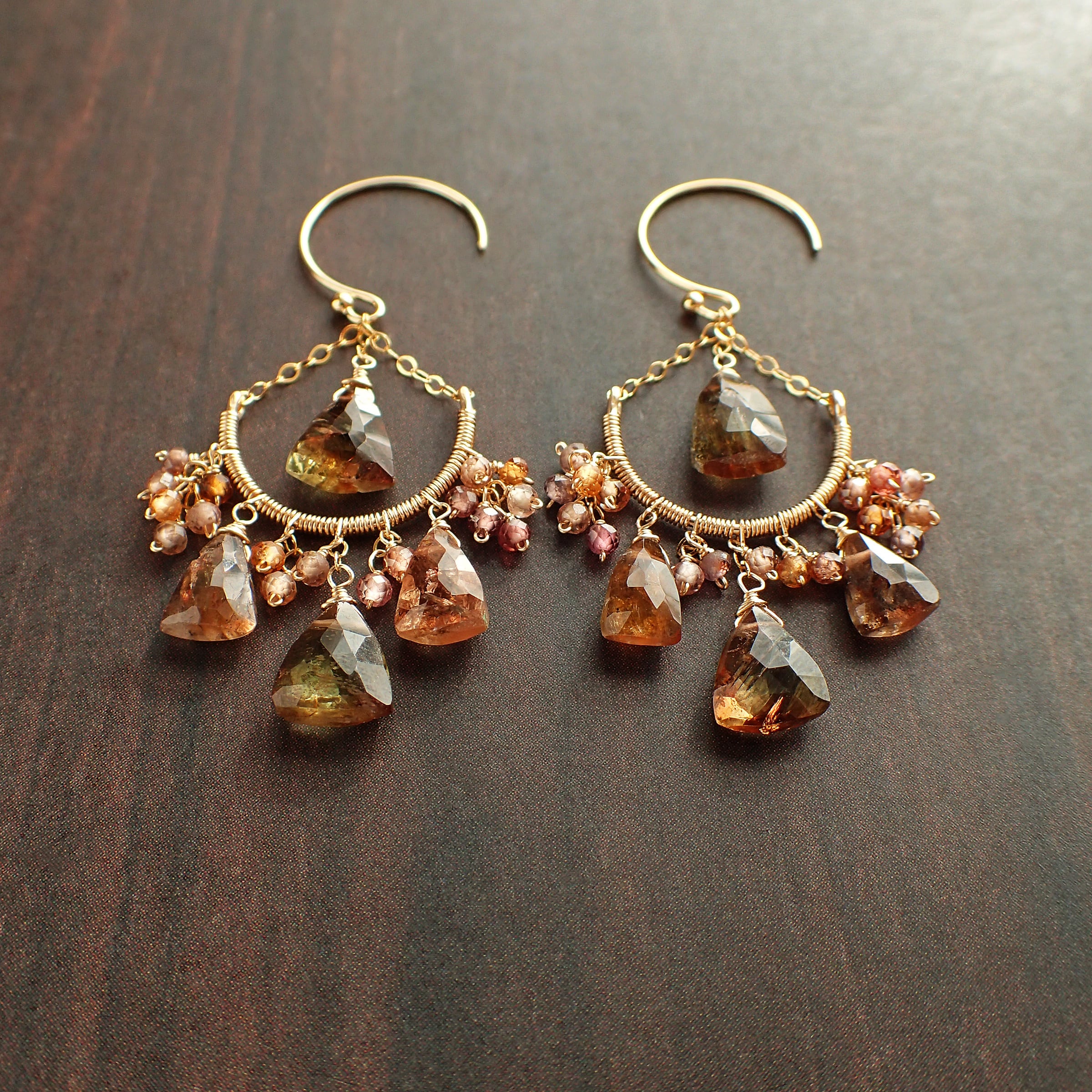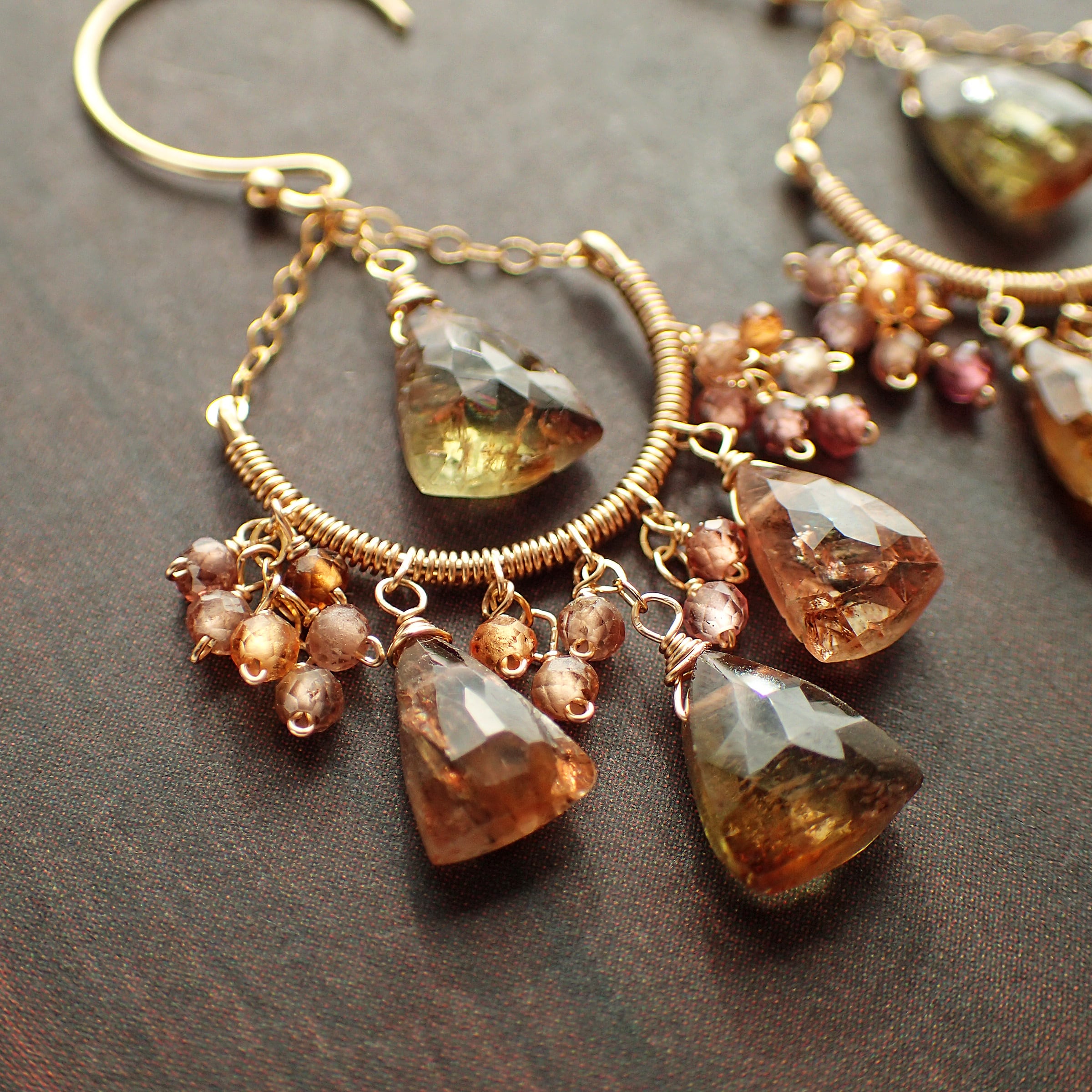 このアンダリュサイト & ツンドラサファイアのシャンデリアピアスは、アンダリュサイトとツンドラサファイアの美しい色合いが特徴のアクセサリーです。