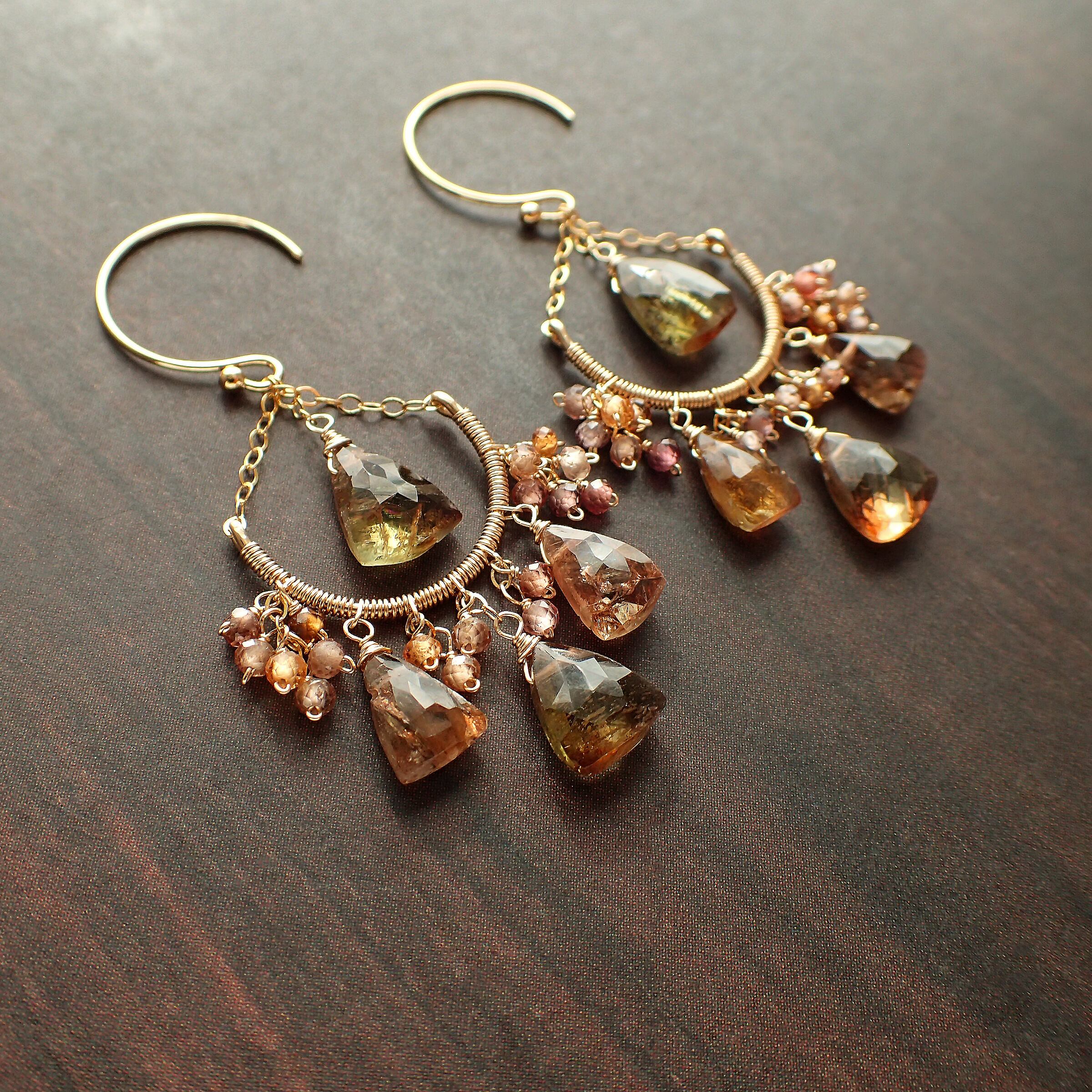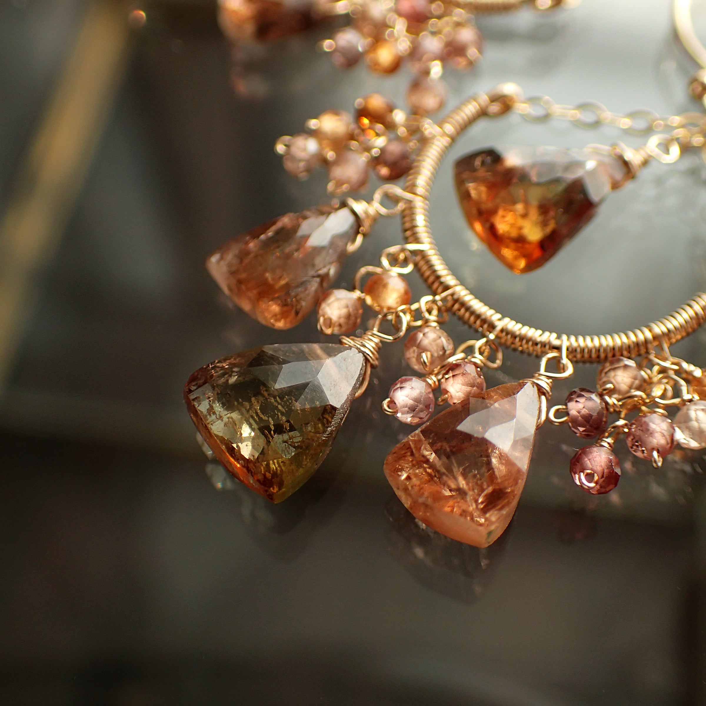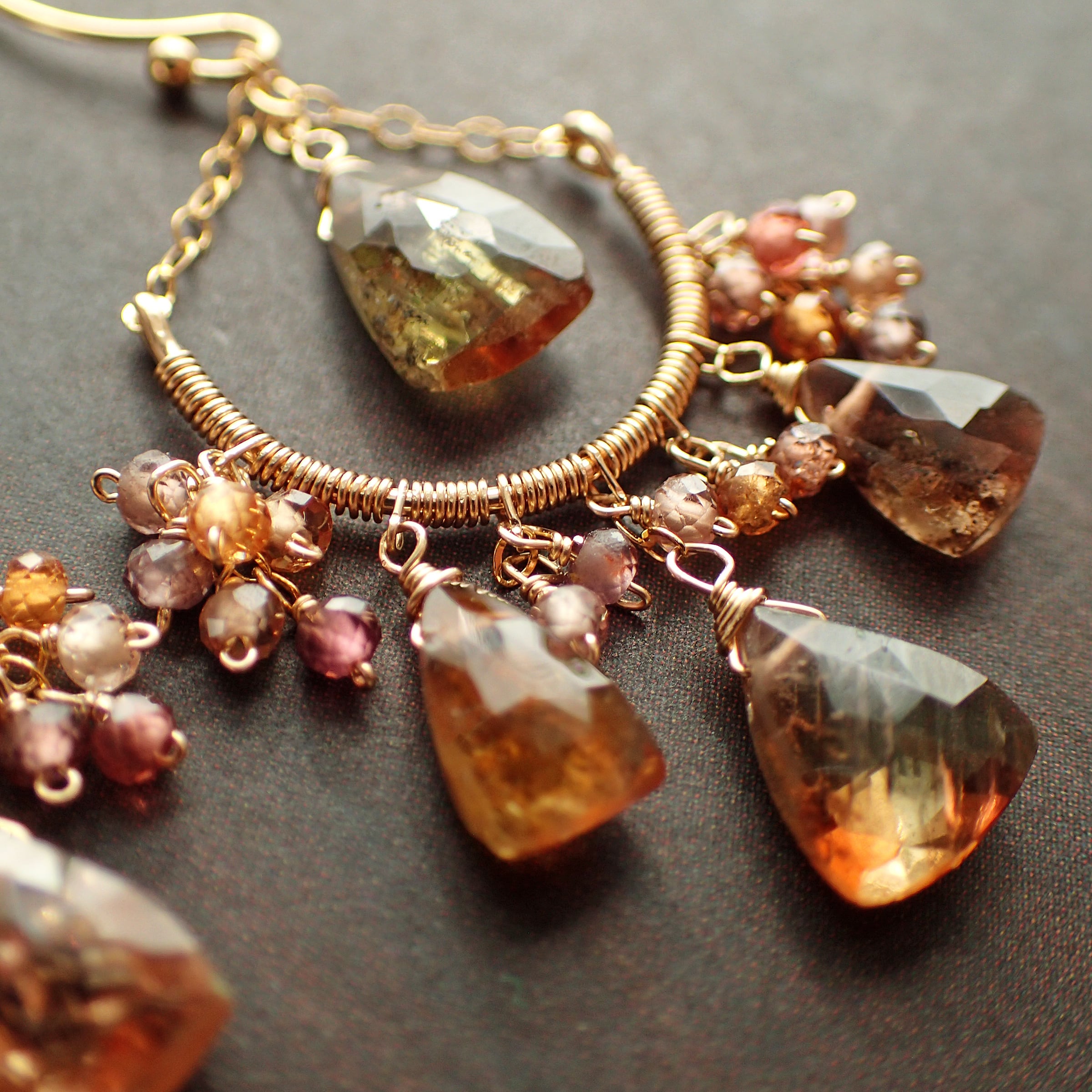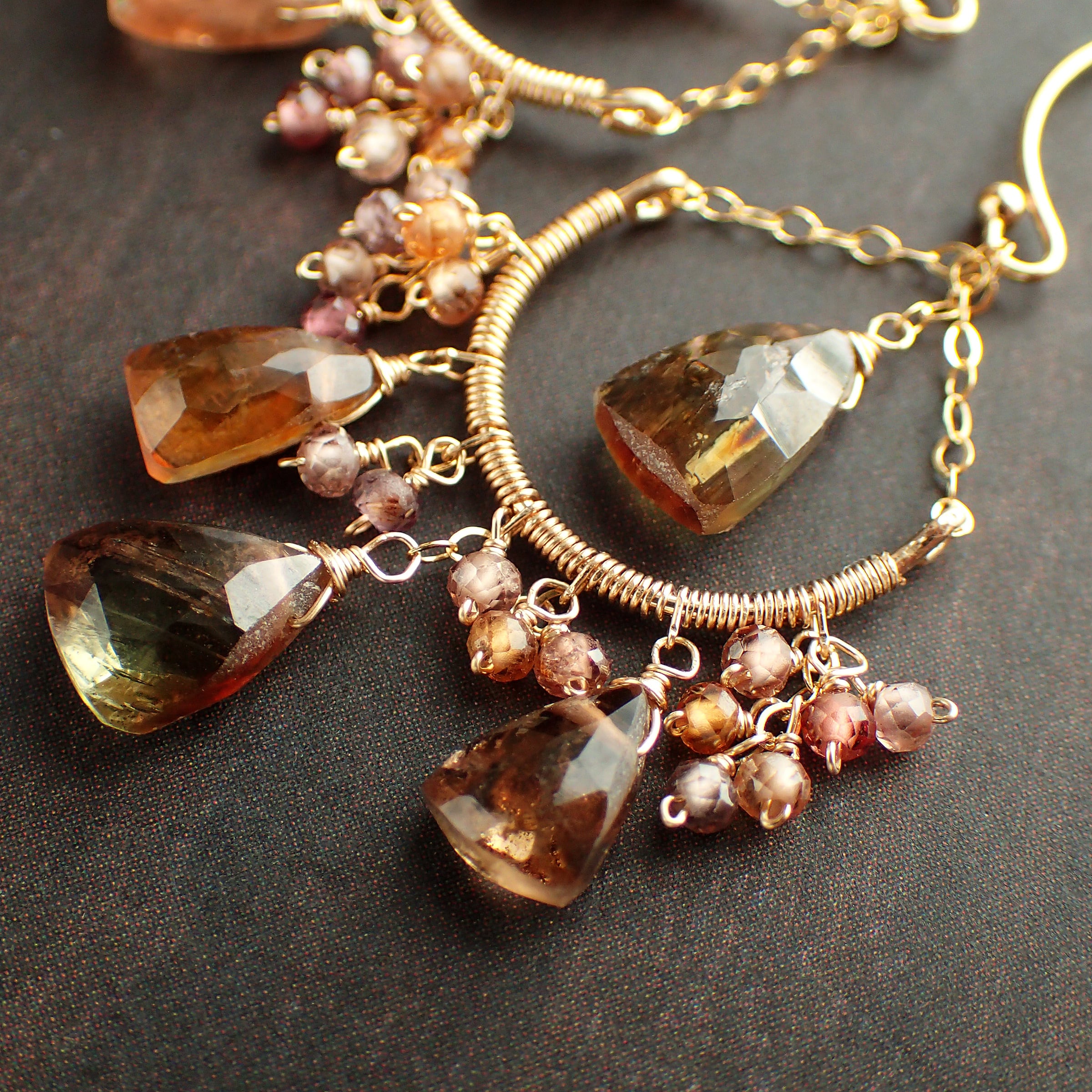 このアンダリュサイト & ツンドラサファイアのシャンデリアピアスは、アンダリュサイトとツンドラサファイアの美しい色合いが特徴のアクセサリーです。