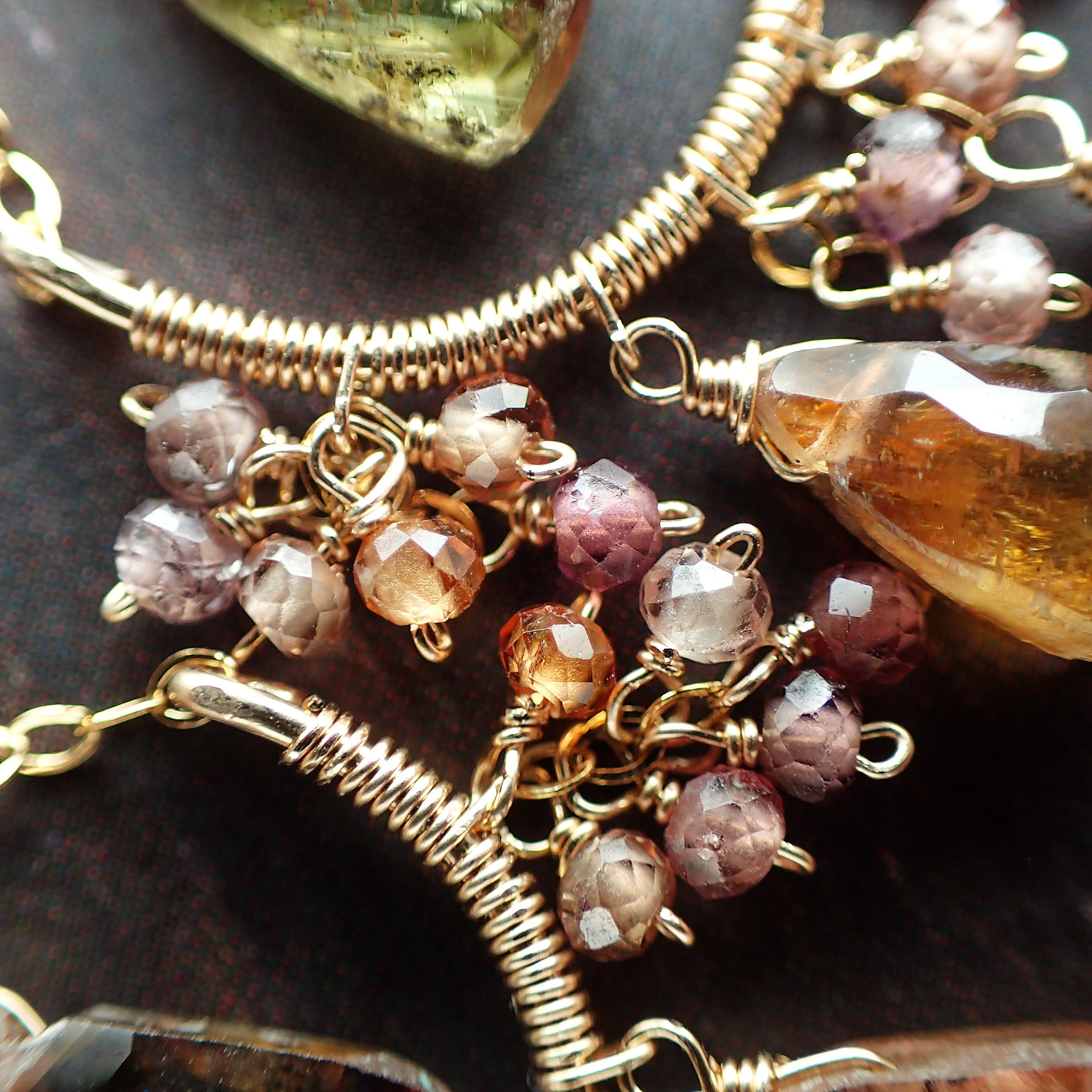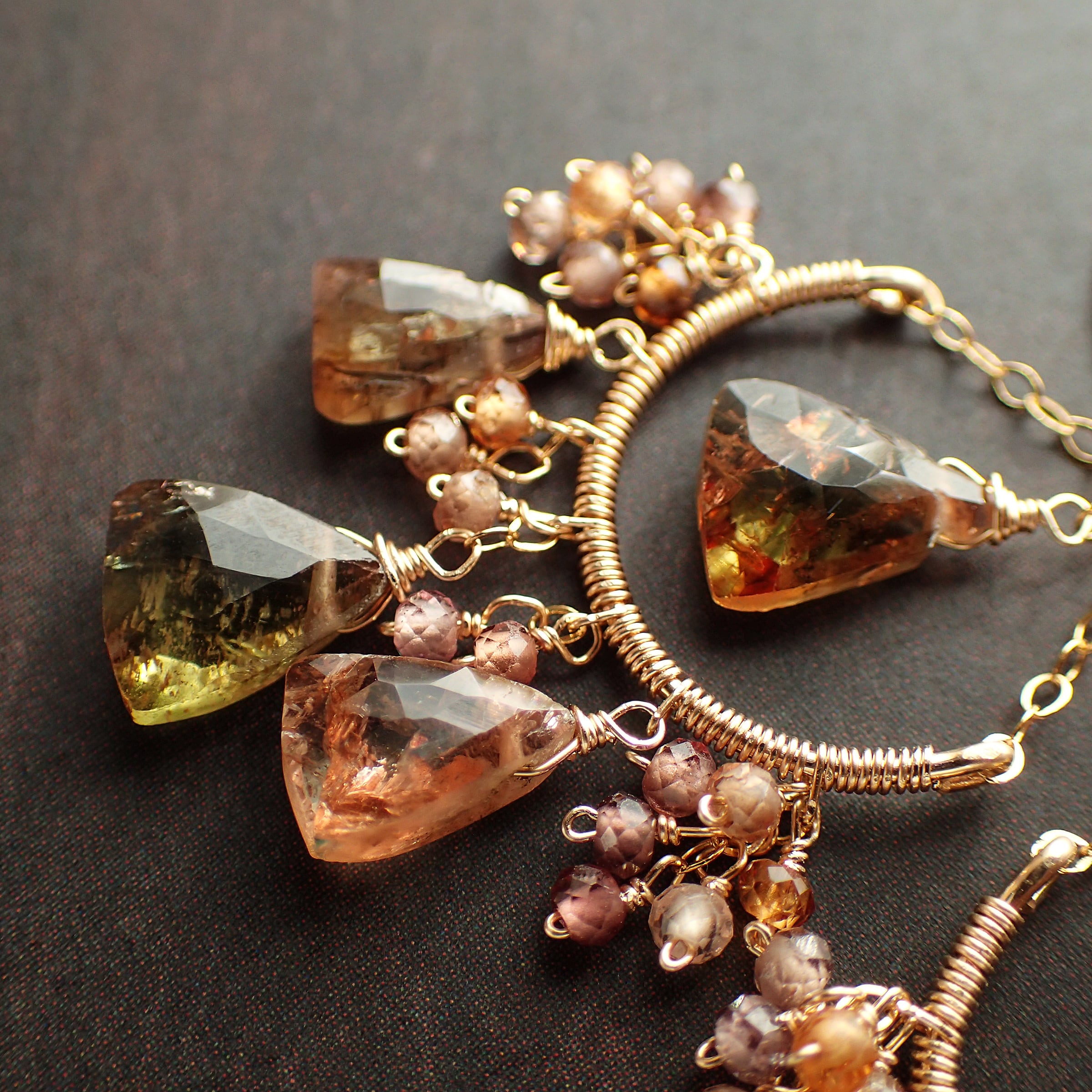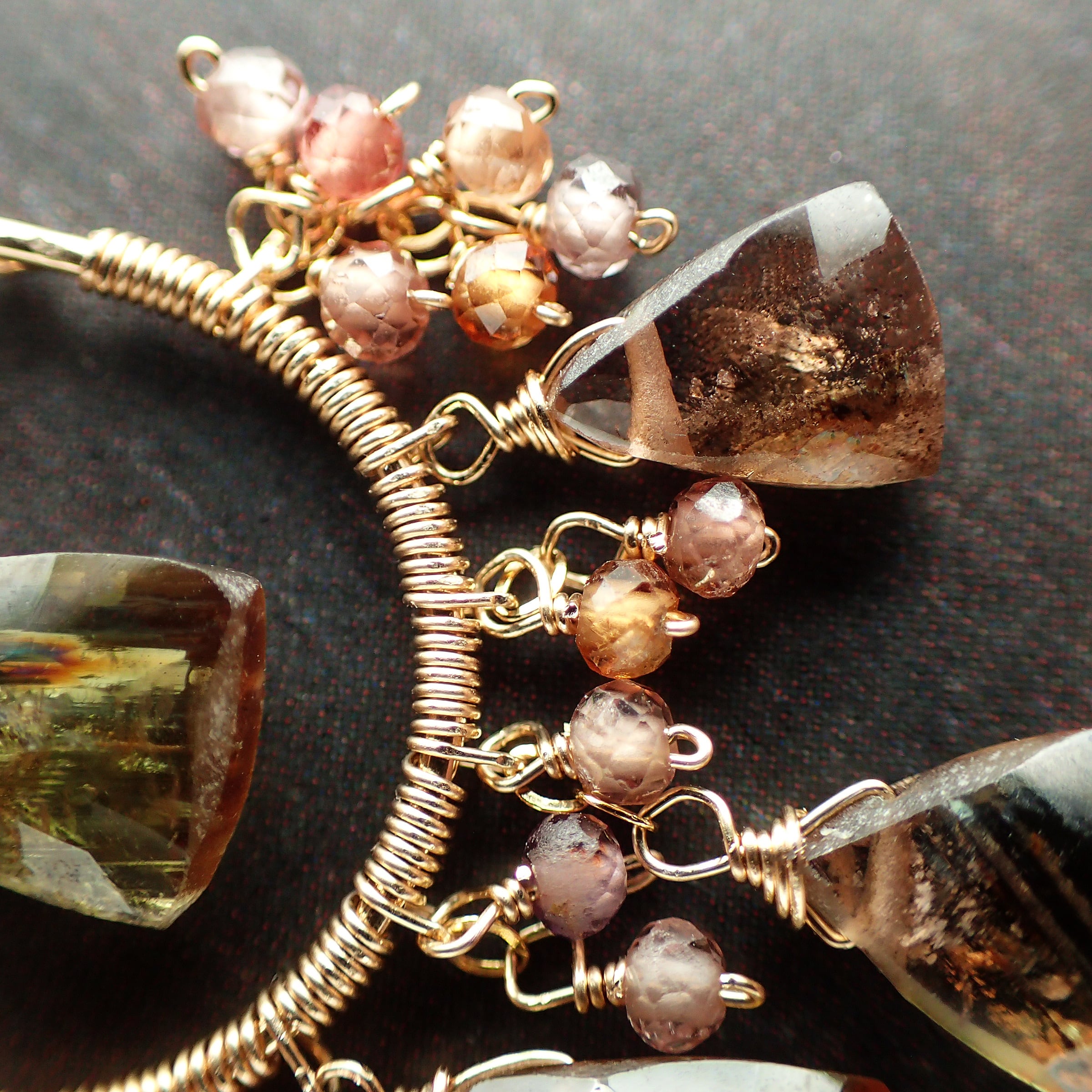 アンダリュサイト(三角のような形)・ツンドラサファイア・K14GF(パーツ・ワイヤー・チェーンすべて)