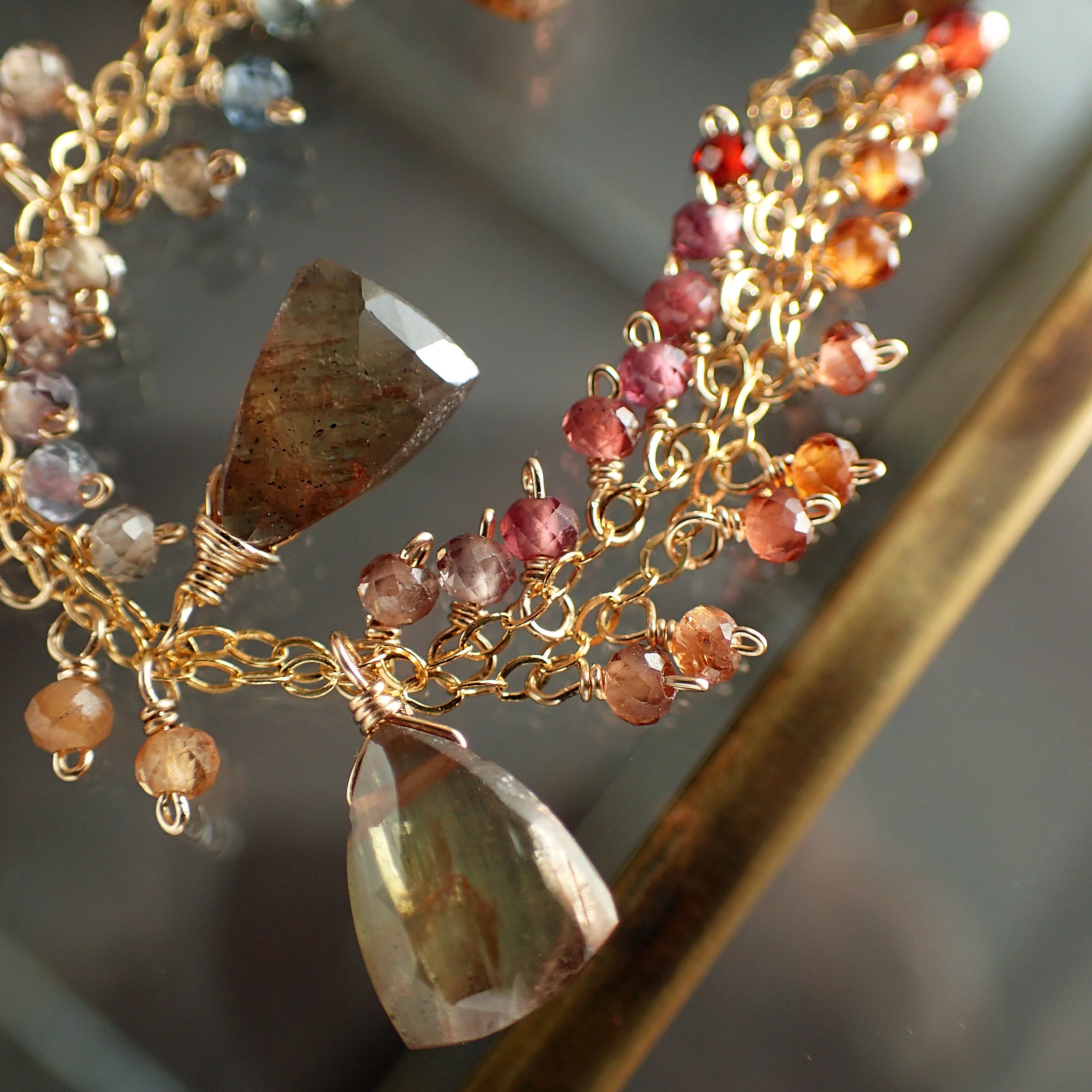 アンダリュサイトは、深い緑や柔らかいブラウン、あたたかみのあるピンクブラウンが融合し、何とも言えない美しい色合いを楽しめます。