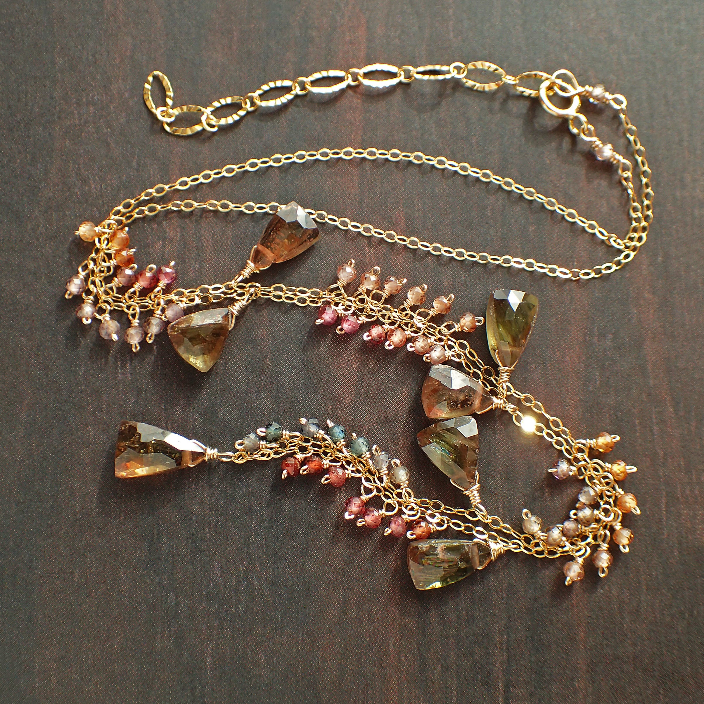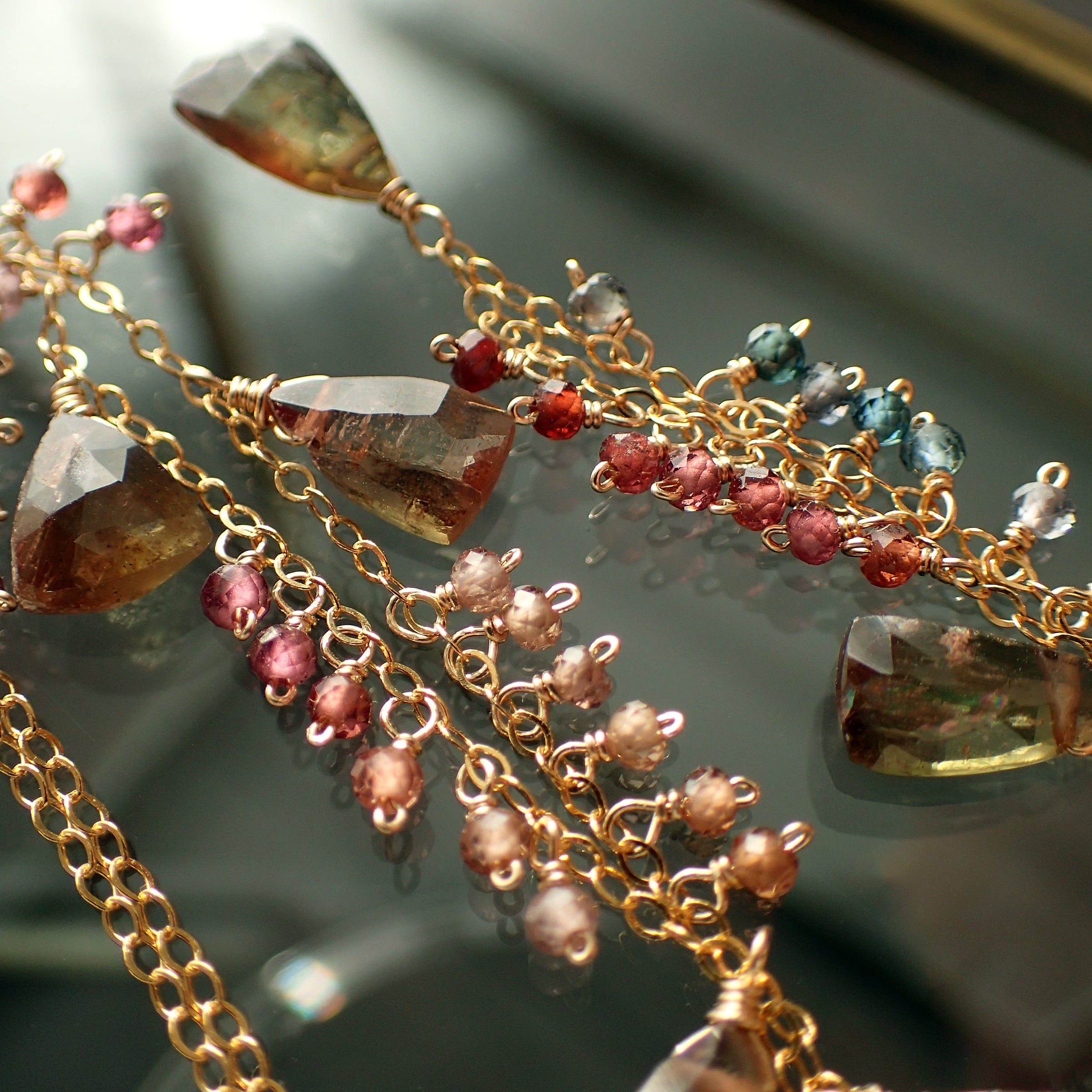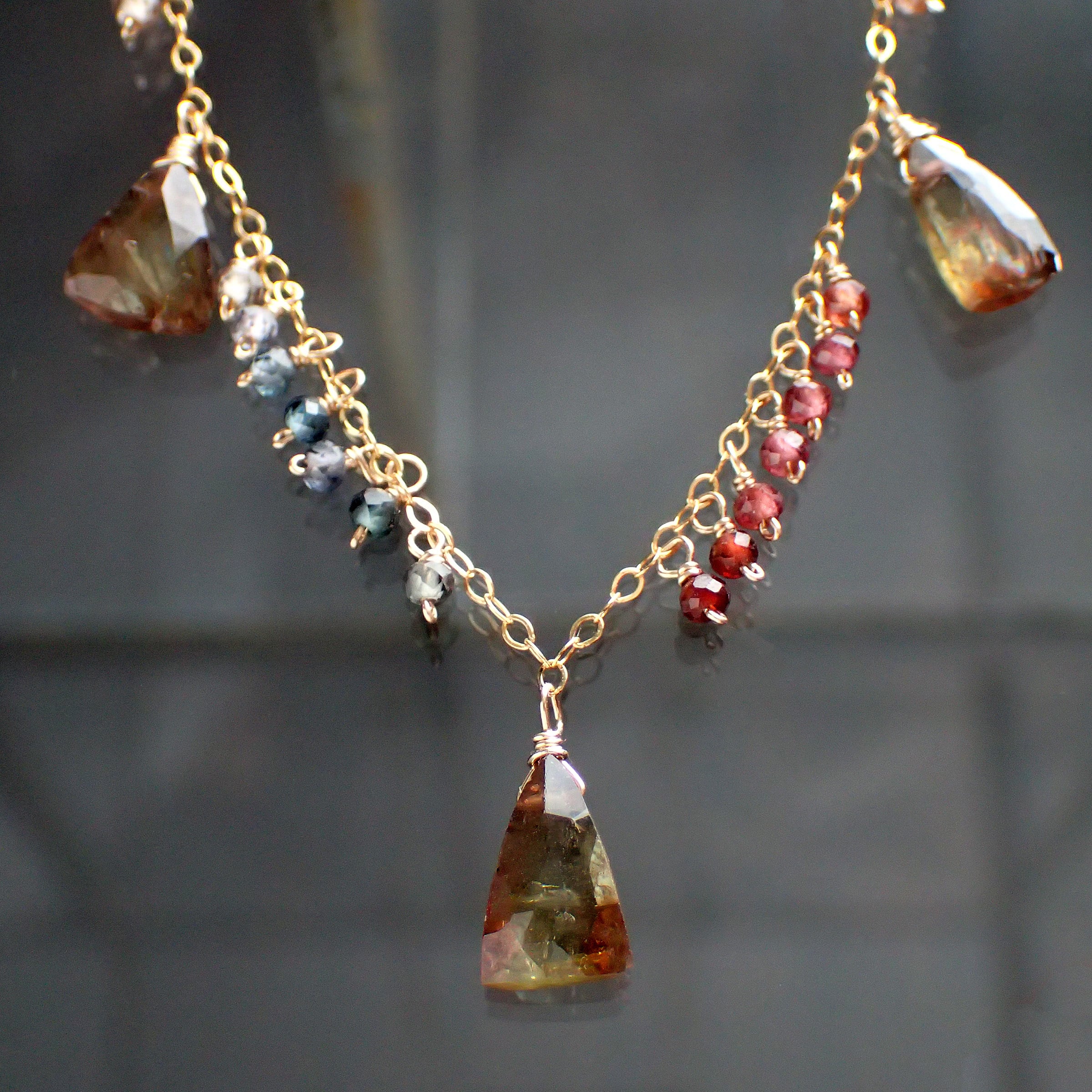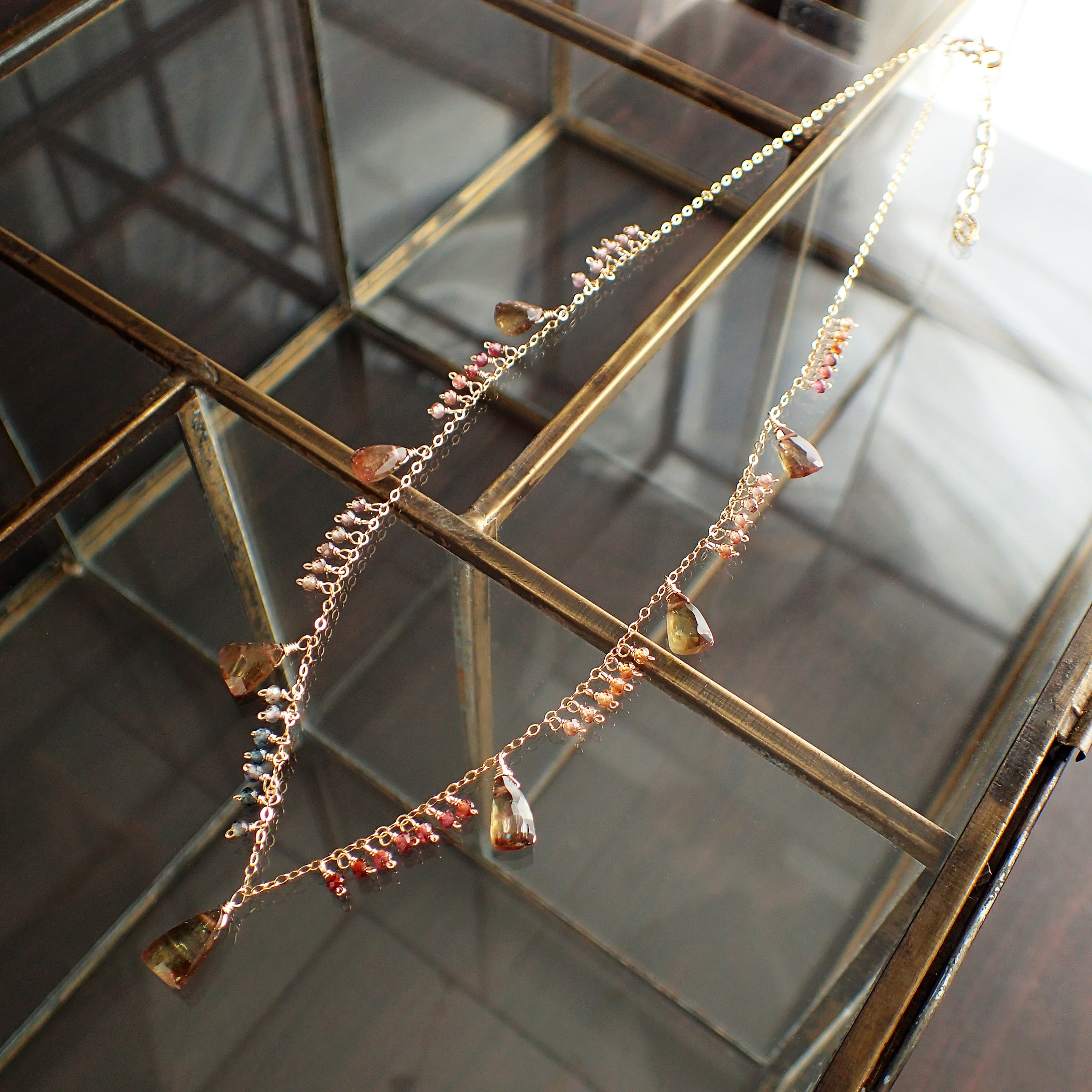 # アンダリュサイト & ツンドラサファイア シャンデリアネックレス