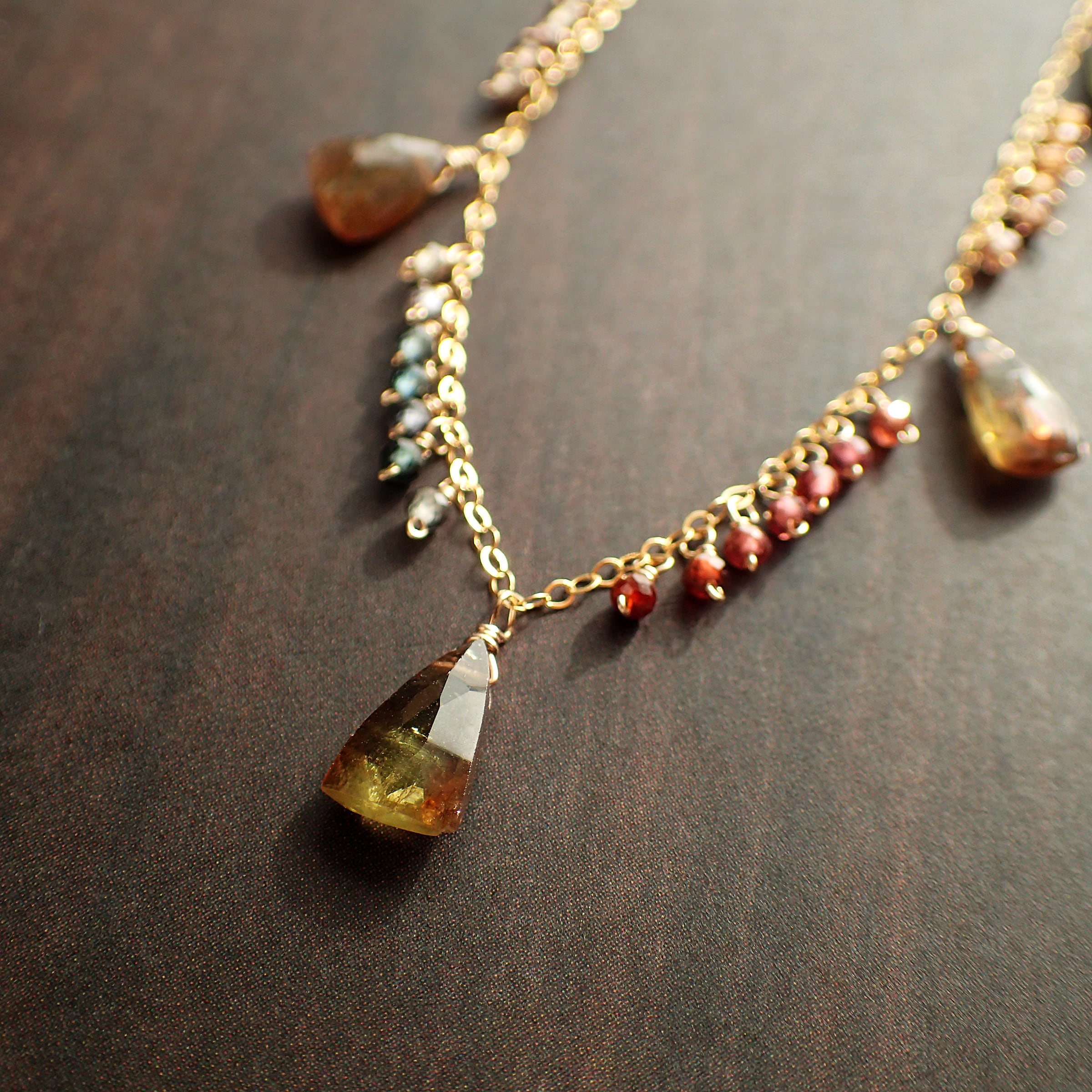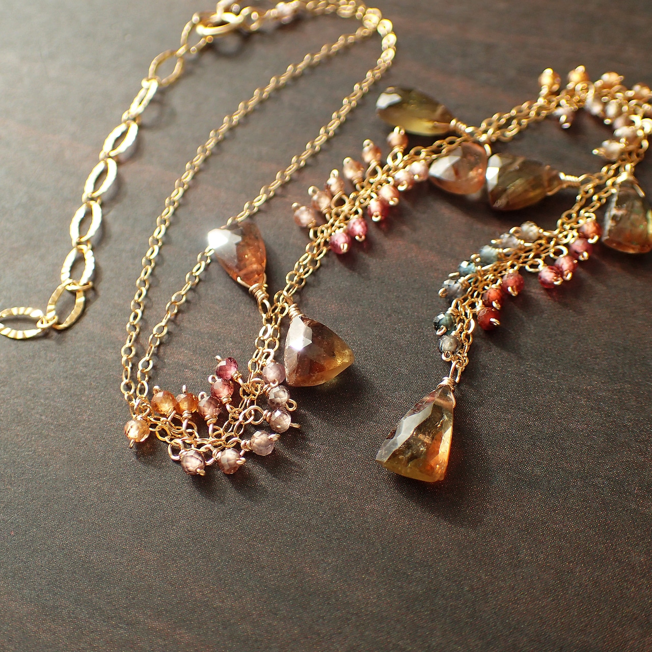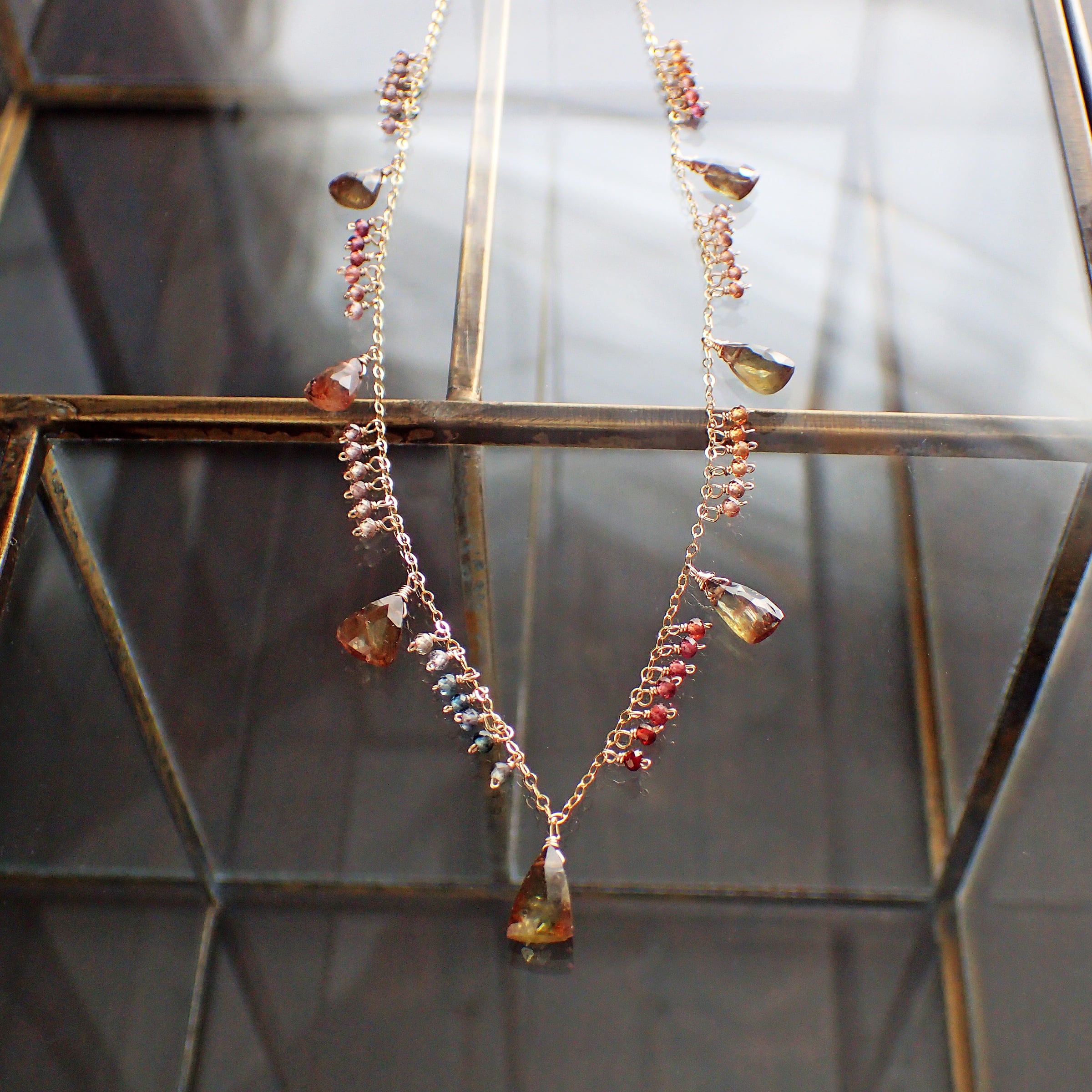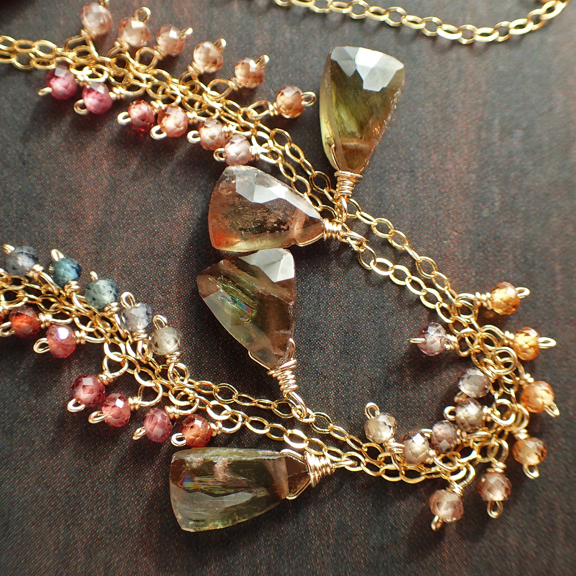 # アンダリュサイト & ツンドラサファイア シャンデリアネックレス
