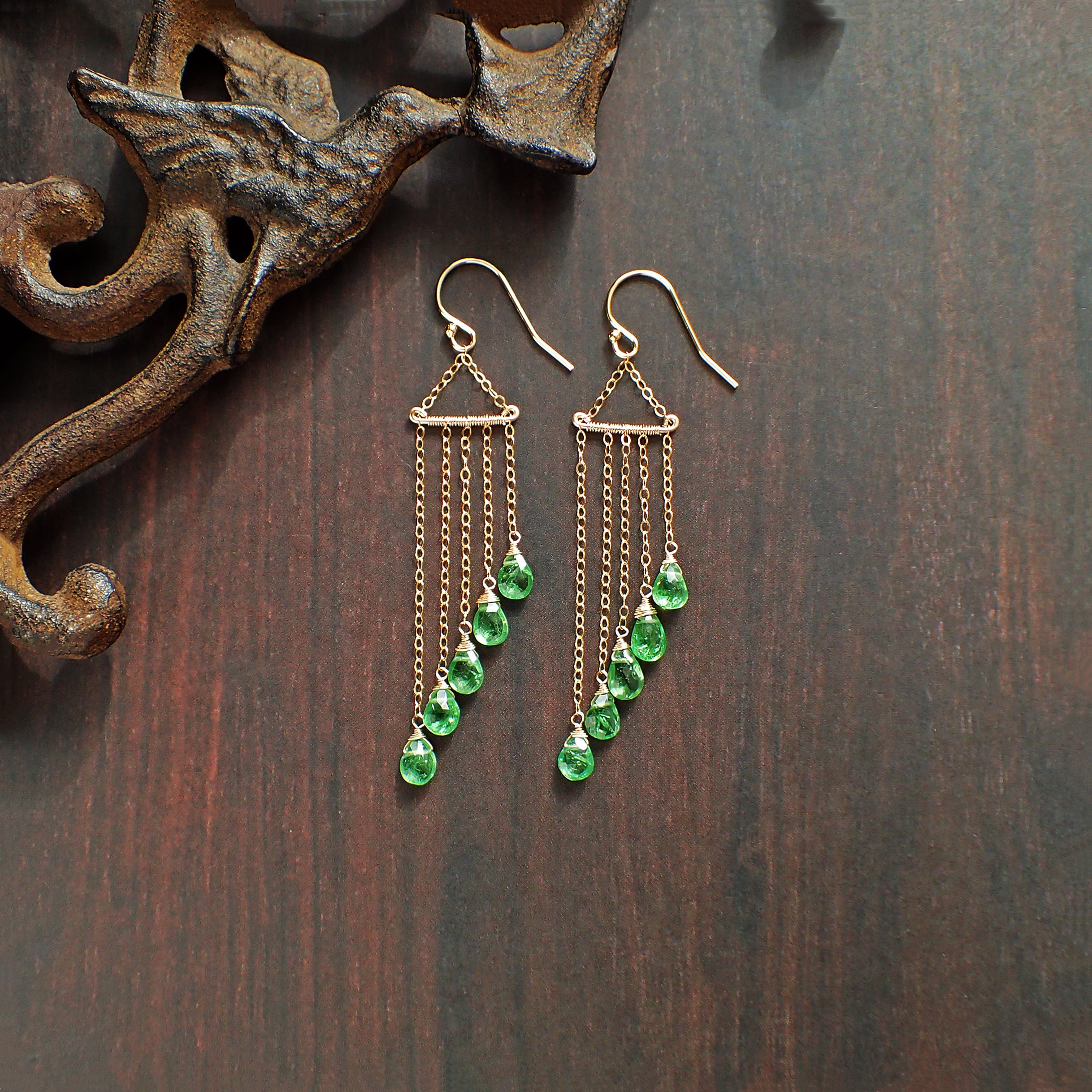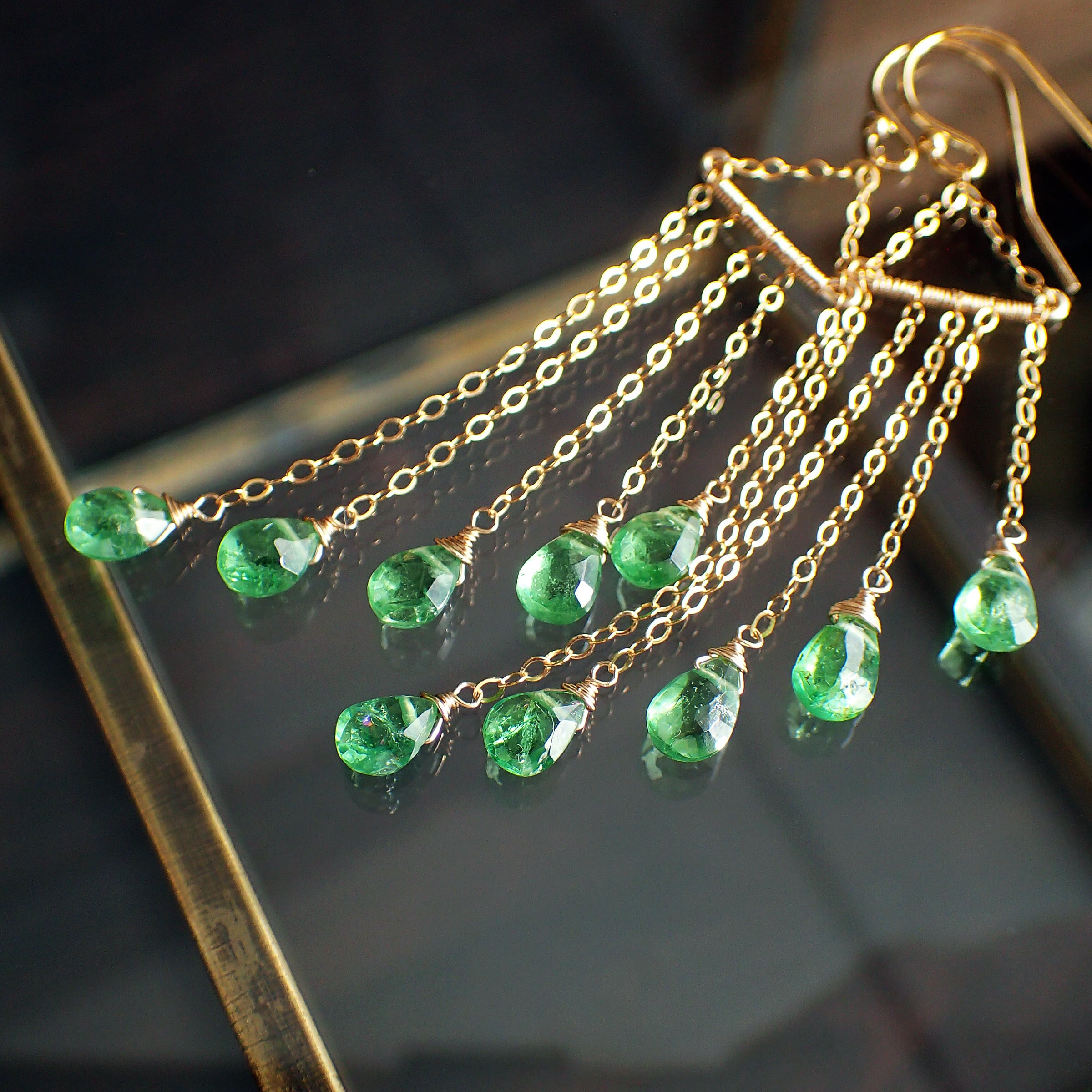 Green Green Green garnet chandelier earrings