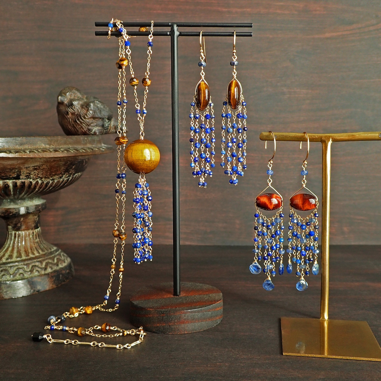 タイガーアイの飴細工のような独特な光沢と輝きが視線を集め、ラピスラズリの神秘的な色合いがあなたの存在感を一層引き立てます。
