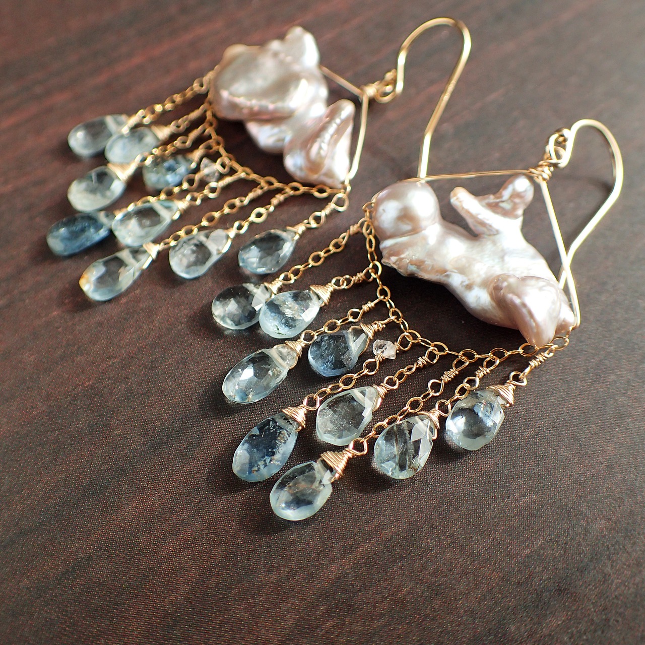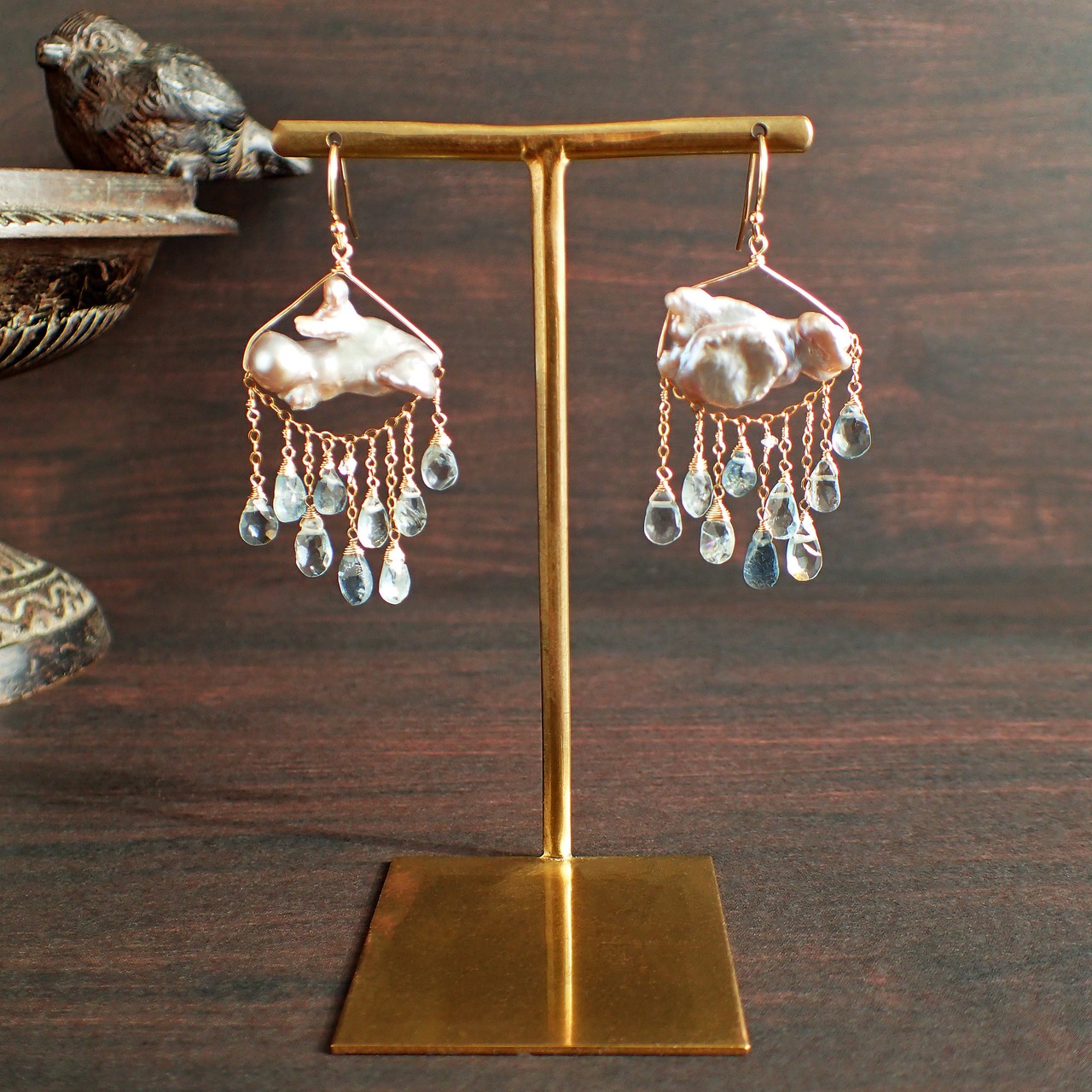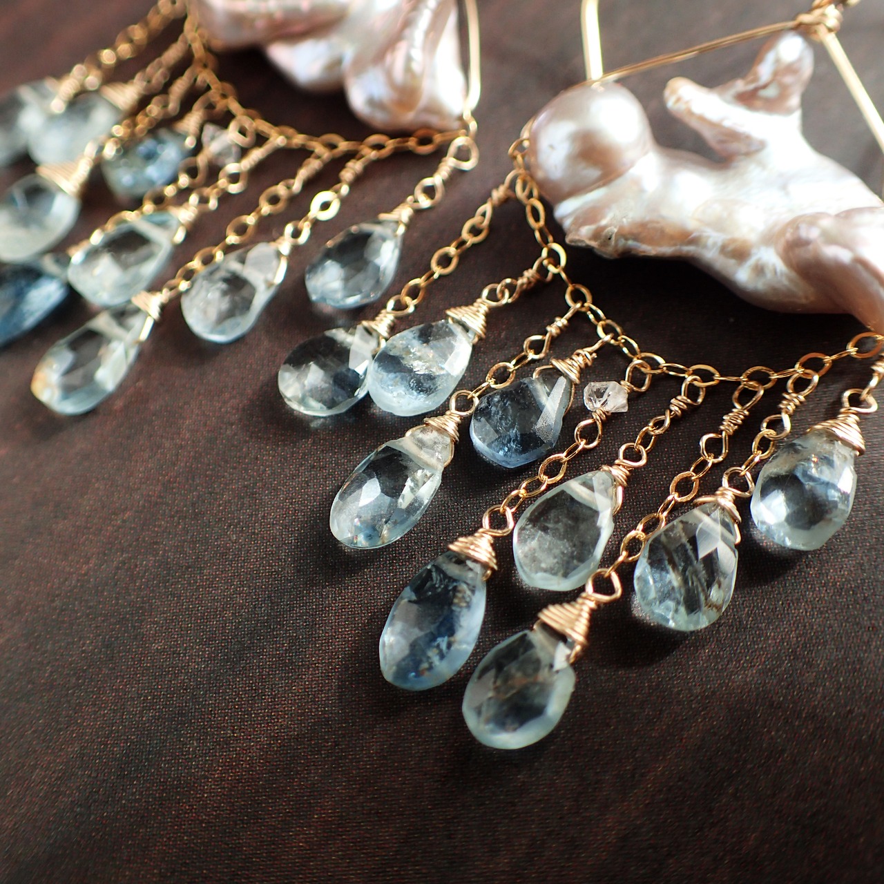 淡水パールは柔らかな光沢を放ち、アクアマリンの清らかなブルーが調和し、春の訪れを伝えてくれます。