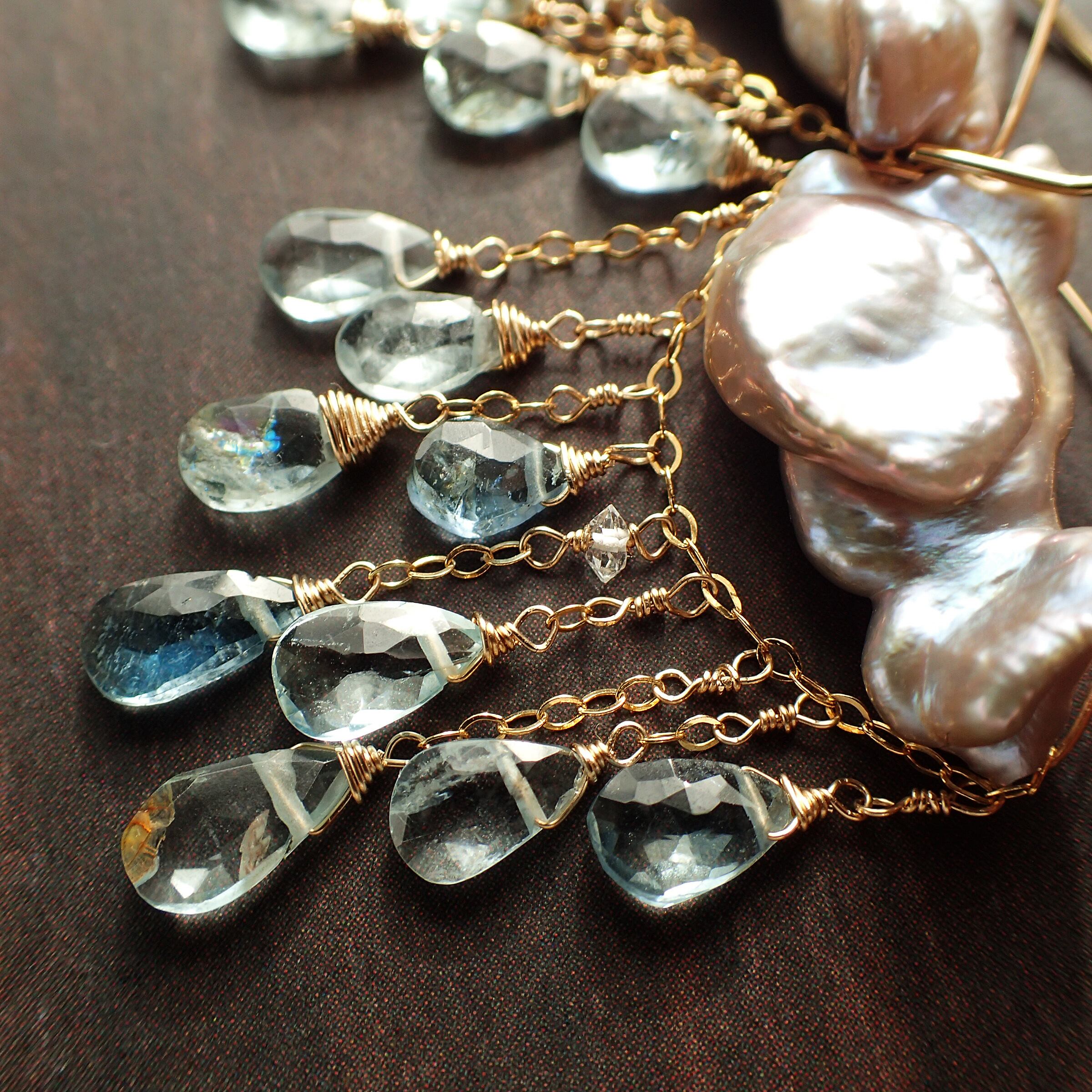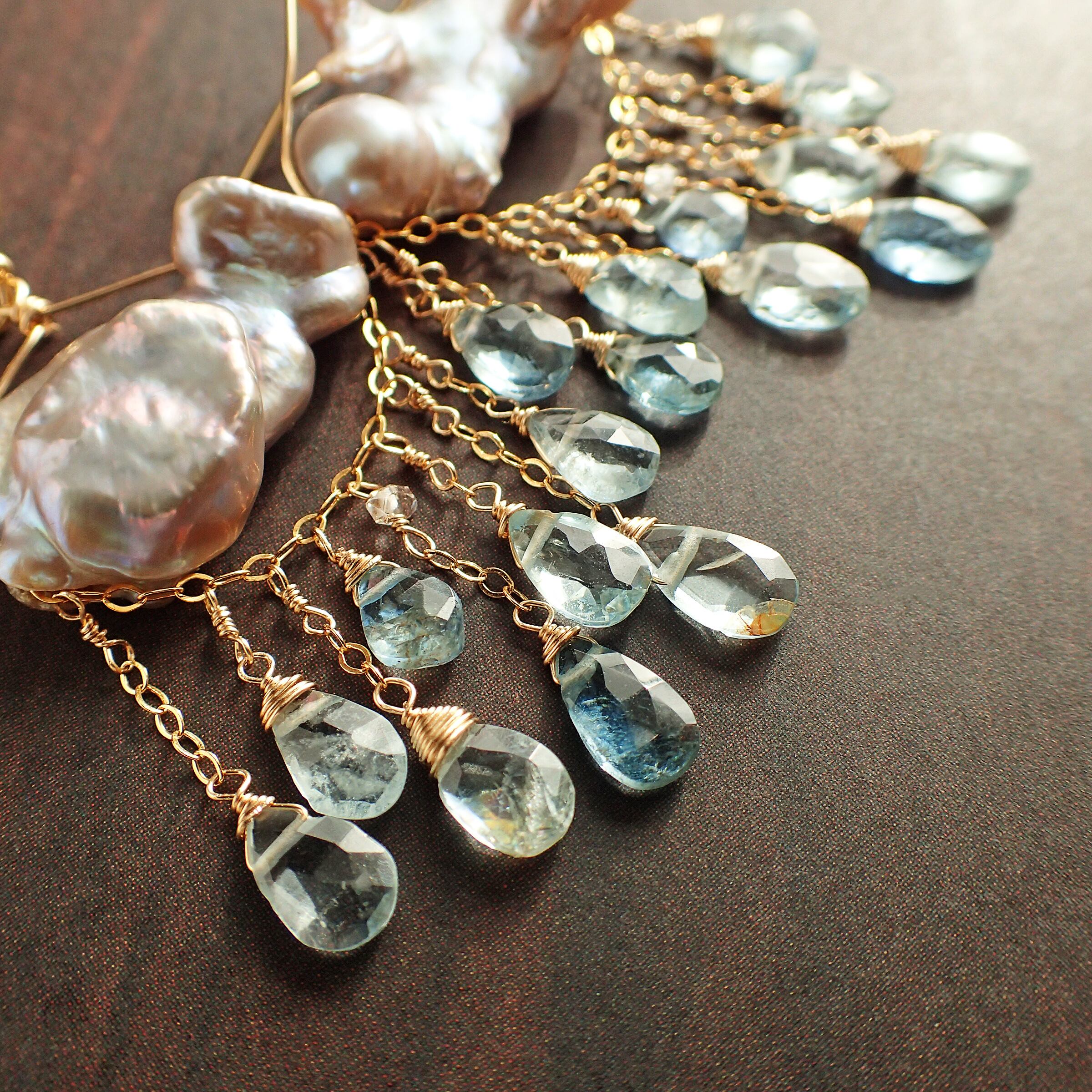 淡水パール、アクアマリン、K14GF(パーツ、ワイヤー、チェーン全て)