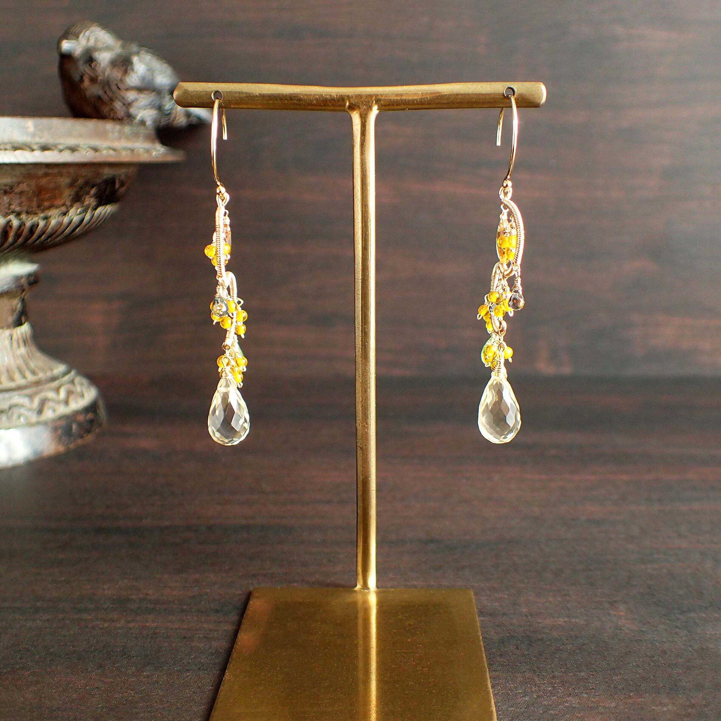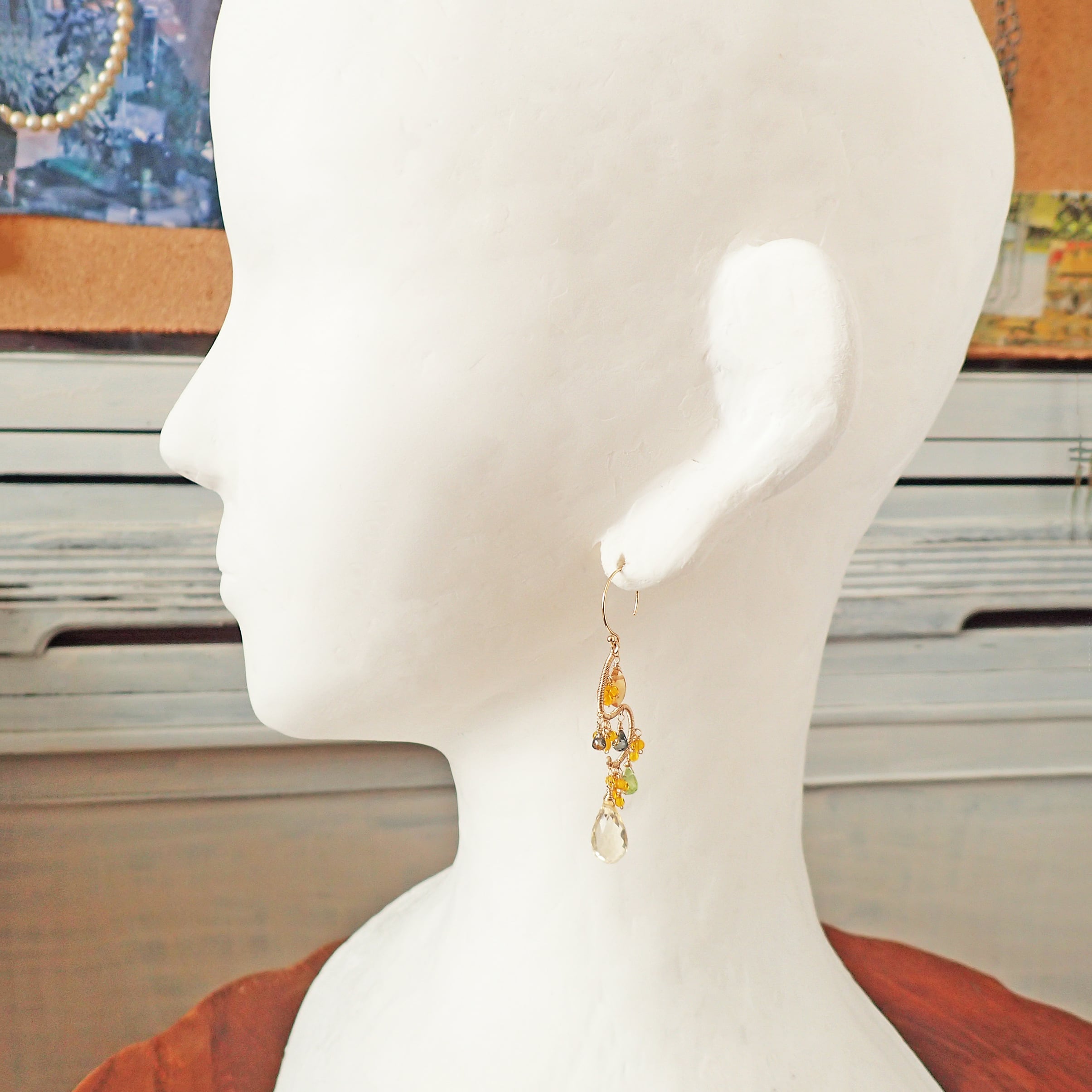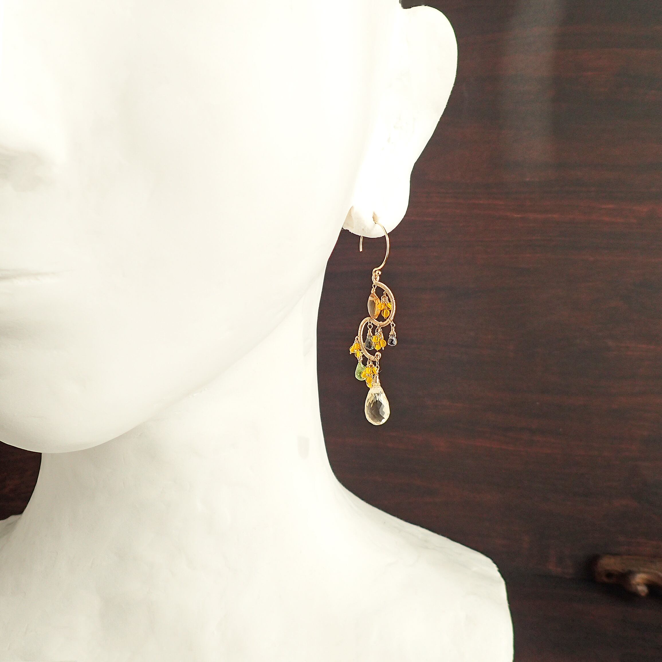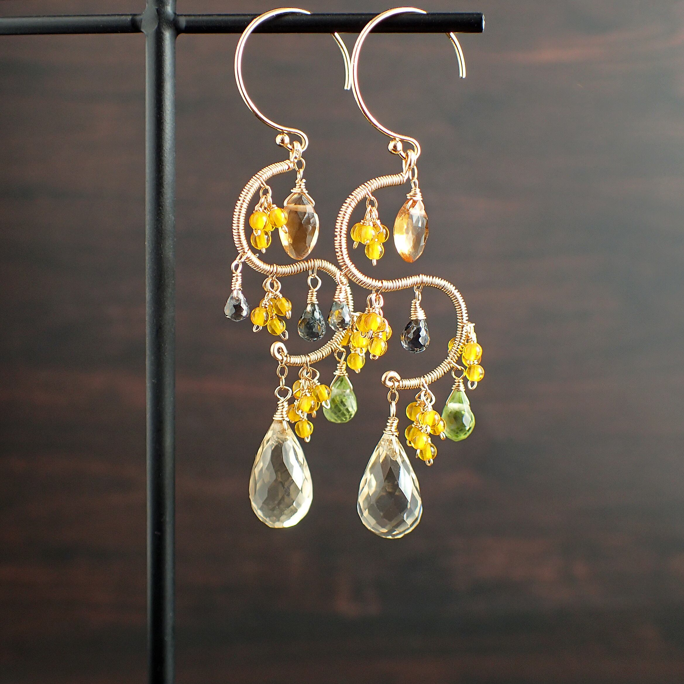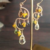 この美しいシャンデリアピアスは、約5.6㎝のエレガントなデザインで、シトリン、ペリドット、グリーンサファイアを使用した特別なアクセサリーです。