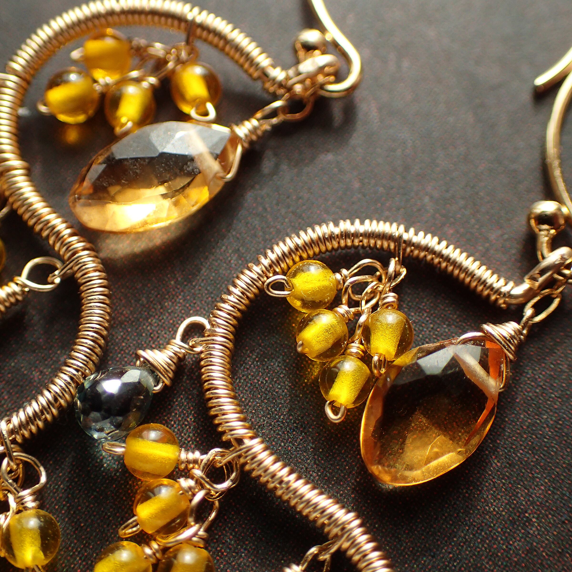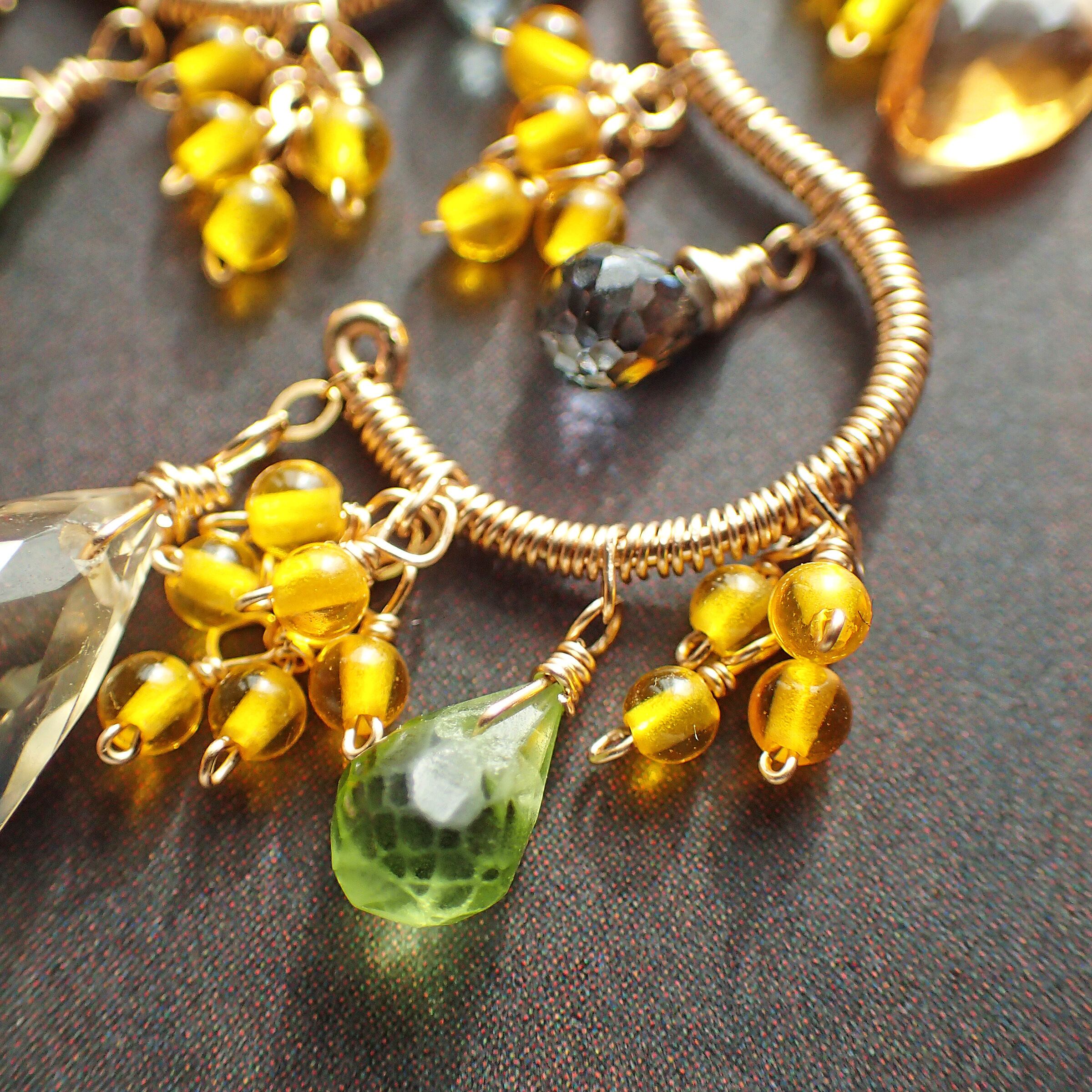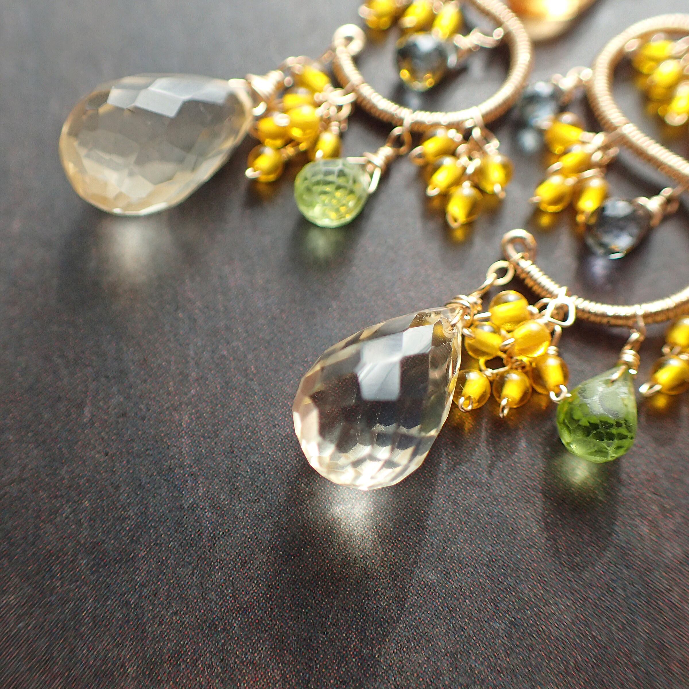 シトリン・ペリドット・グリーンサファイア・K14GF(パーツ、ワイヤー、チェーン全て)