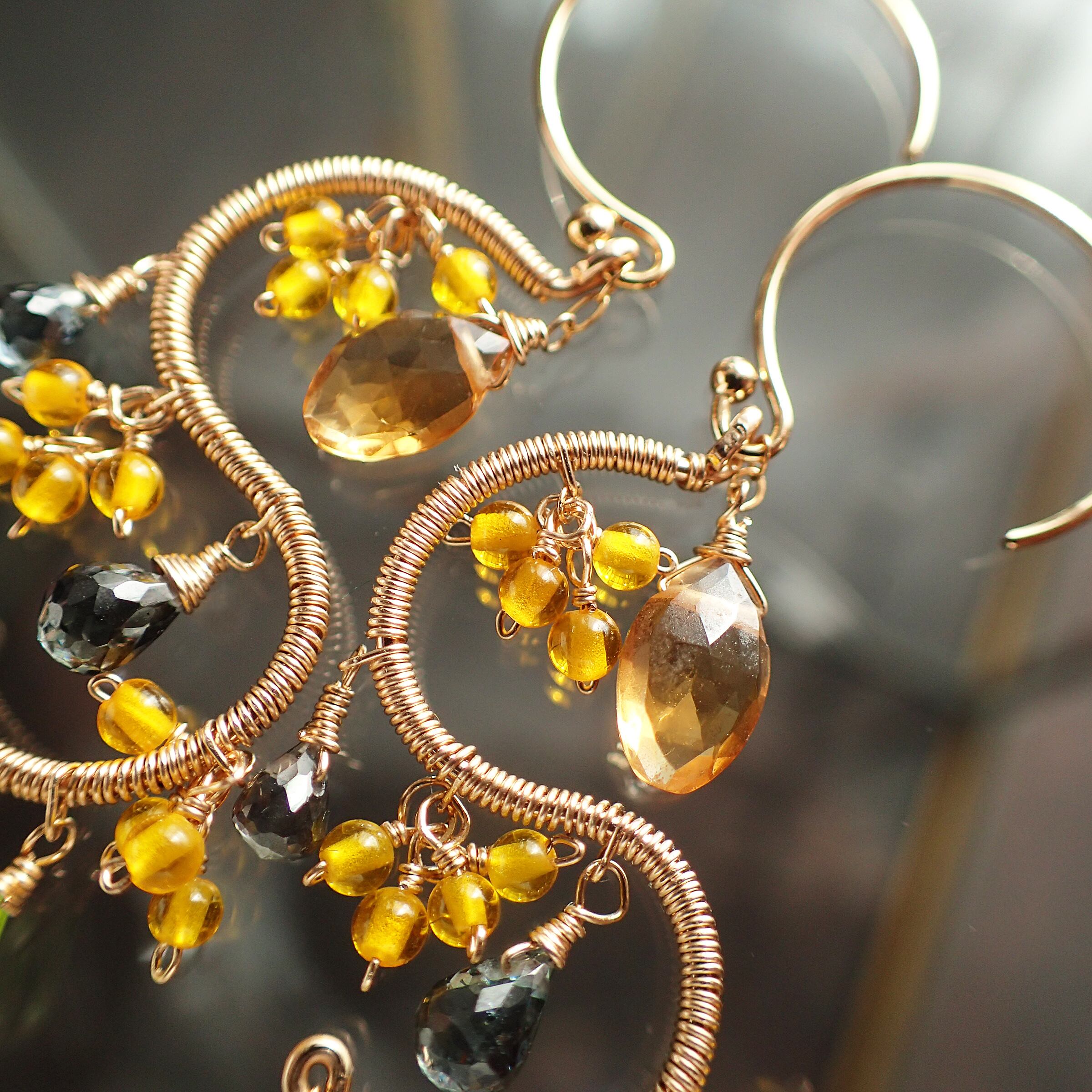 # Blooming mimosa chandelier earrings 咲き誇るミモザのシャンデリアピアス