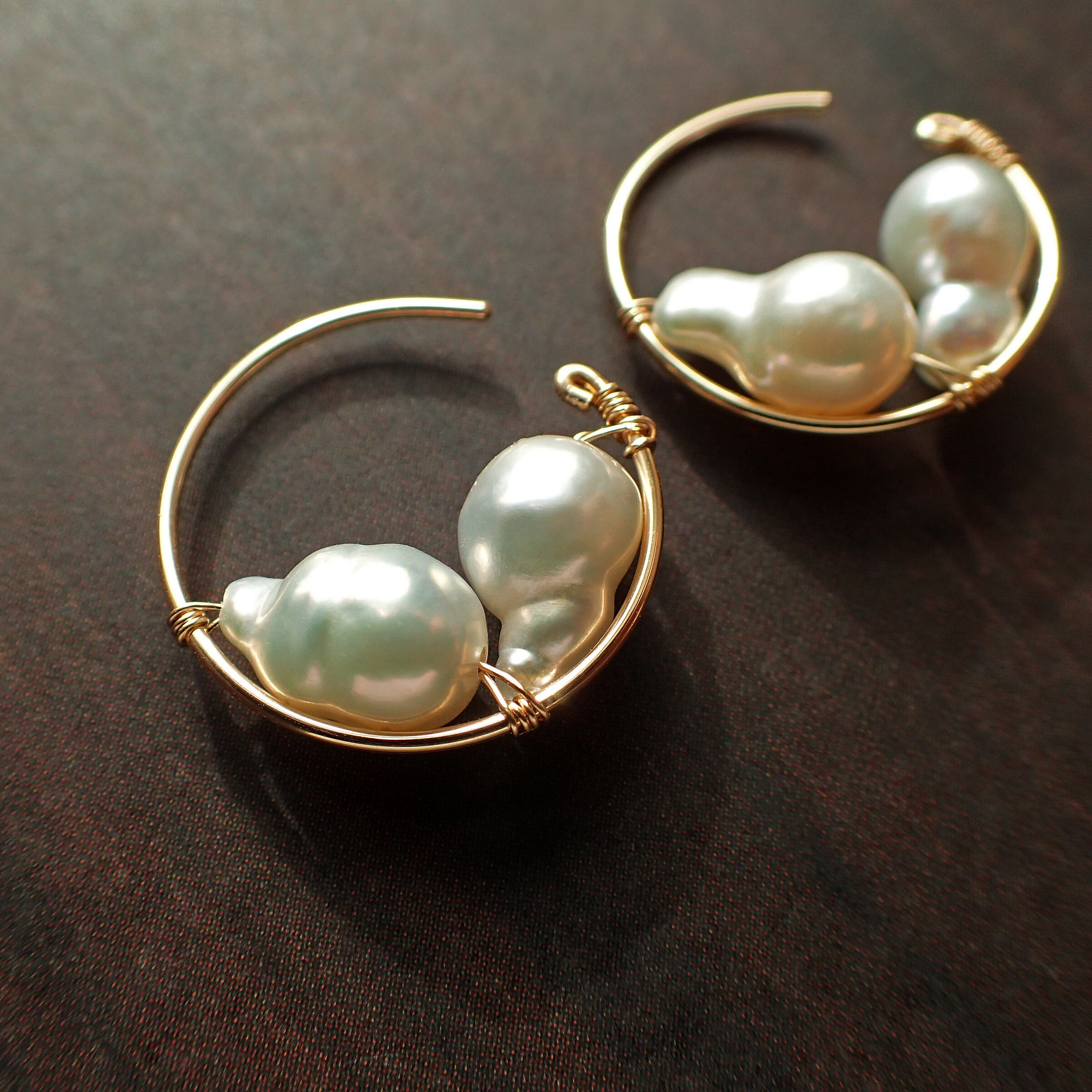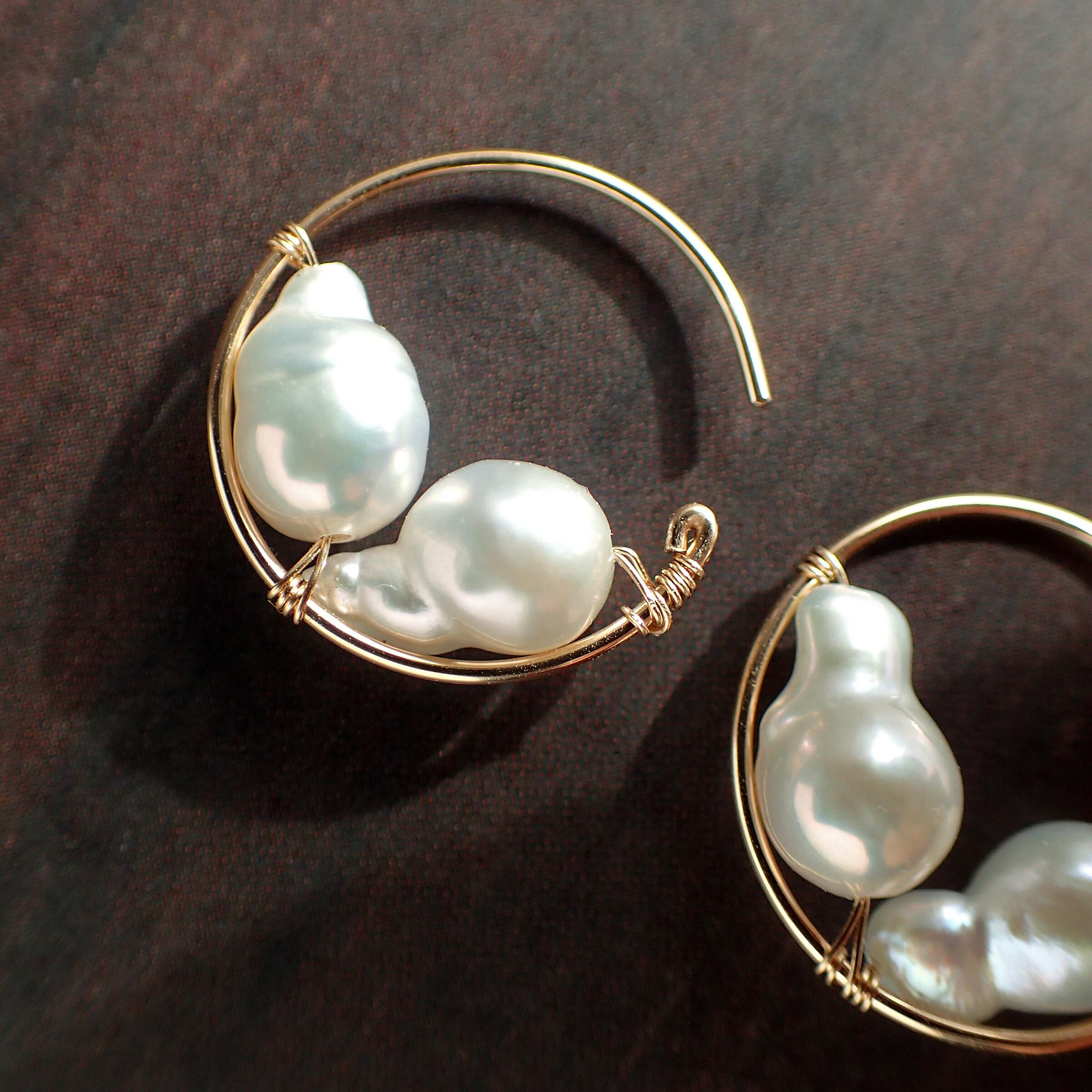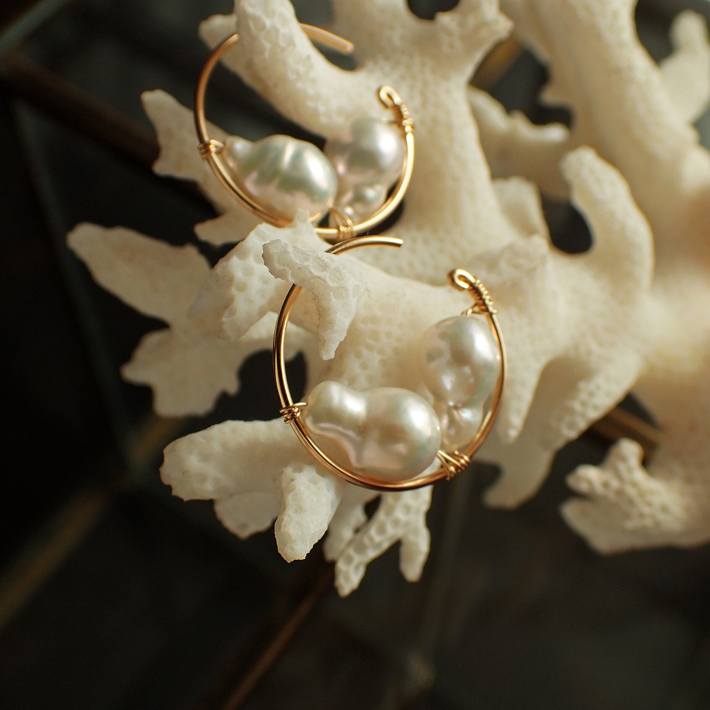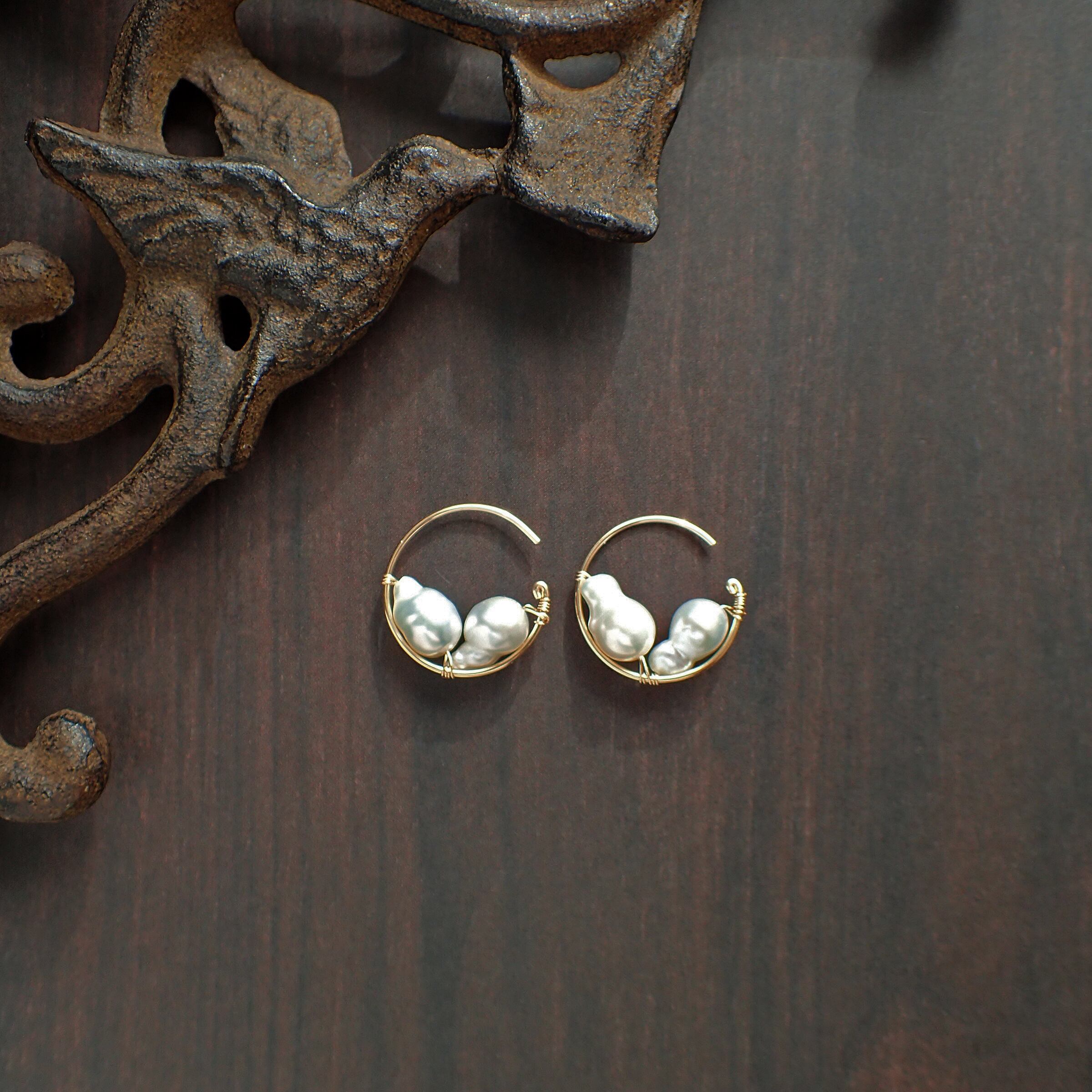 この魅力的なピアスは、直径1.7㎝のエレガントなフープデザインに、上質な淡水バロックパールをあしらった特別なアクセサリーです。