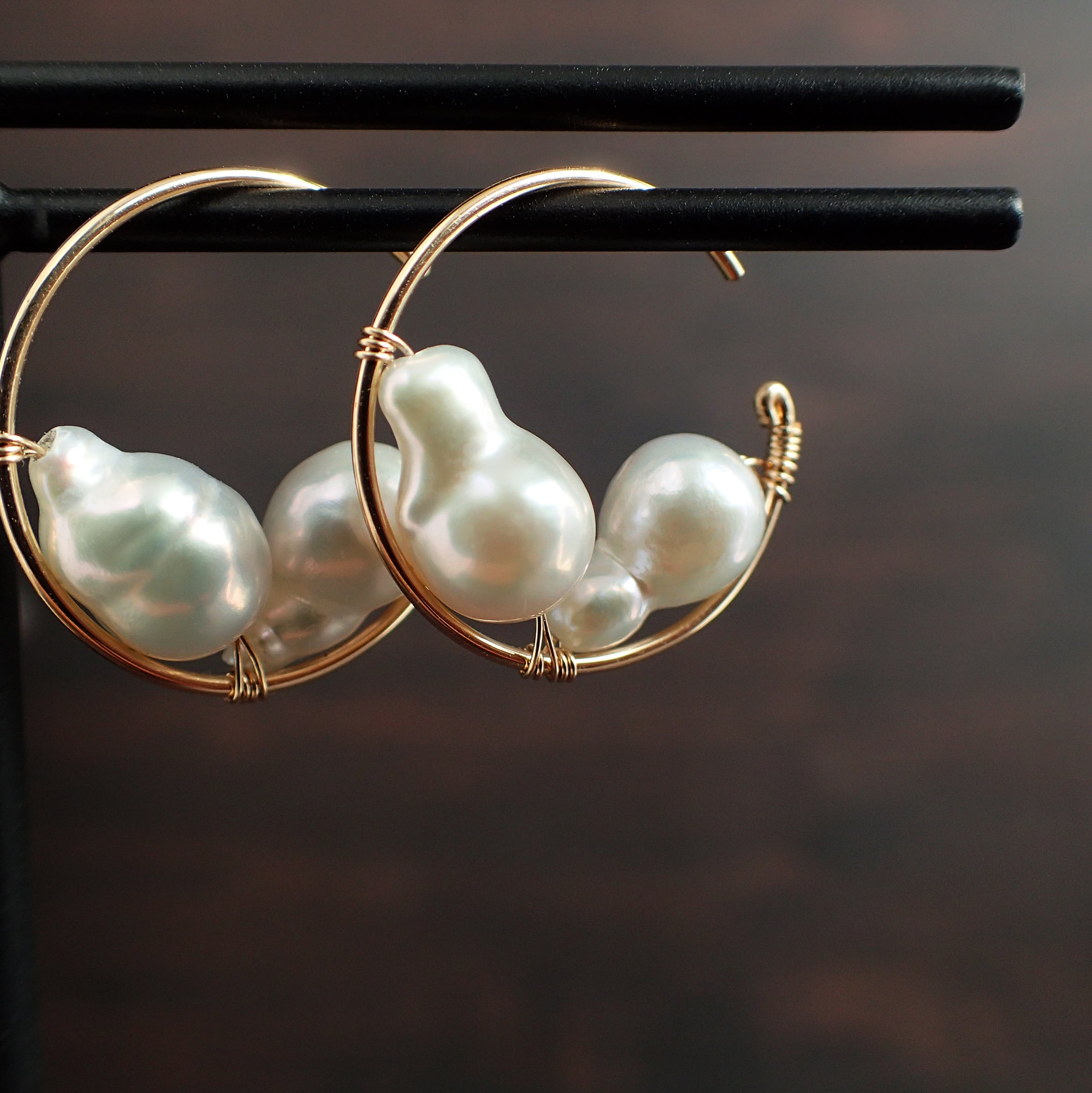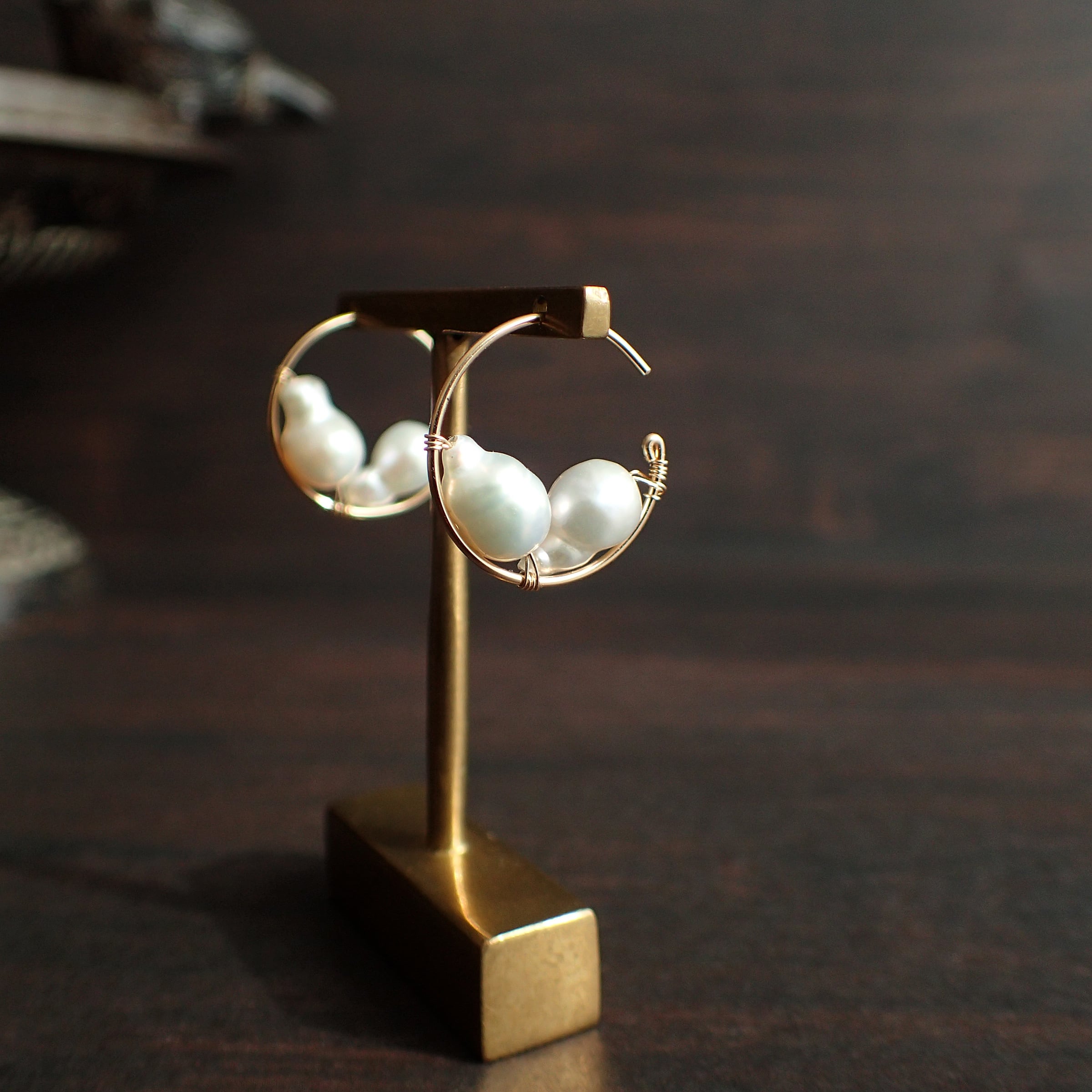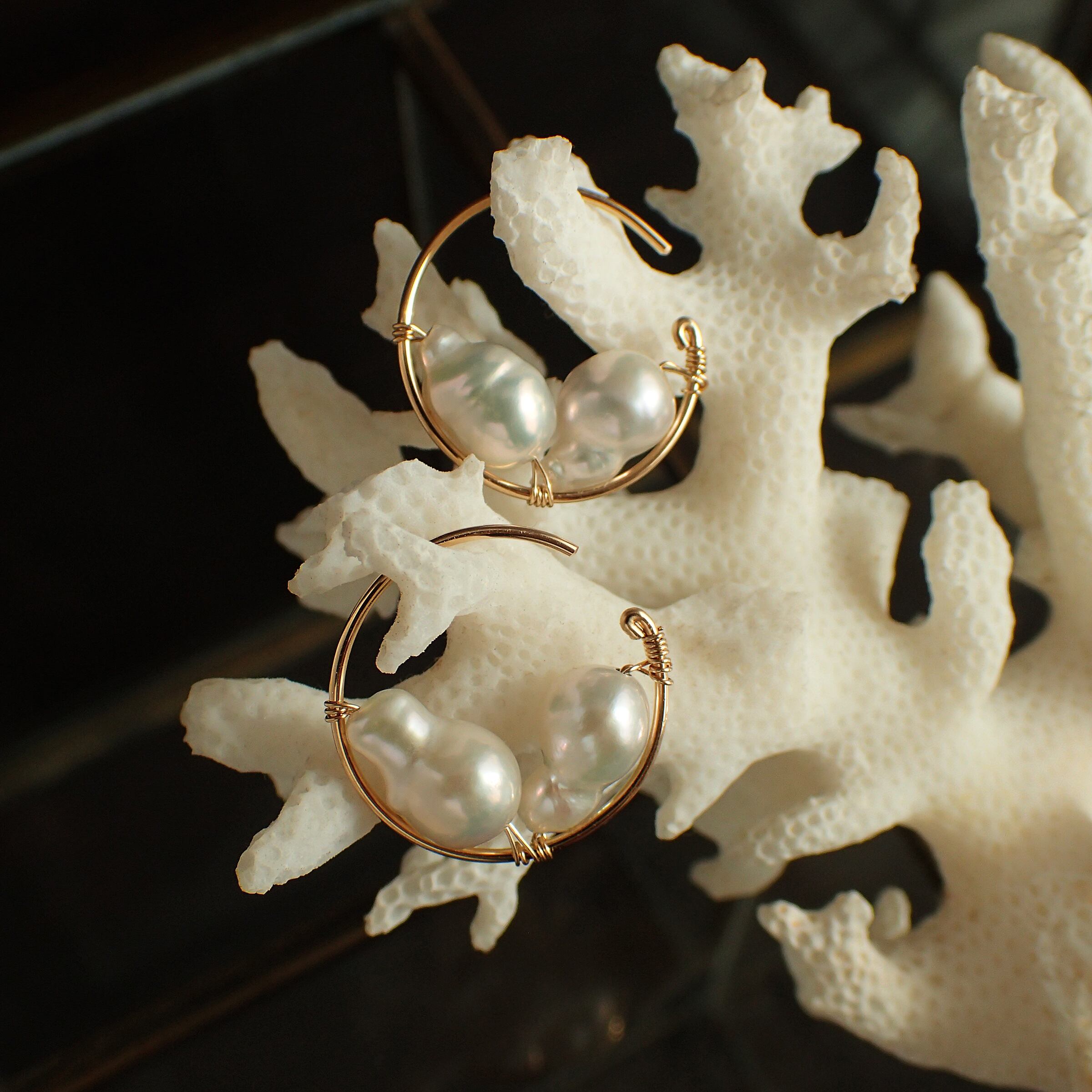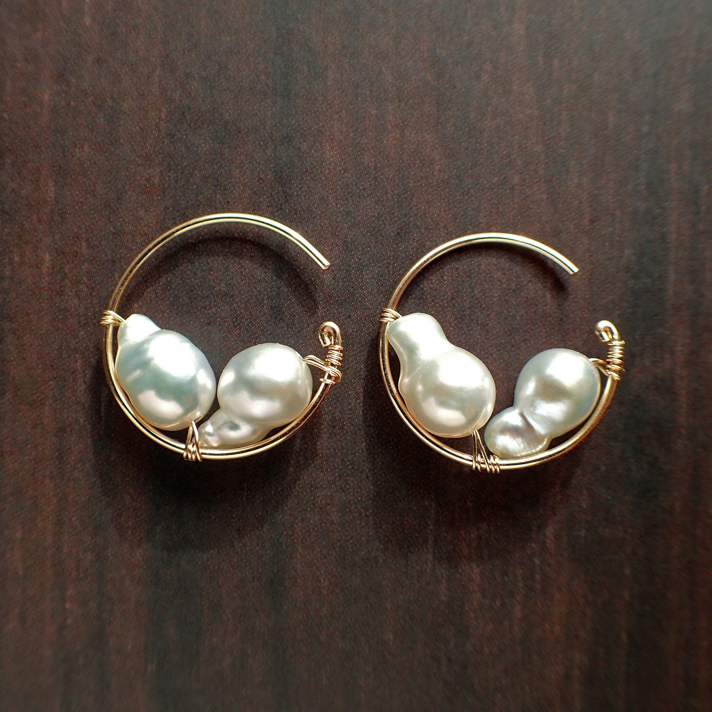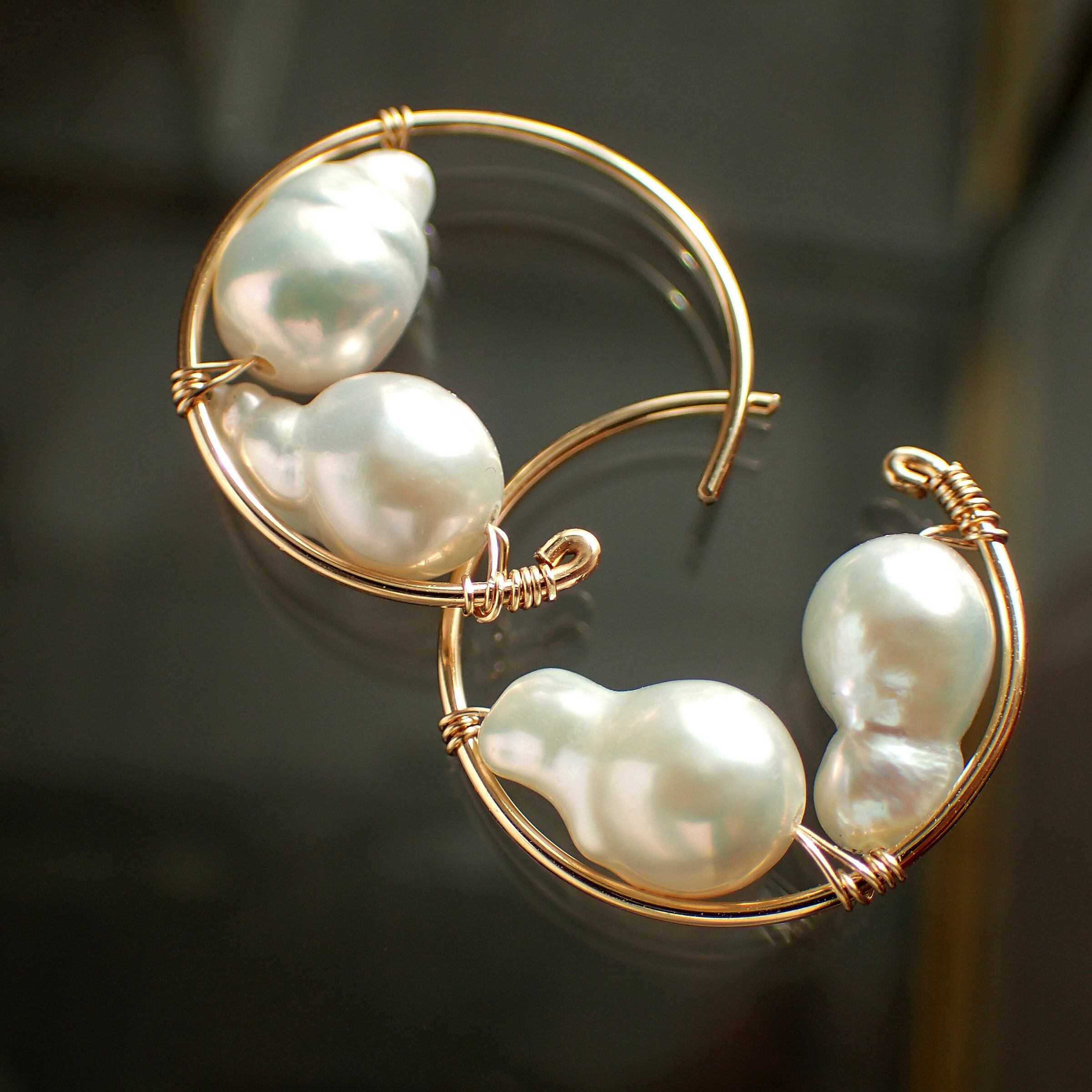 この魅力的なピアスは、直径1.7㎝のエレガントなフープデザインに、上質な淡水バロックパールをあしらった特別なアクセサリーです。