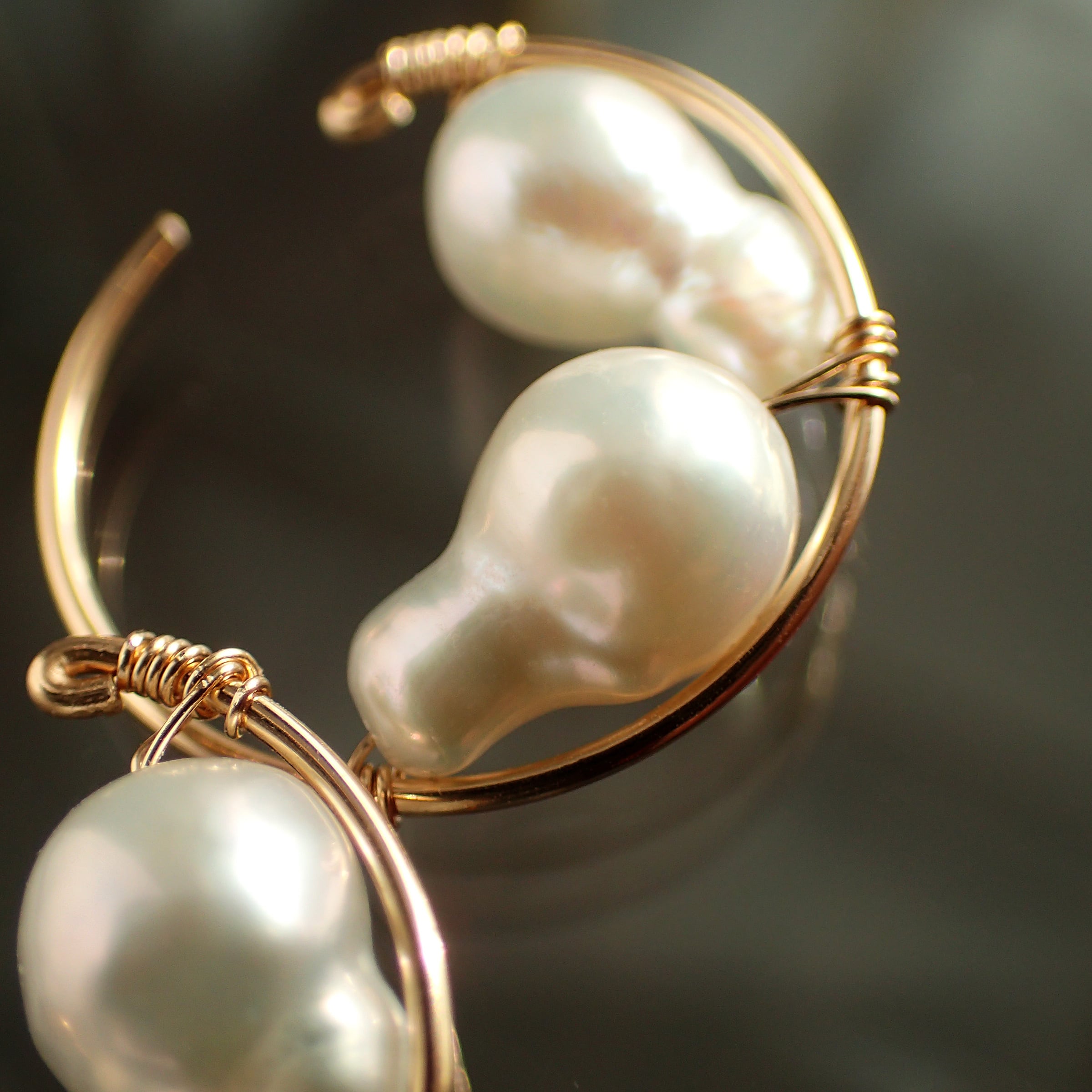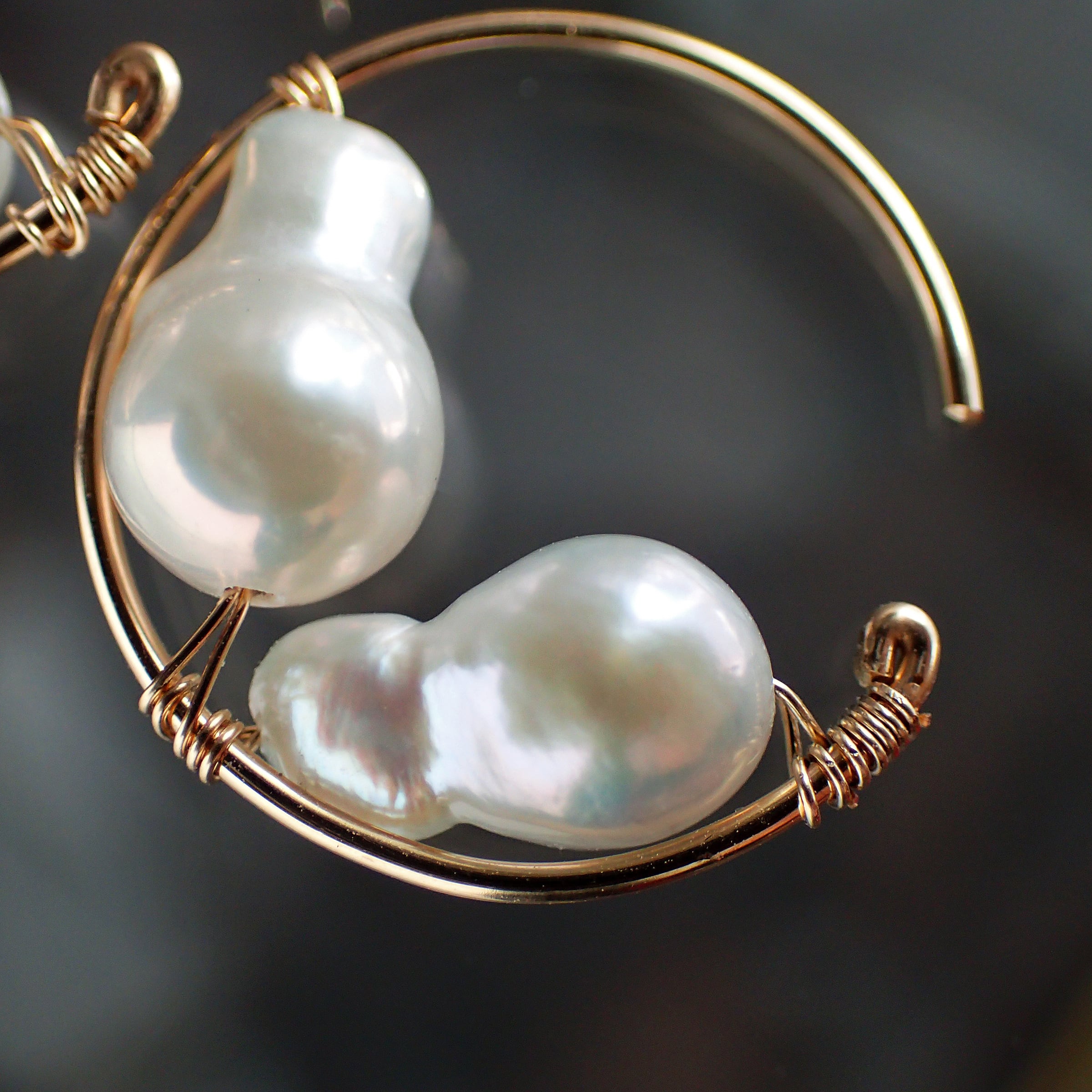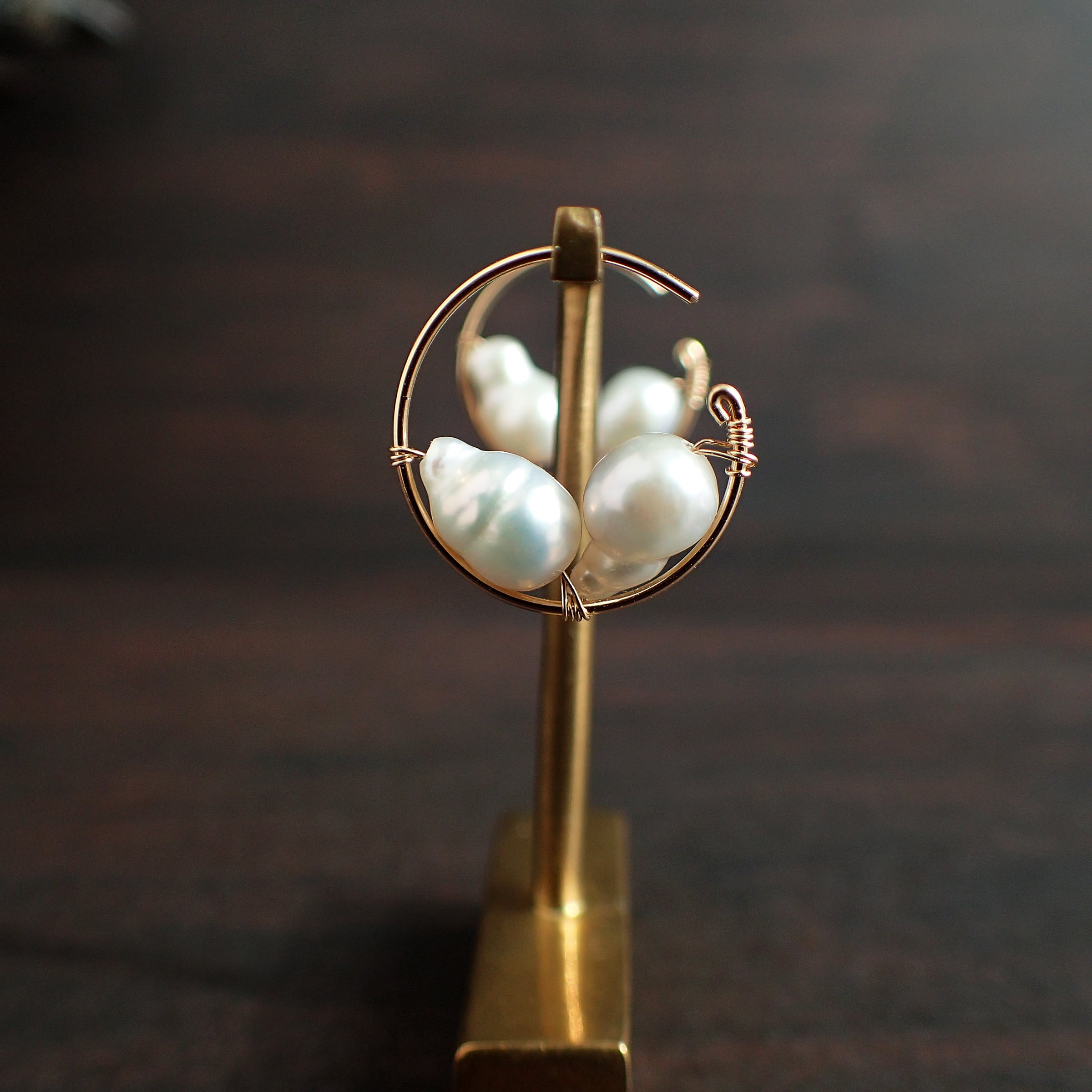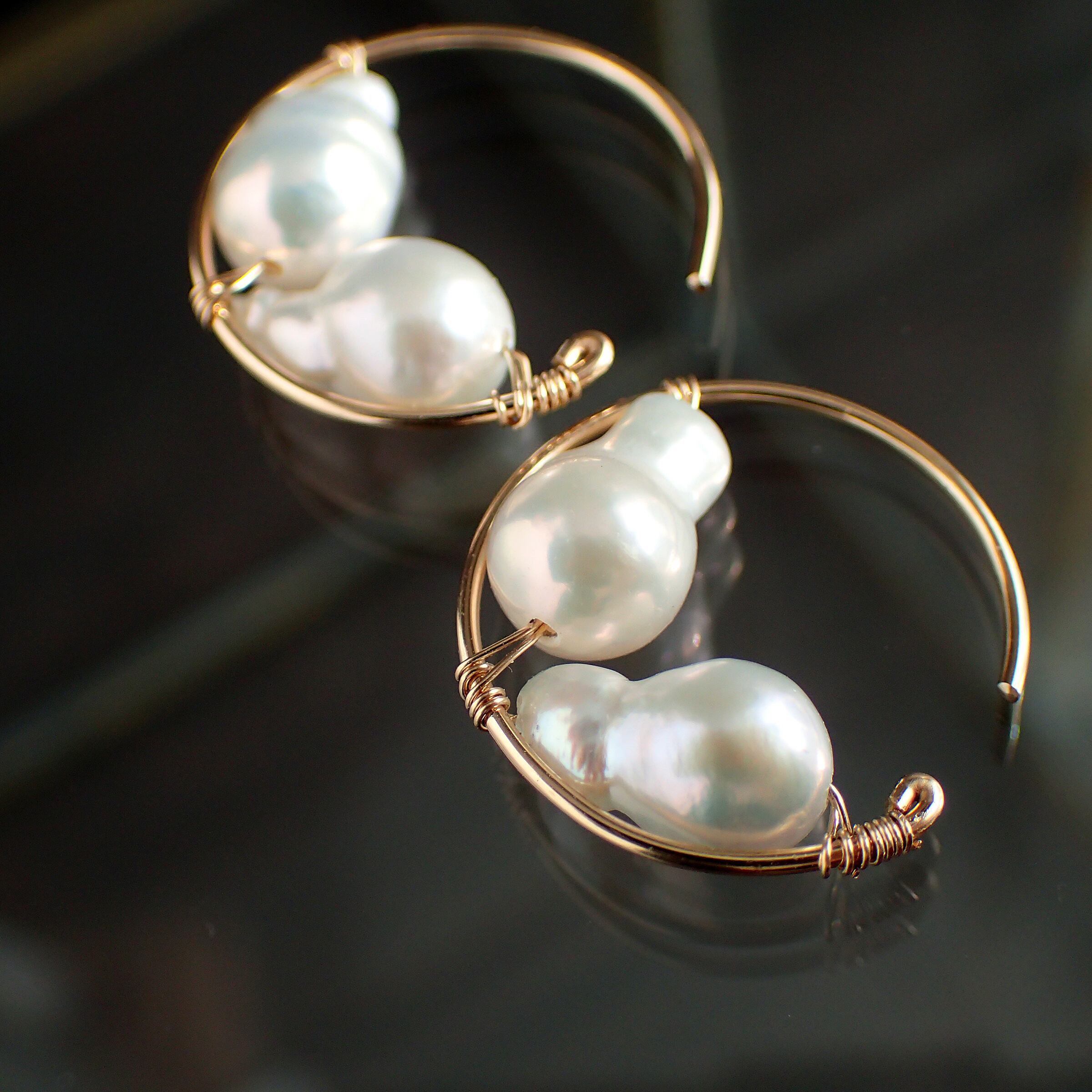 この魅力的なピアスは、直径1.7㎝のエレガントなフープデザインに、上質な淡水バロックパールをあしらった特別なアクセサリーです。